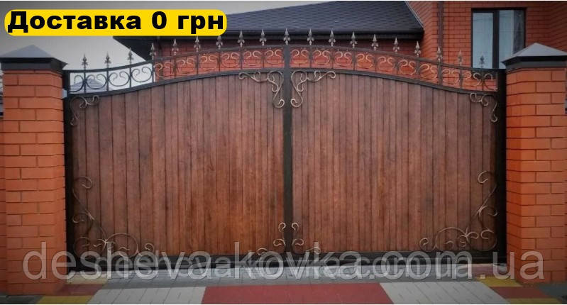 Кованые ворота из художественной ковки из профнастила
