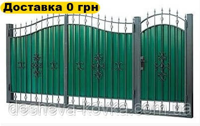 Подробные характеристики Кованые ворота из коваными элементами из профнастила.