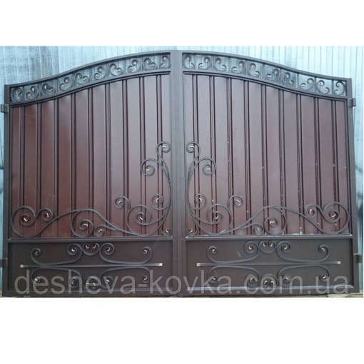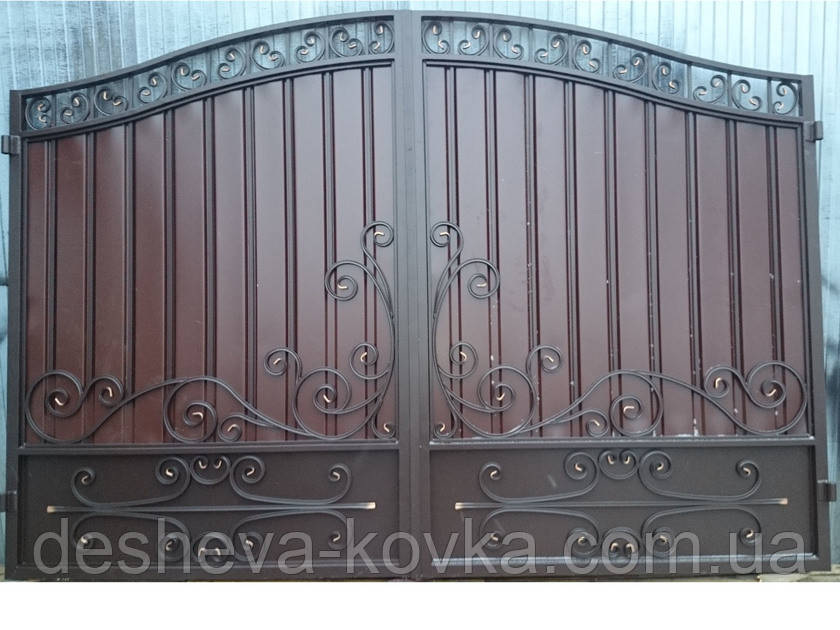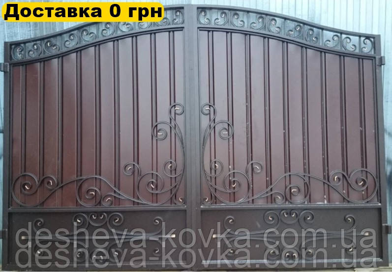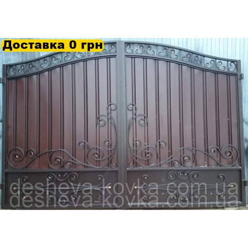 Кованые ворота из калиткой из профнастила Код: А-01108