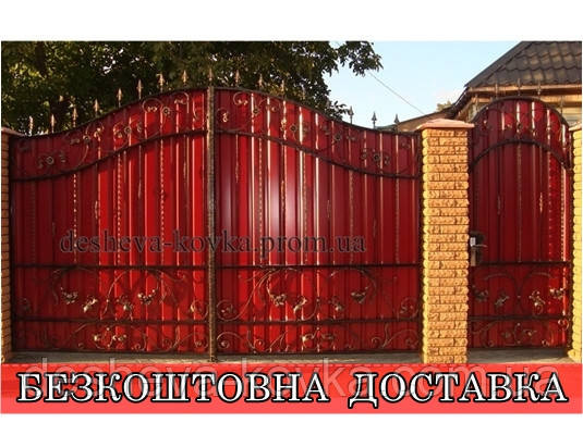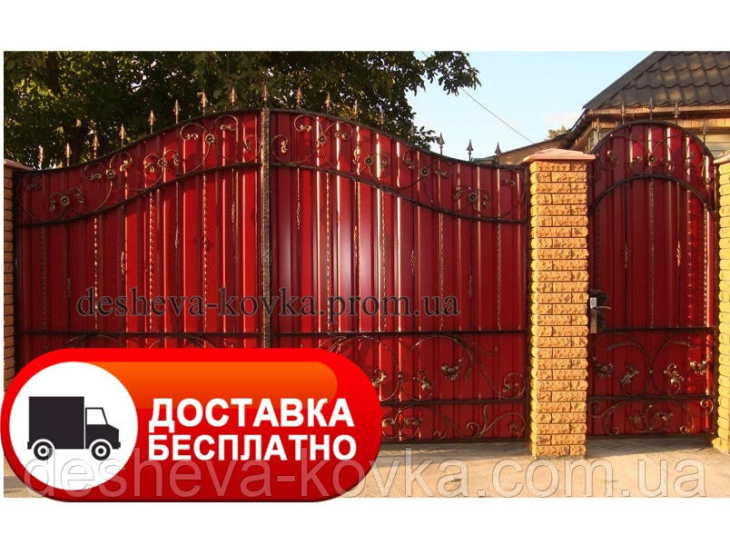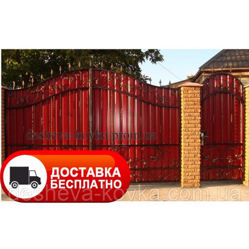 Подробные характеристики Кованые ворота из художественной ковкой и профнастила.