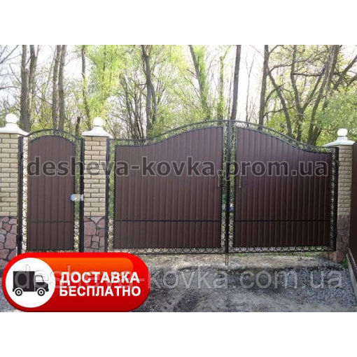 Подробные характеристики Кованые ворота из наружной калиткой из профнастилом.