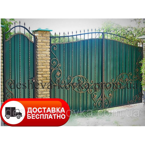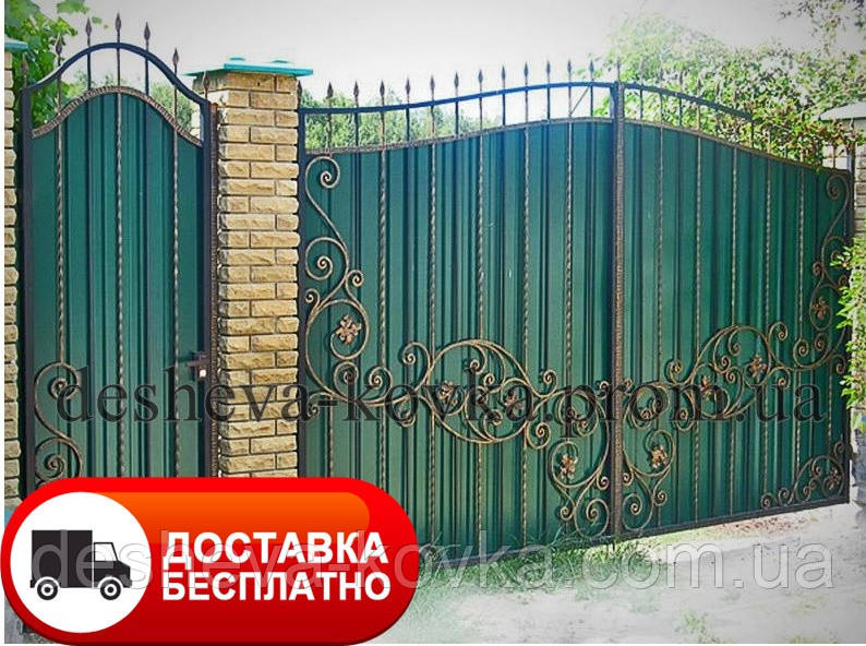 Кованые ворота из профнастила Код: А-01114