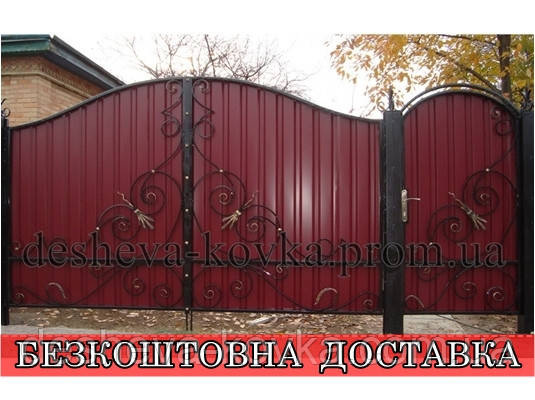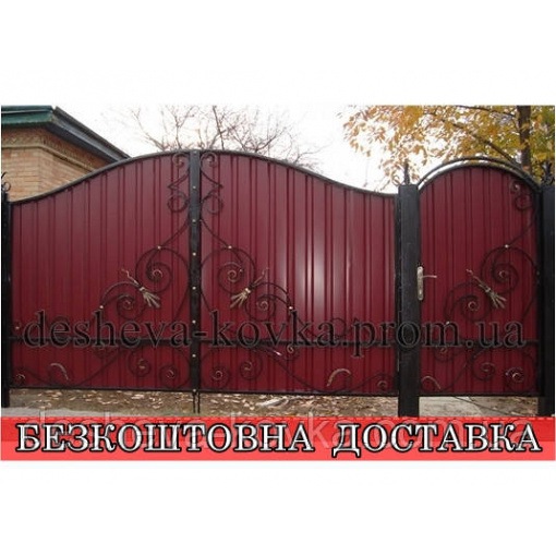 Подробные характеристики Кованые ворота из профнастила и элементами ковки.