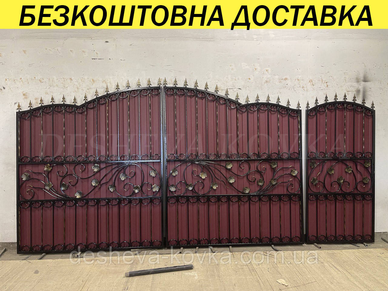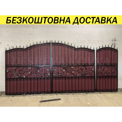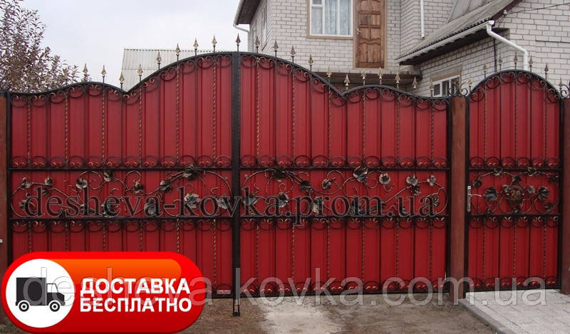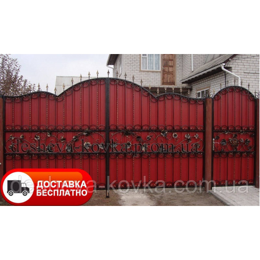 Подробные характеристики Кованые ворота из профнастила и коваными вставками.