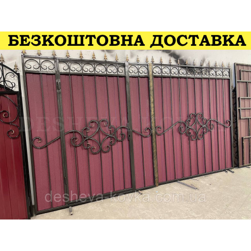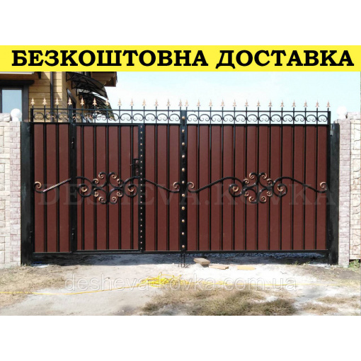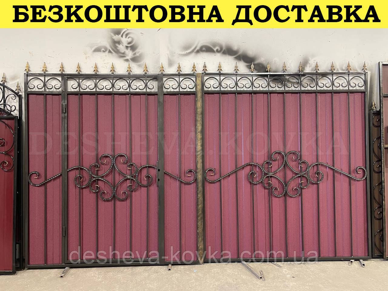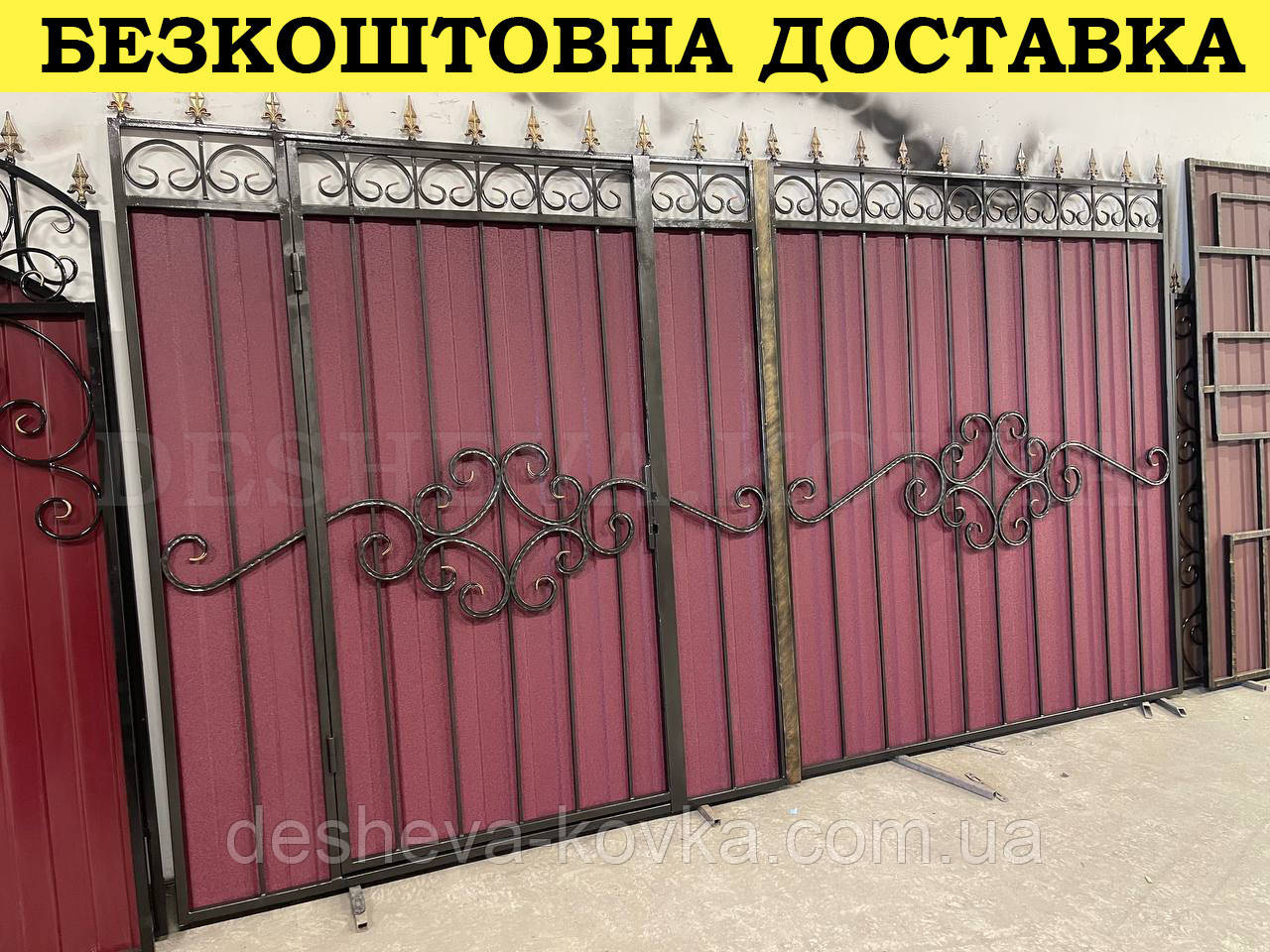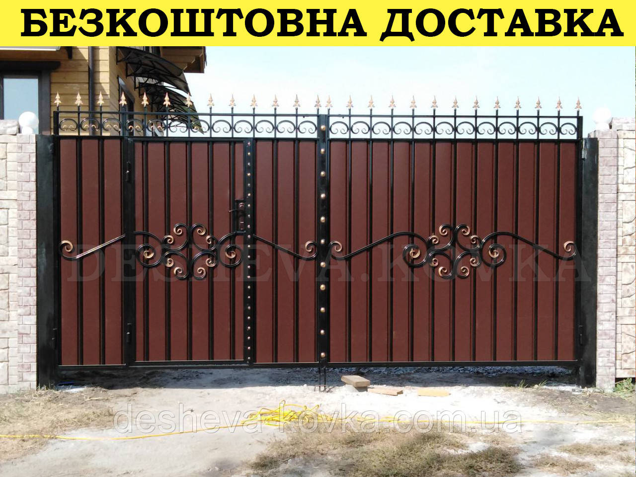 Кованые ворота из профнастилом и коваными элементами Код: А-01273