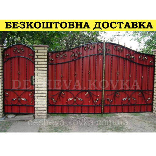 Кованые ворота из профнастилом и коваными элементами Код: А-01256