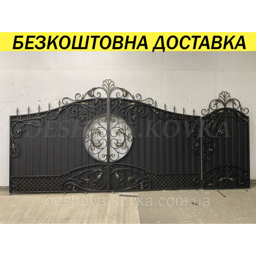 Кованые ворота из профнастилом и коваными элементами Код: А-01295