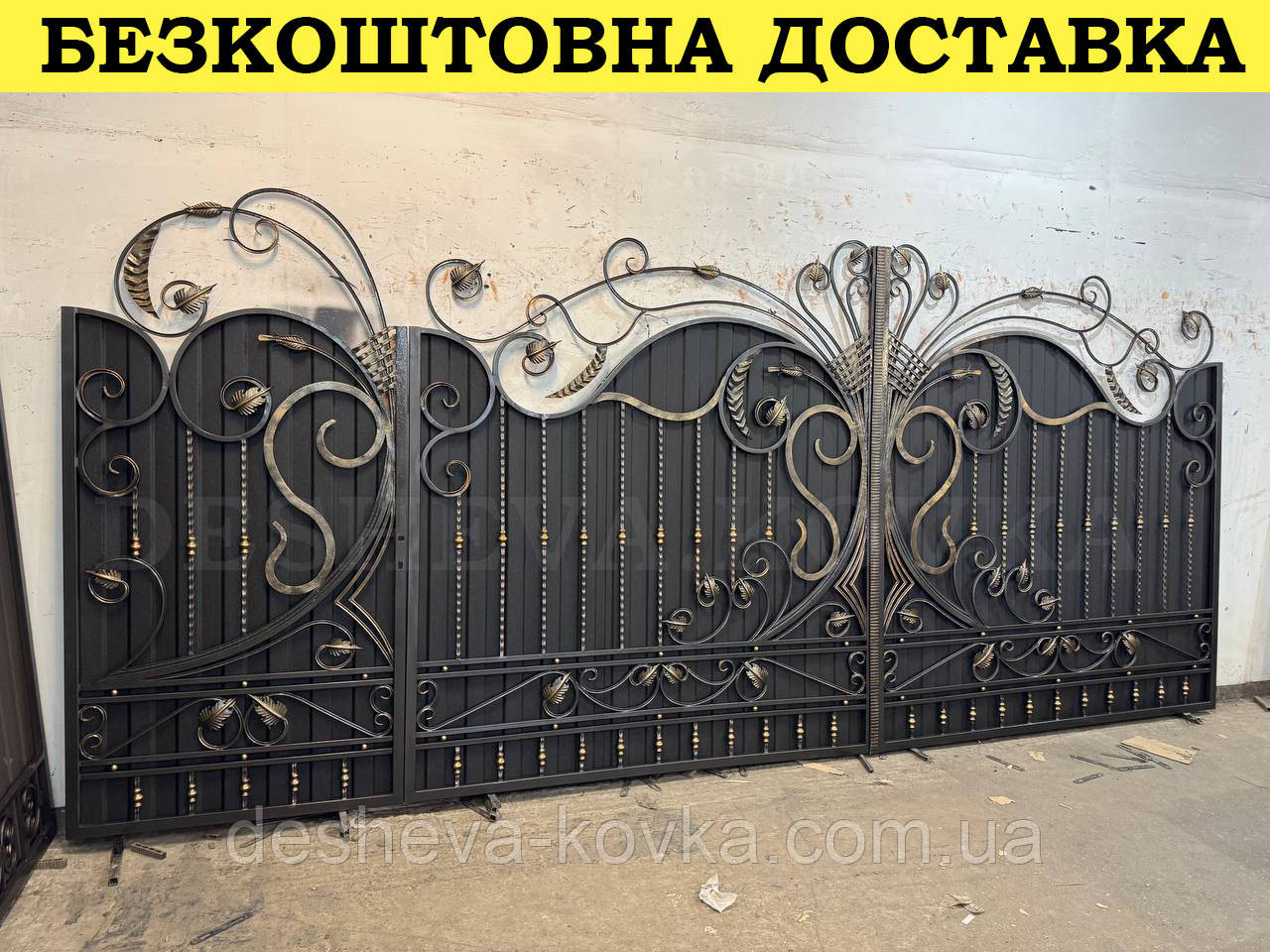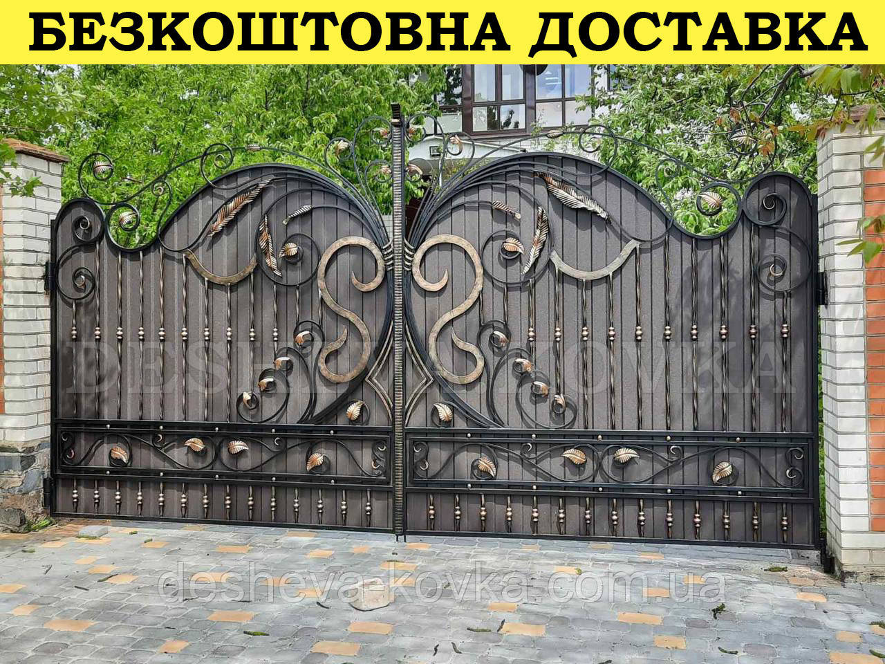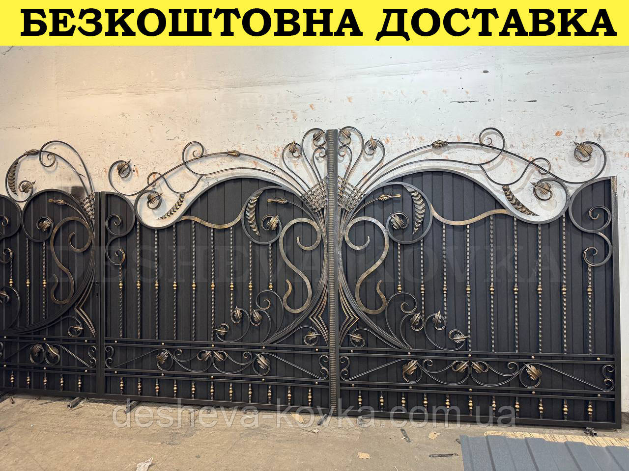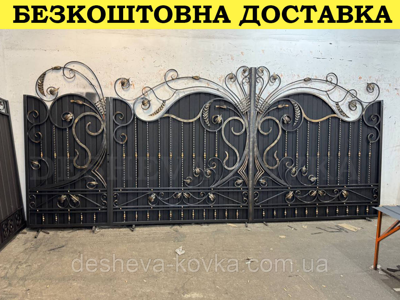 Кованые ворота из профнастилом и коваными элементами Код: А-01222