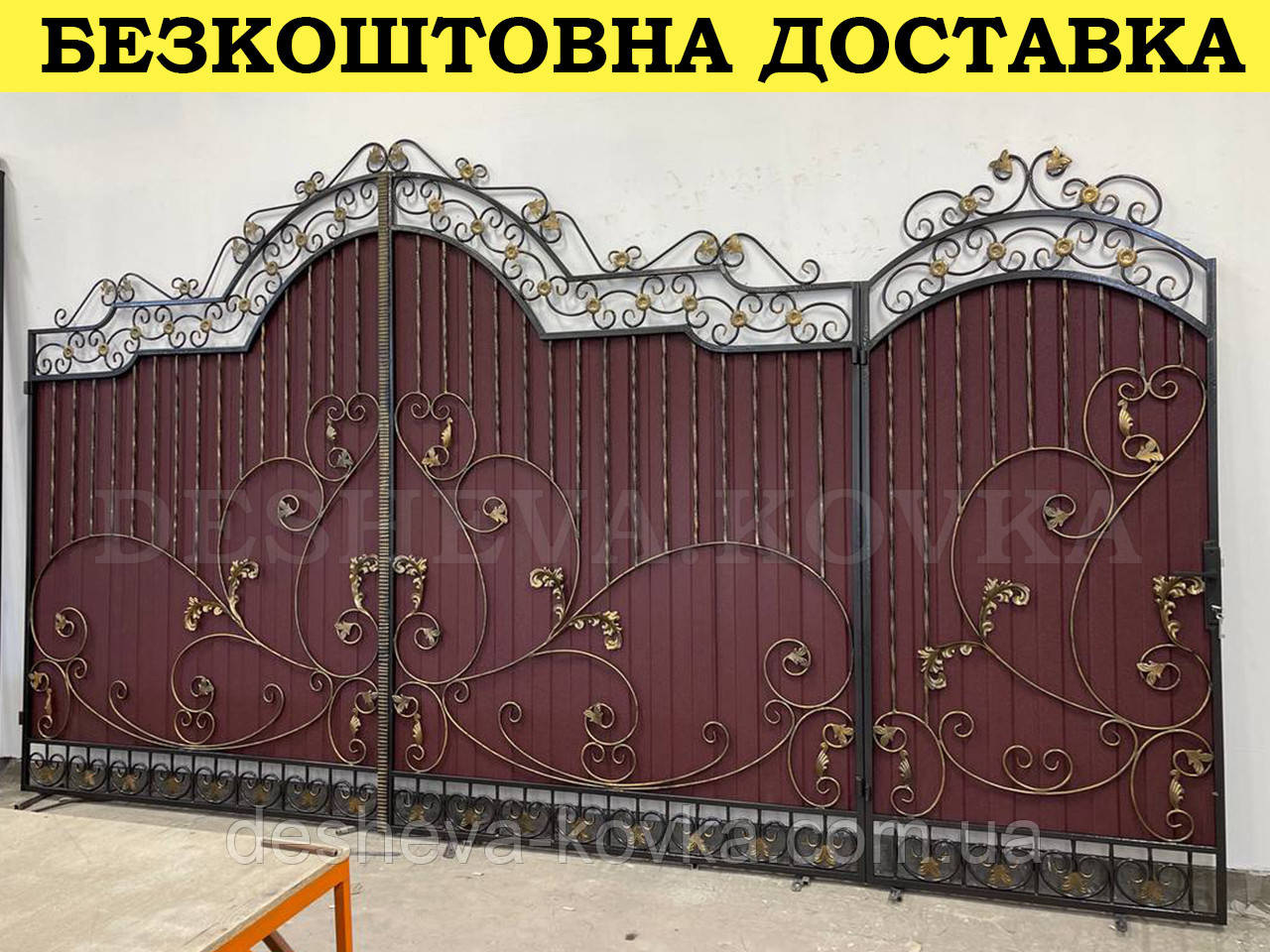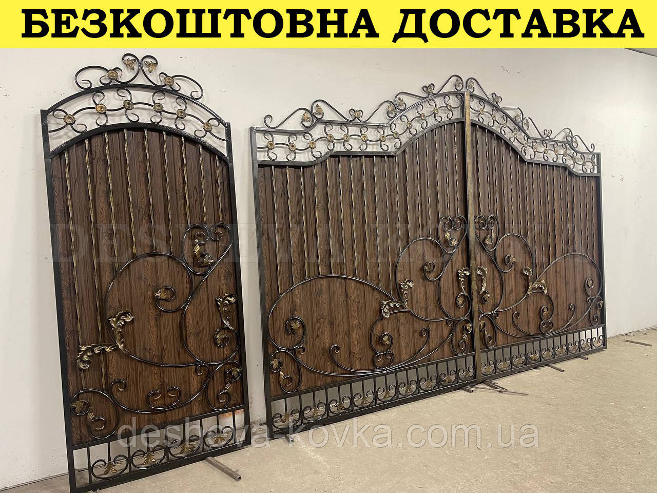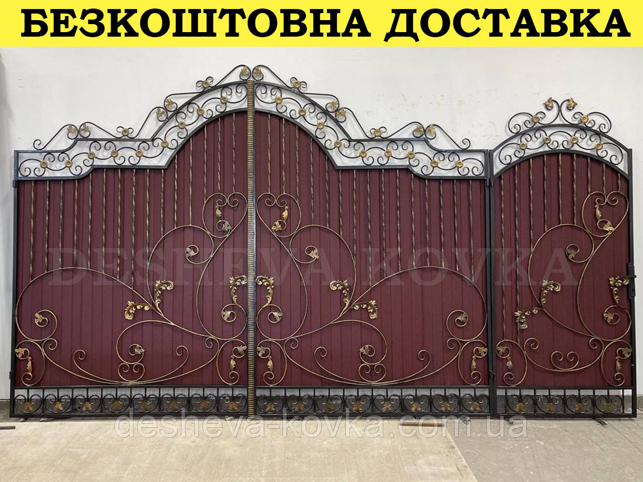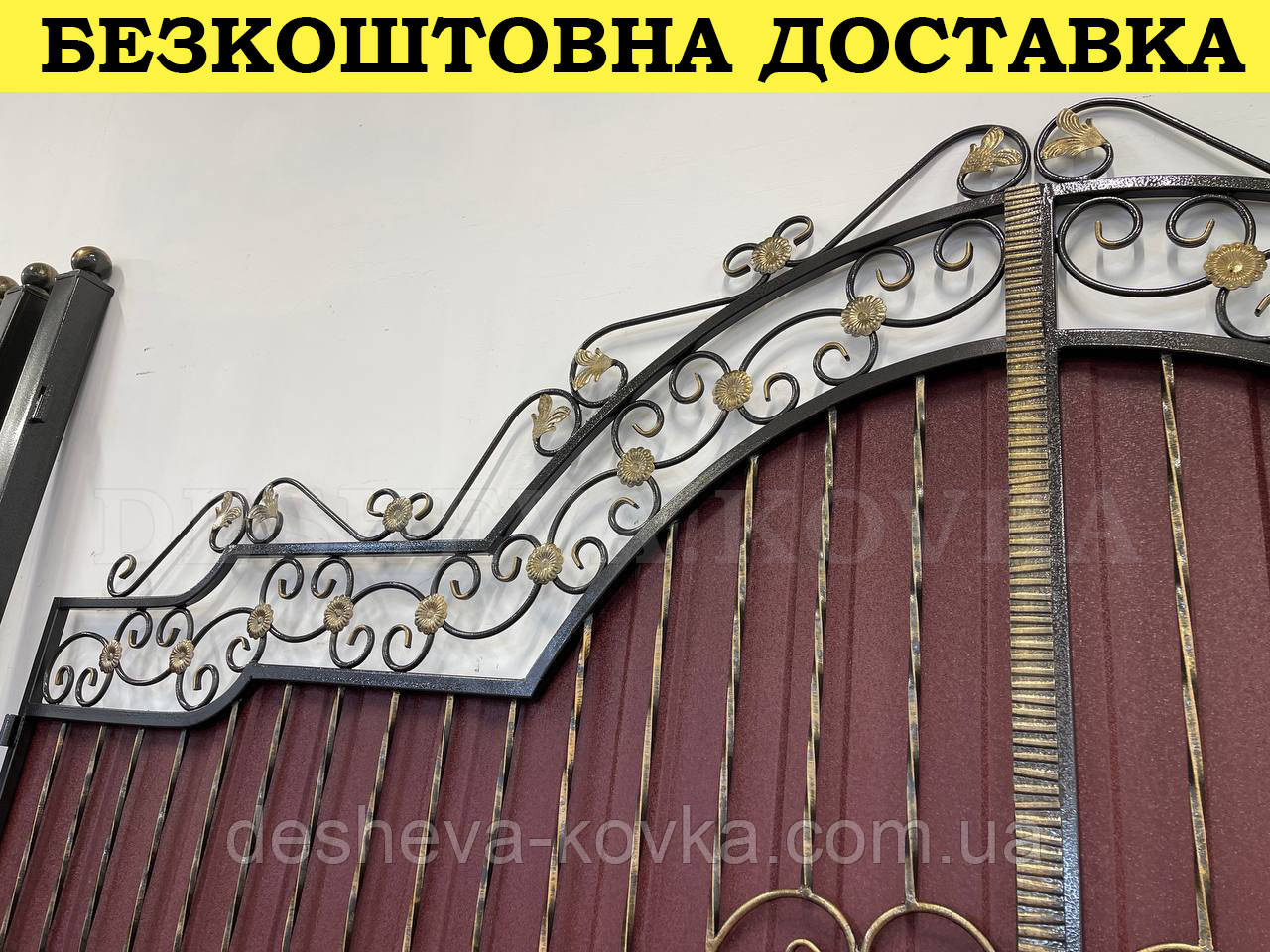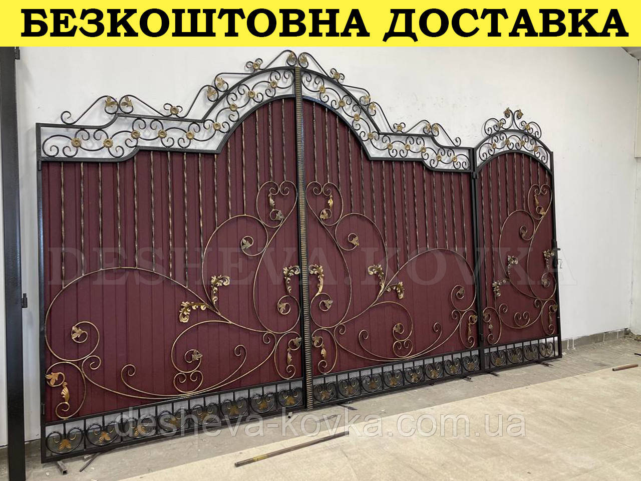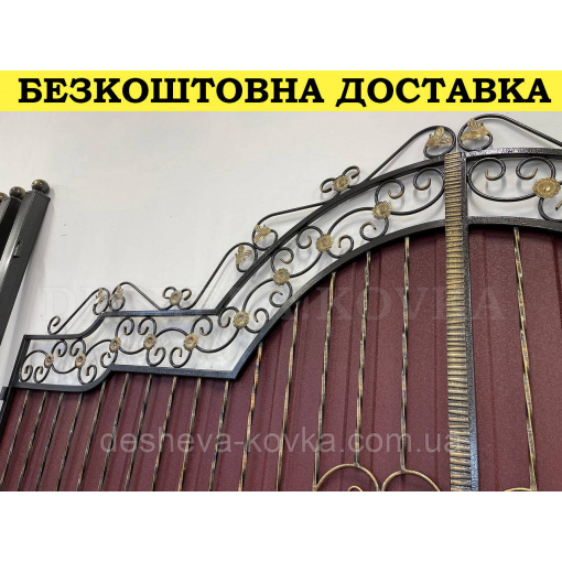 Кованые ворота из профнастилом и ковкой Код: А-01146