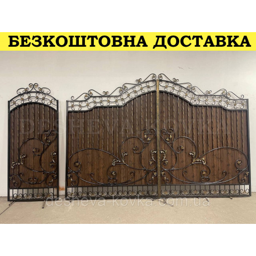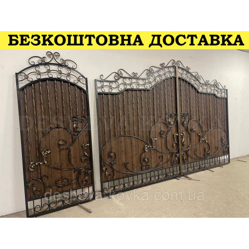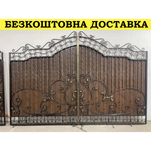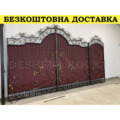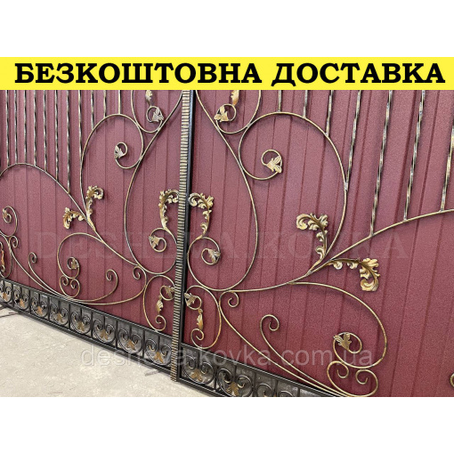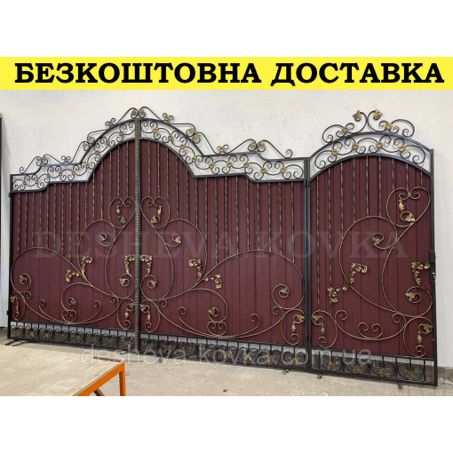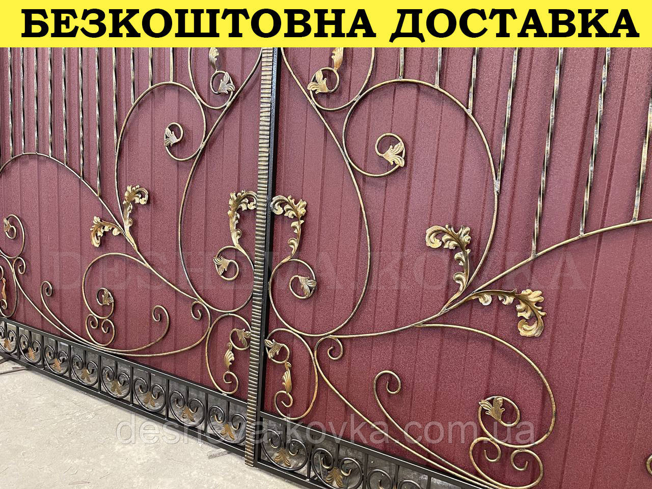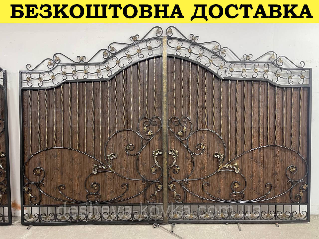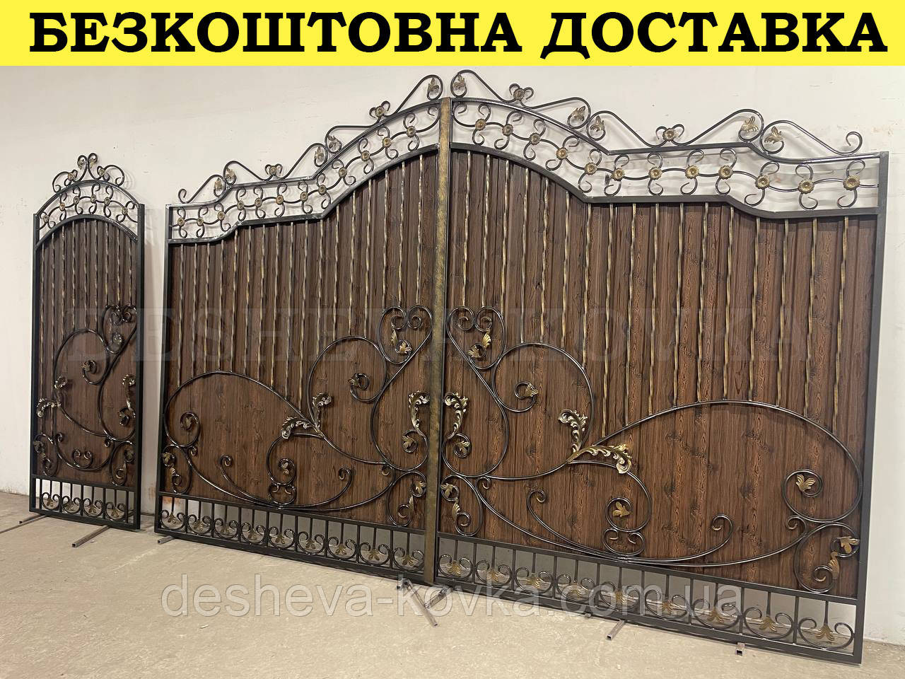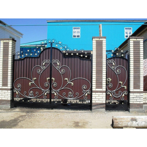 Кованые ворота из профнастилом и ковкой Код: А-01146