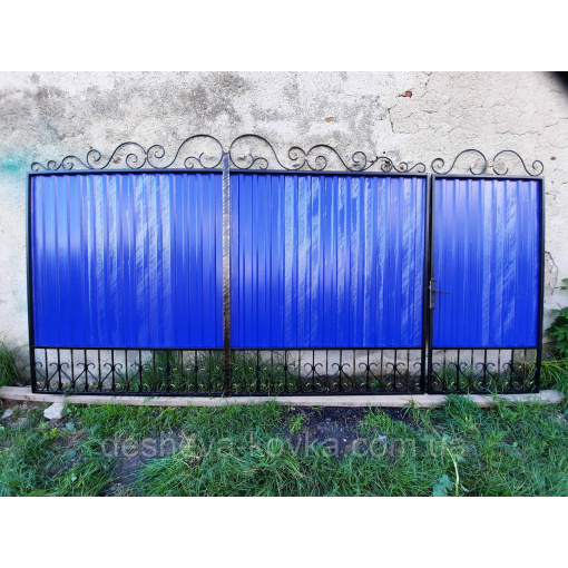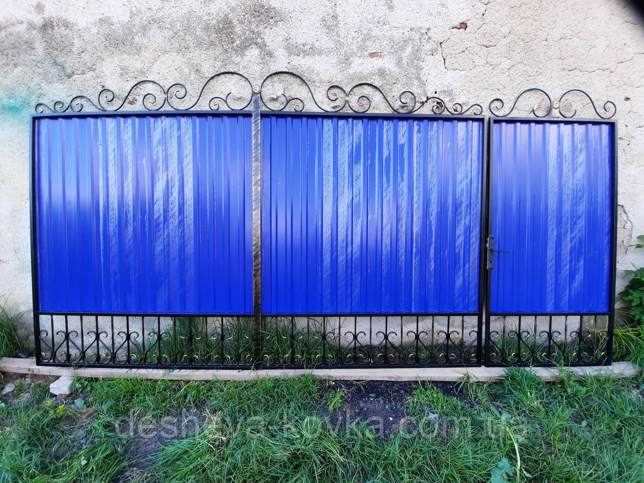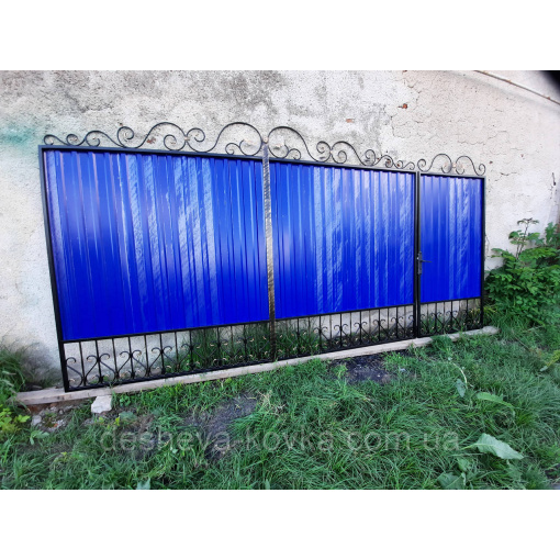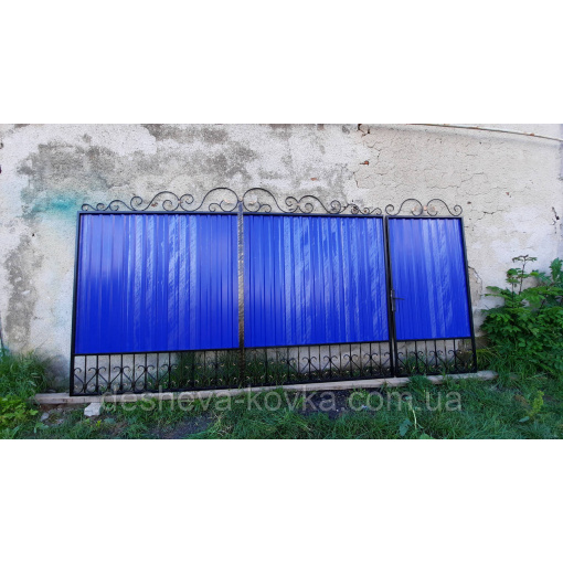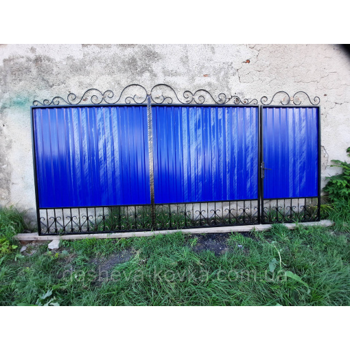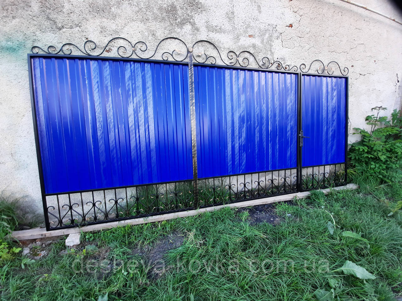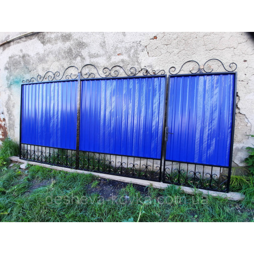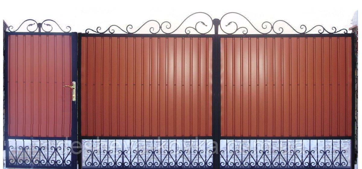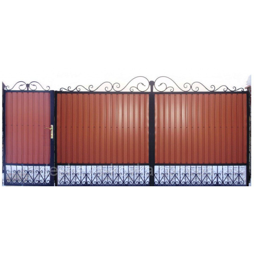Подробные характеристики Кованые ворота из профнастилом под заказ.