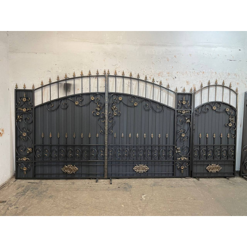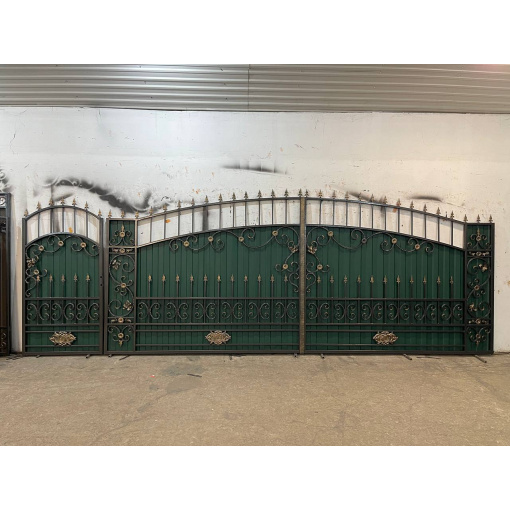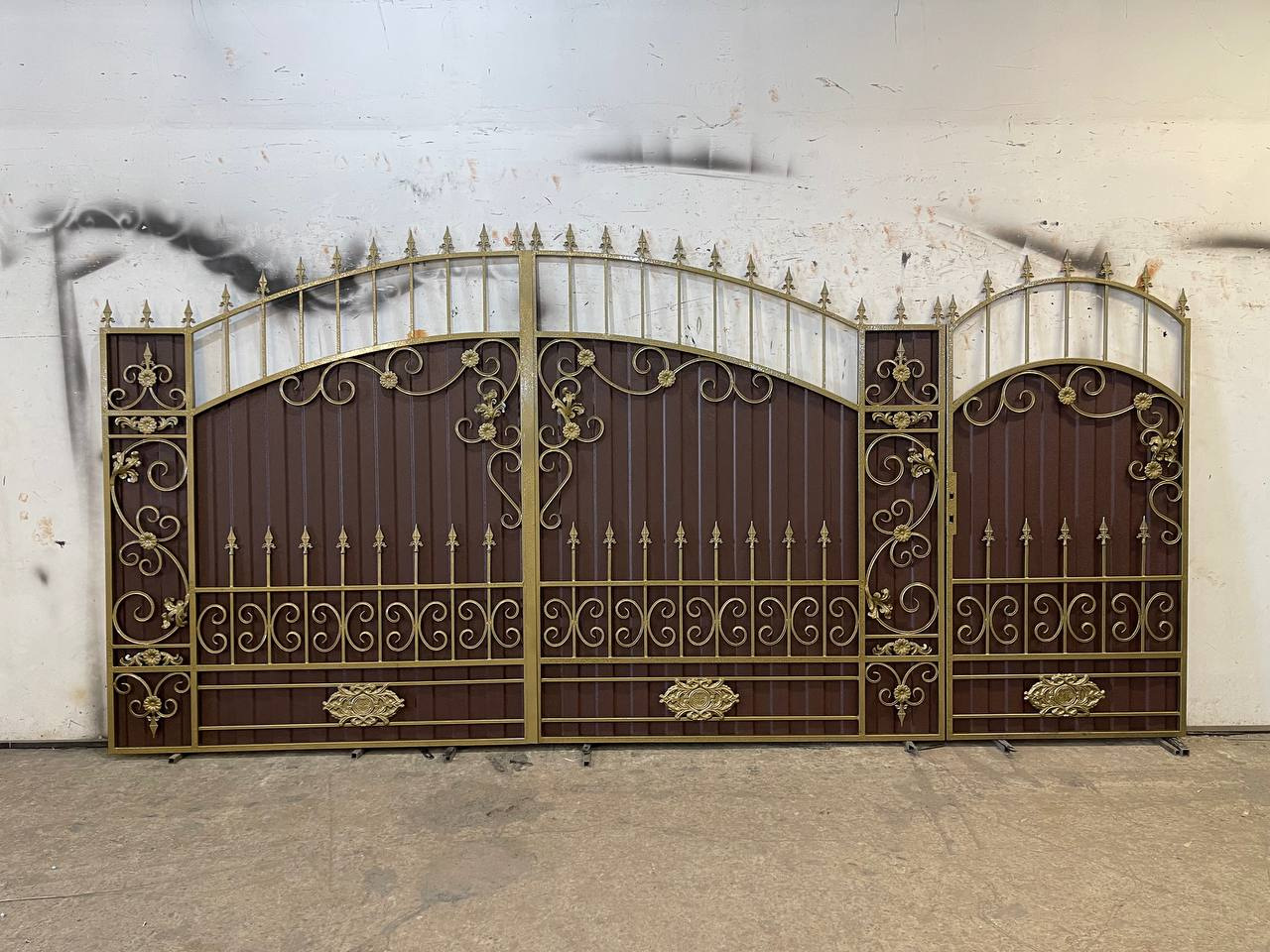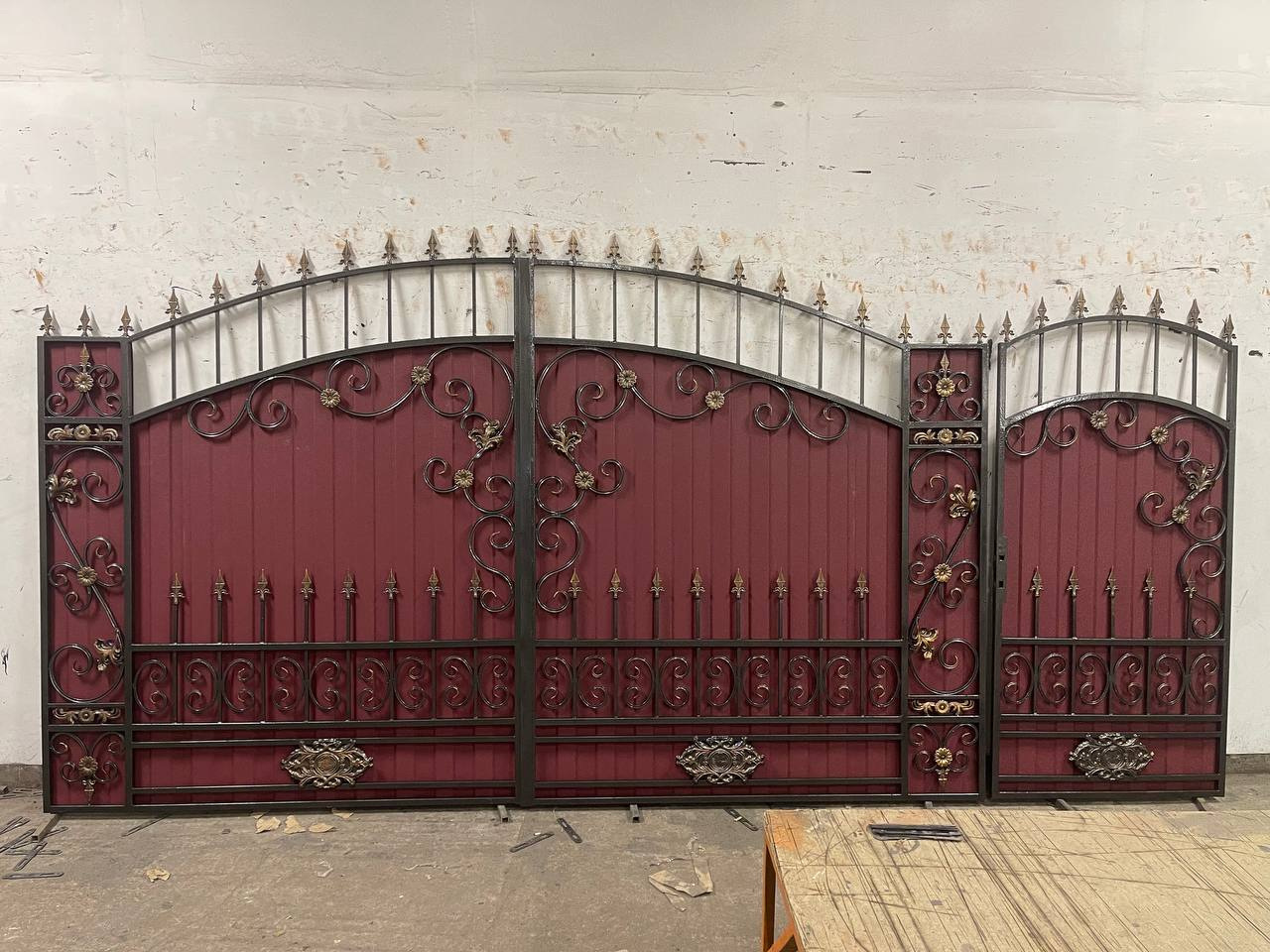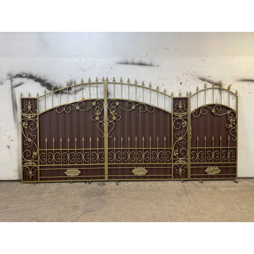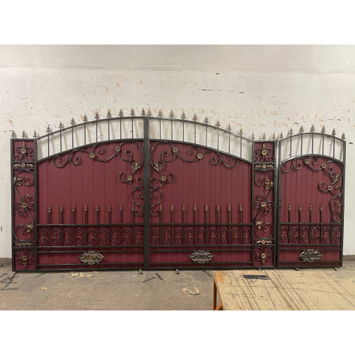 Кованые ворота с калиткой и элементами ковки Код: А-0193