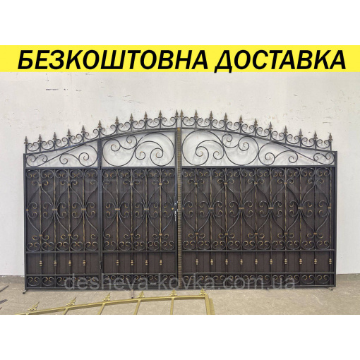 Кованые ворота с калиткой и пиками Код: А-01165(1)