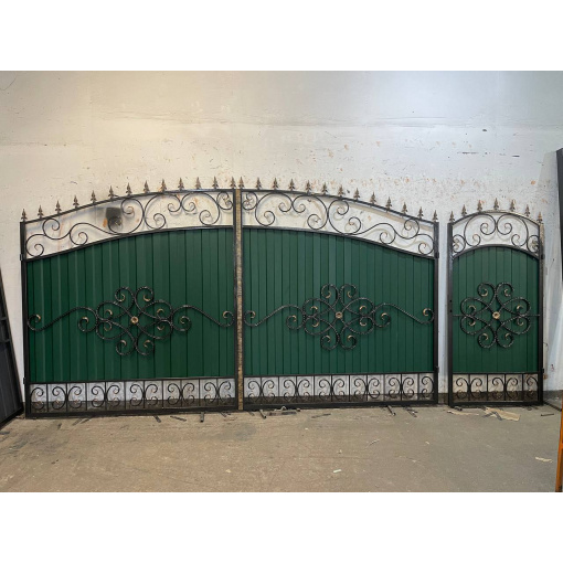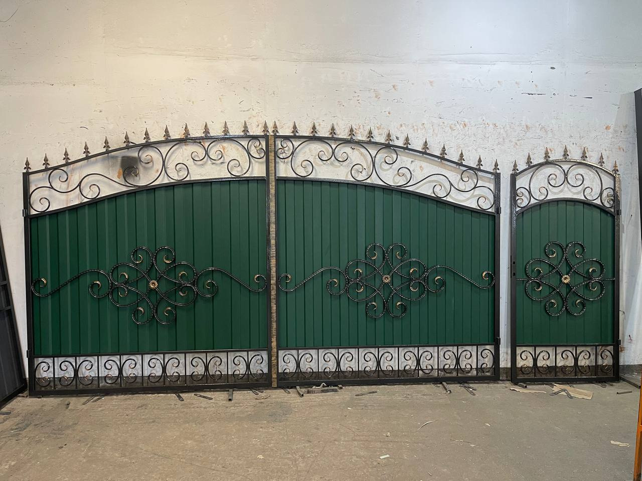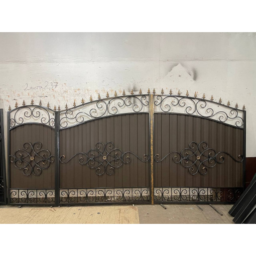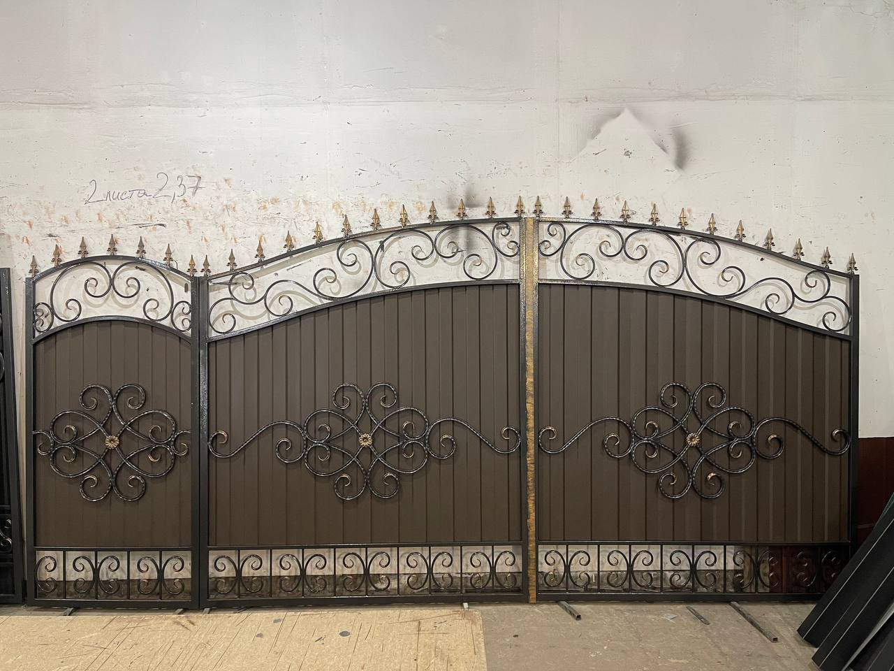 Кованые ворота с профнастилом без переплат Код: А-01248