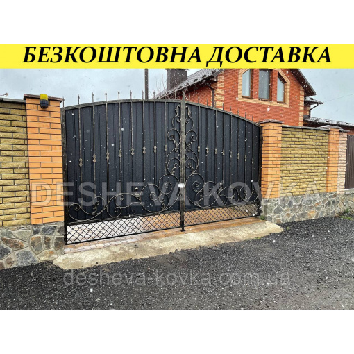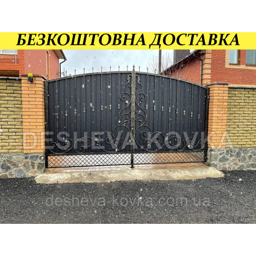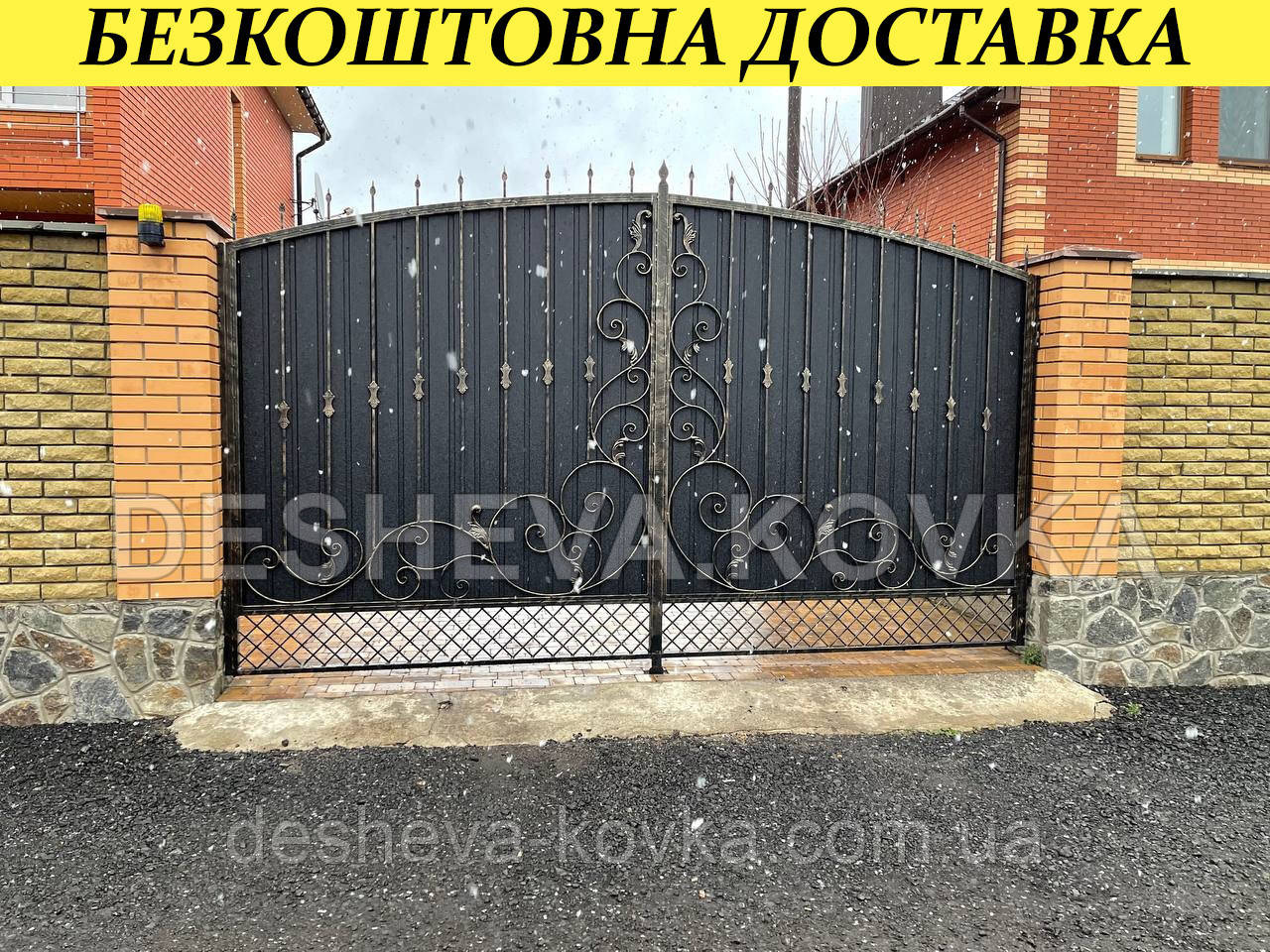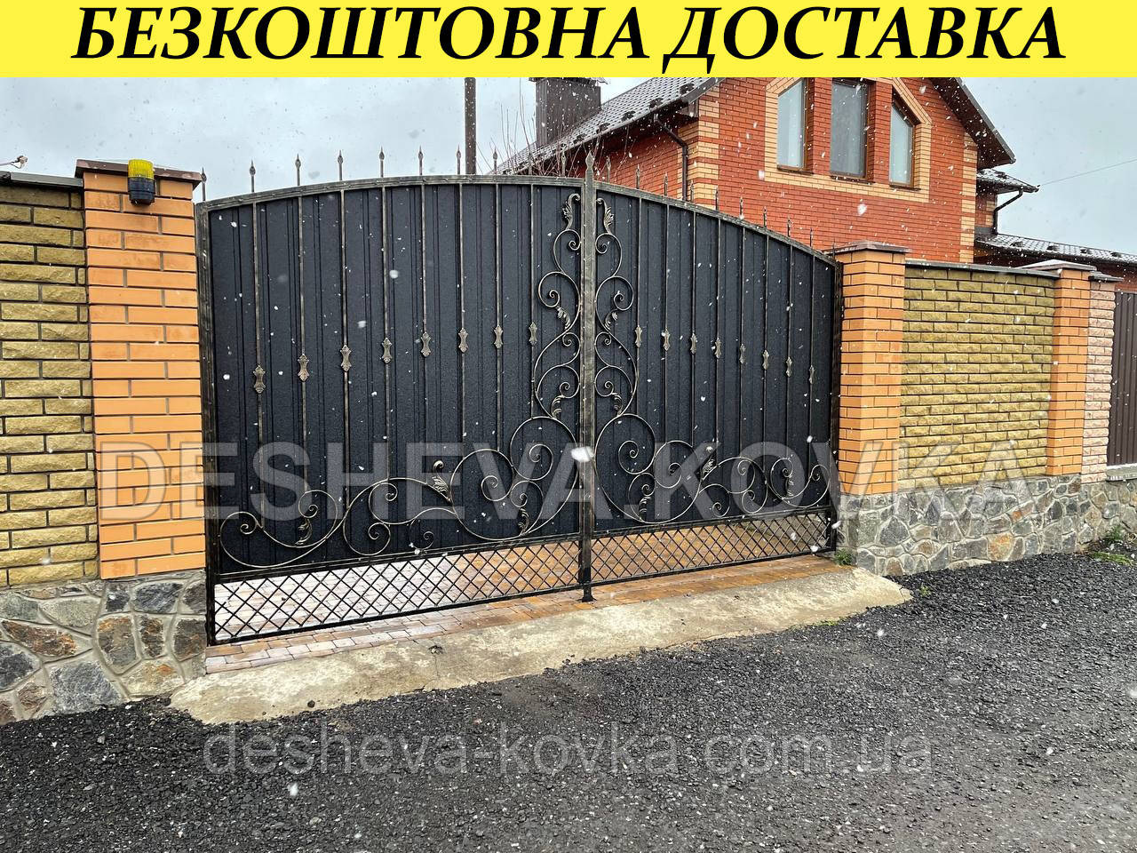 ВОРОТА З ПРОФНАСТІЛОМ І КОВАНИМИ ЕЛЕМЕНТАМИ