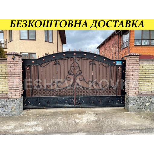 ВОРОТА З ПРОФНАСТІЛОМ І КОВАНИМИ ЕЛЕМЕНТАМИ