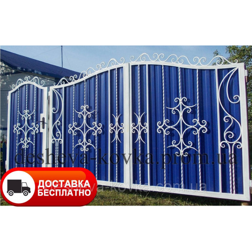 Подробные характеристики Ворота из коваными элементами и профнастила.