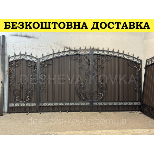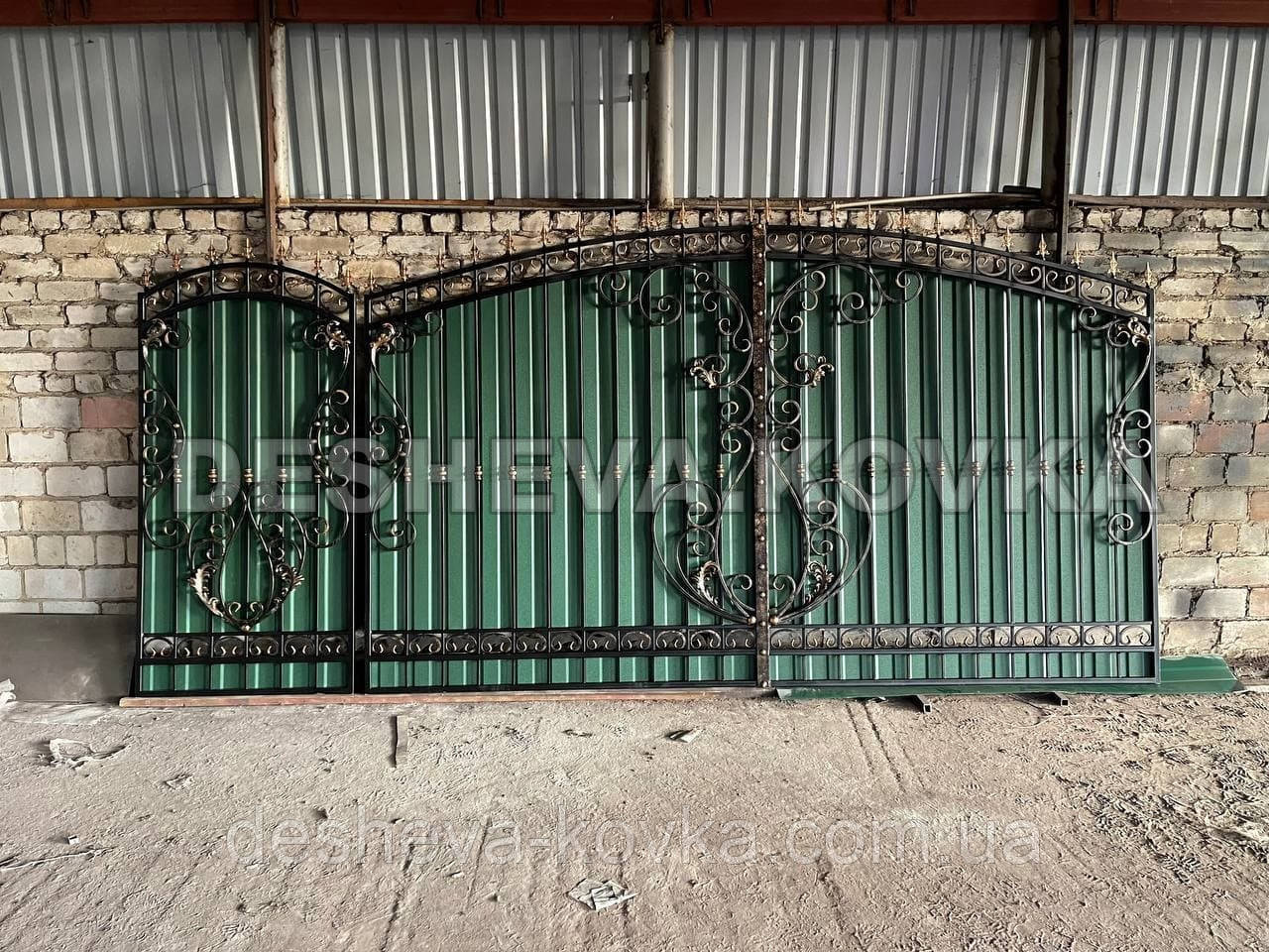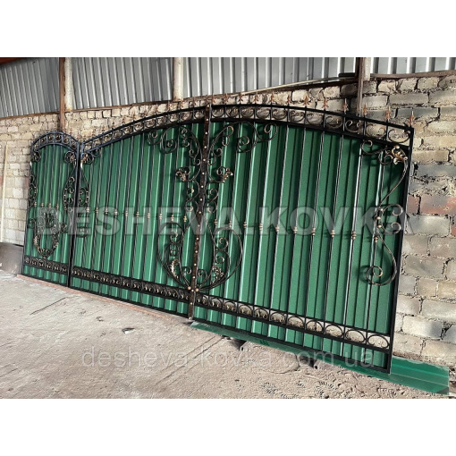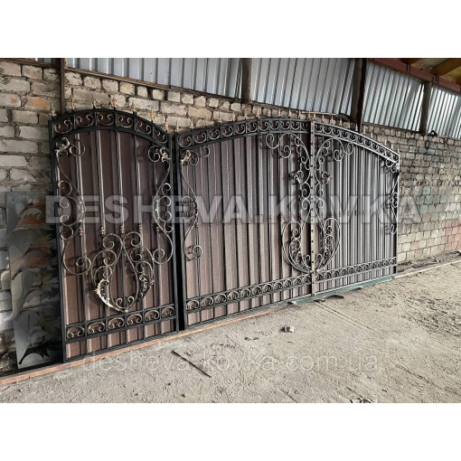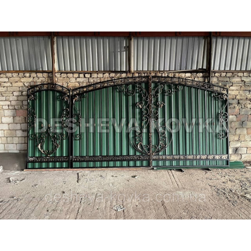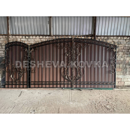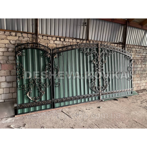 Ворота из профнастила из элитной ковкой Код: А-01174