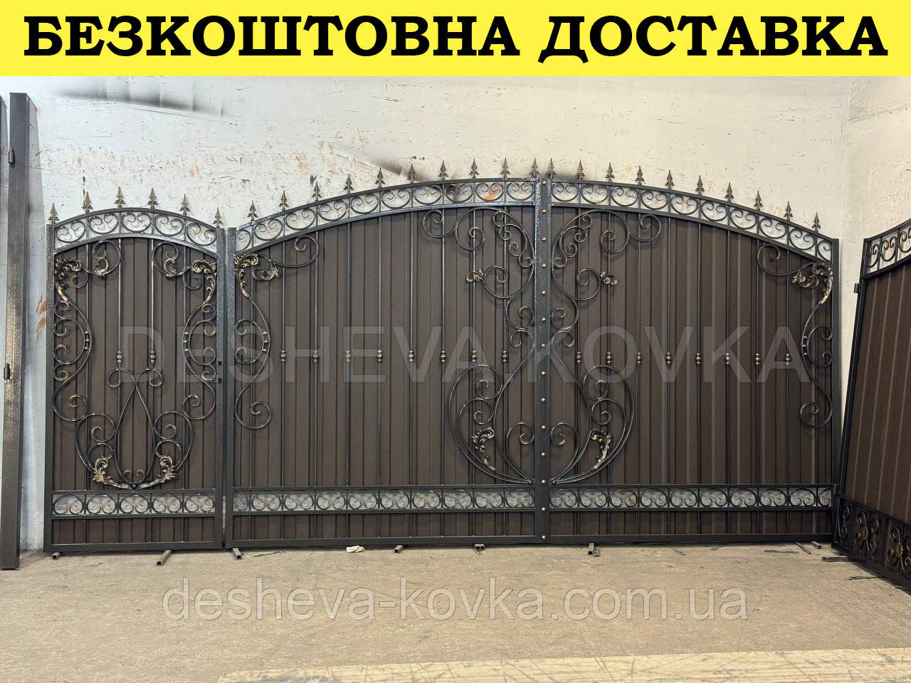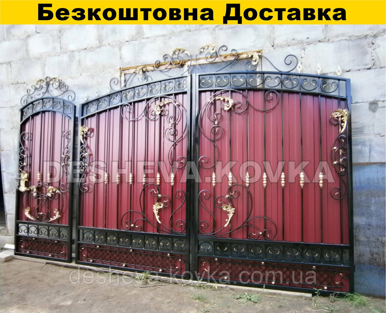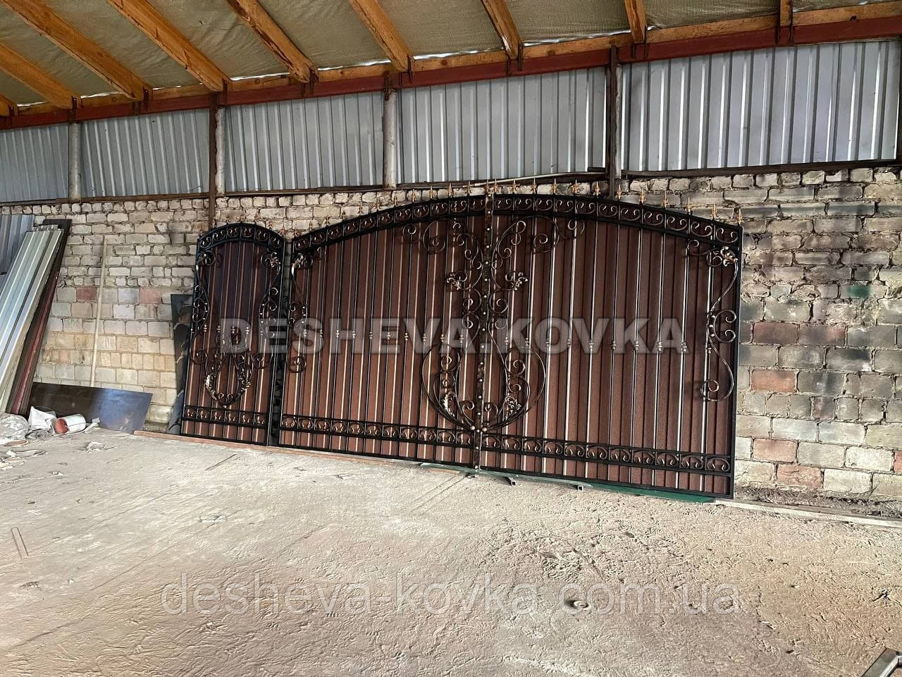 Ворота из профнастила из элитной ковкой Код: А-01174