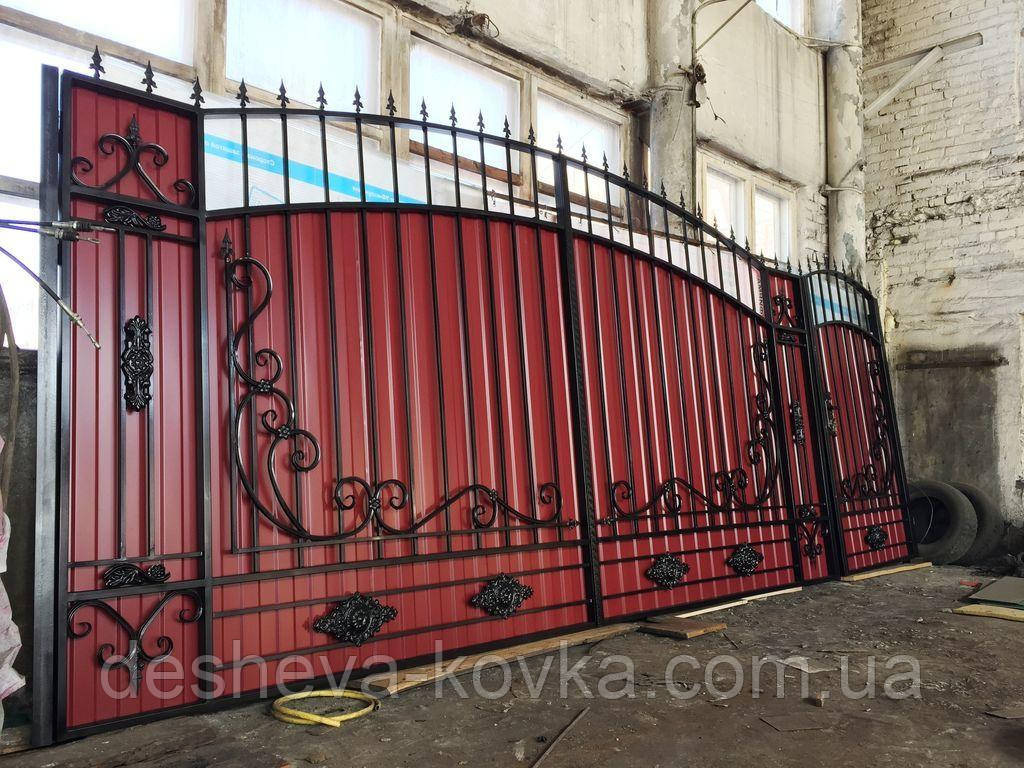 Ворота кованые из профнастилом