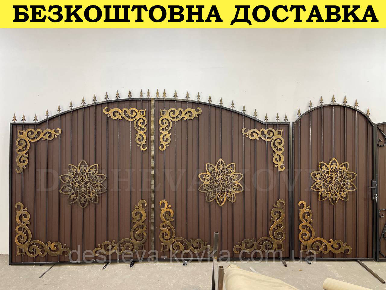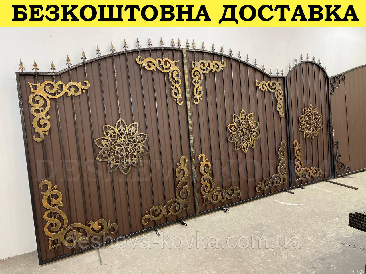 Ворота кованые из профнастилом и калиткой Код: А-01198