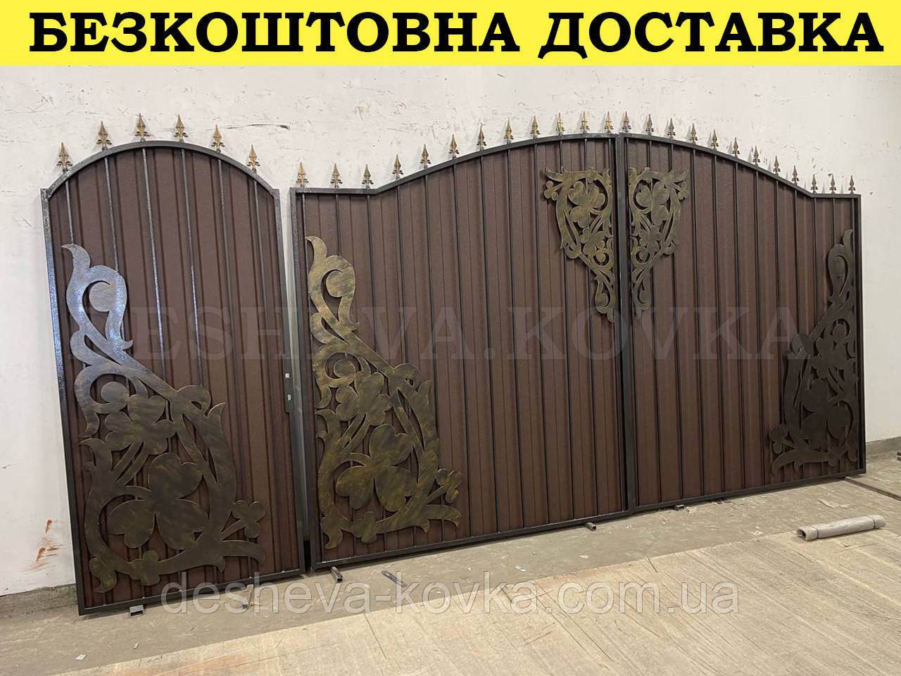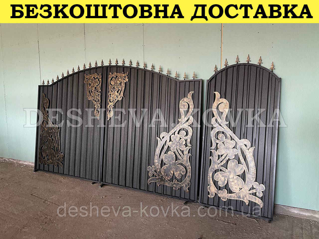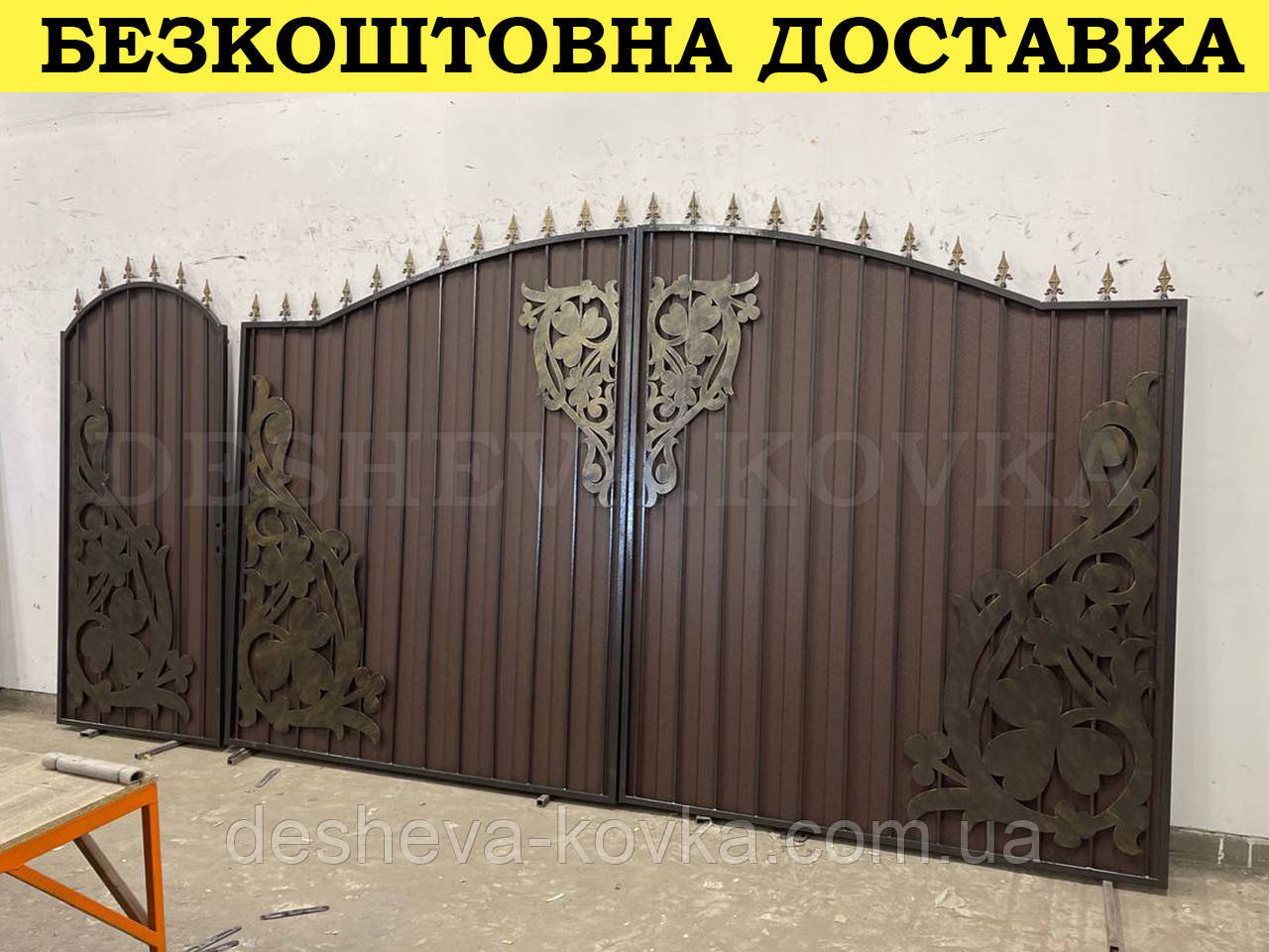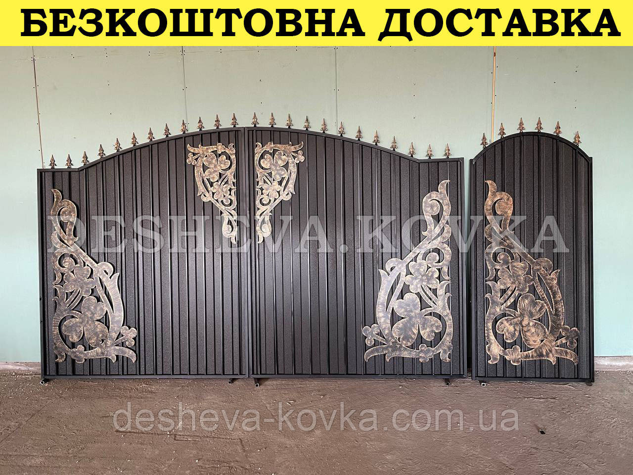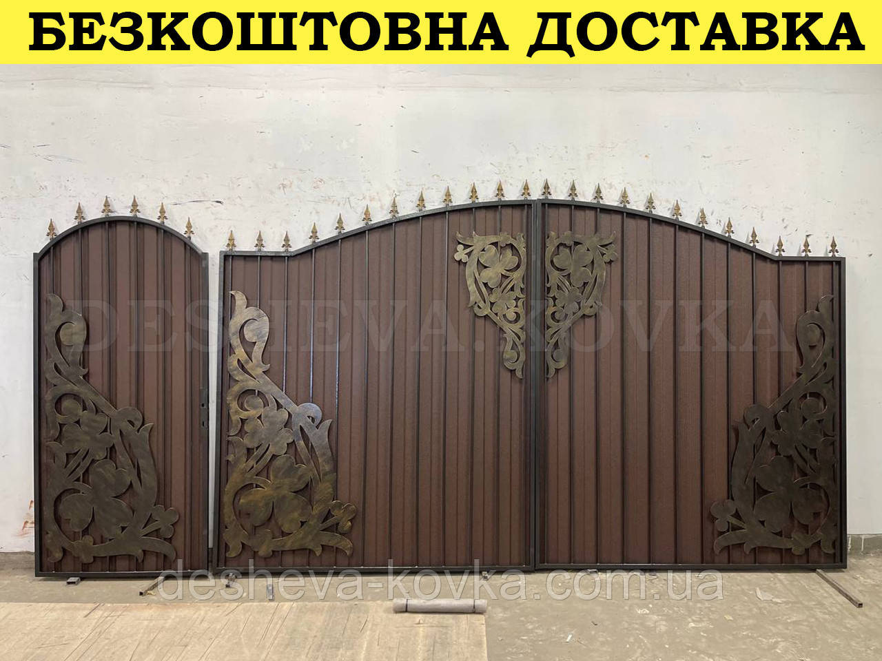 Ворота кованые из профнастилом и калиткой Код: А-01219