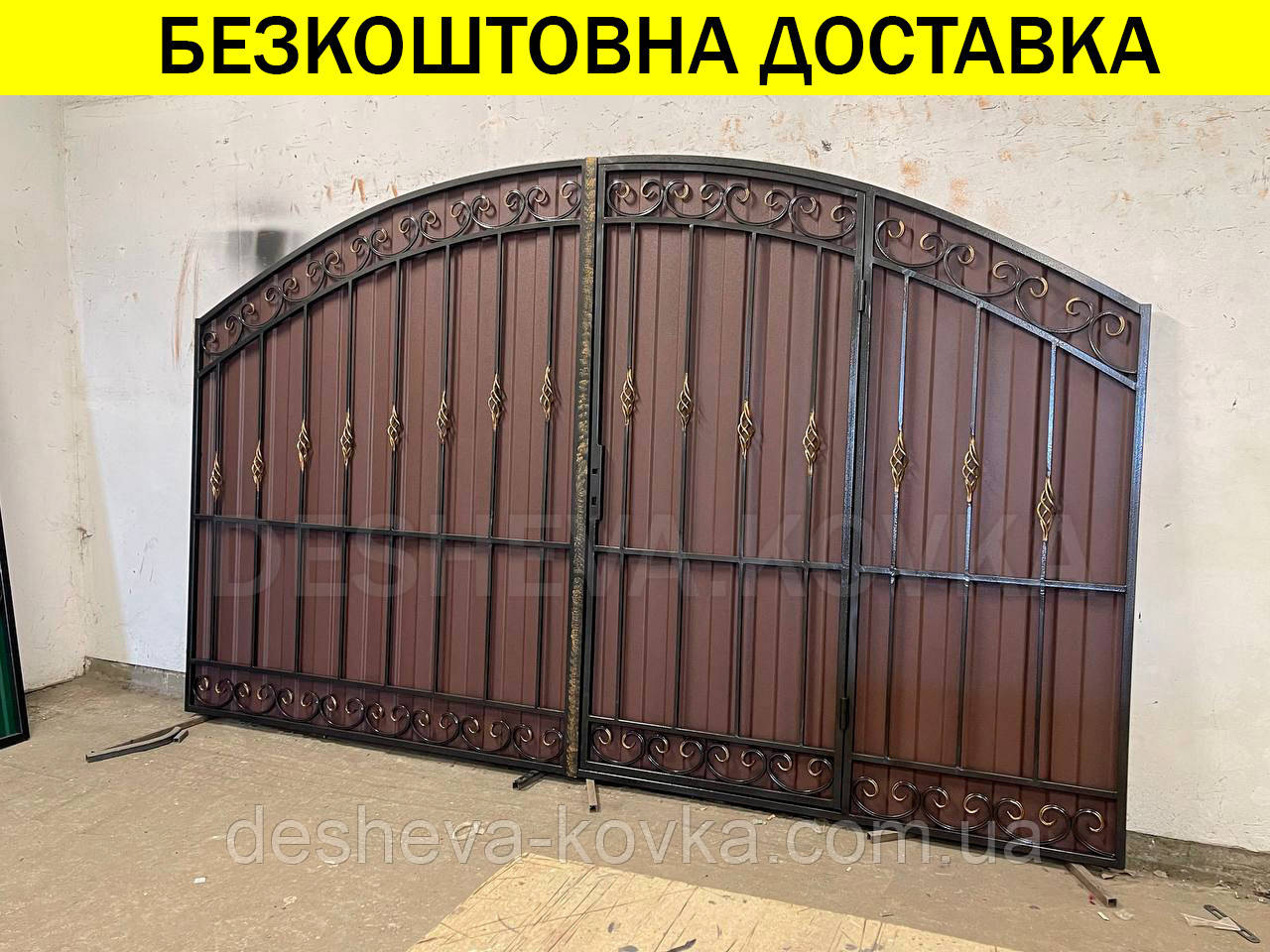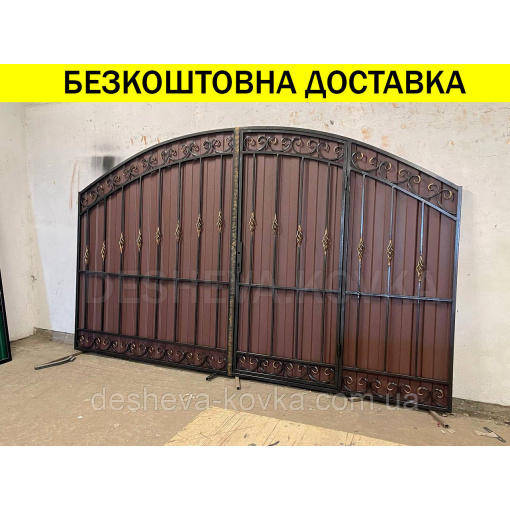 Подробные характеристики Ворота кованые из профнастилом и калиткой Код: А-01227.
