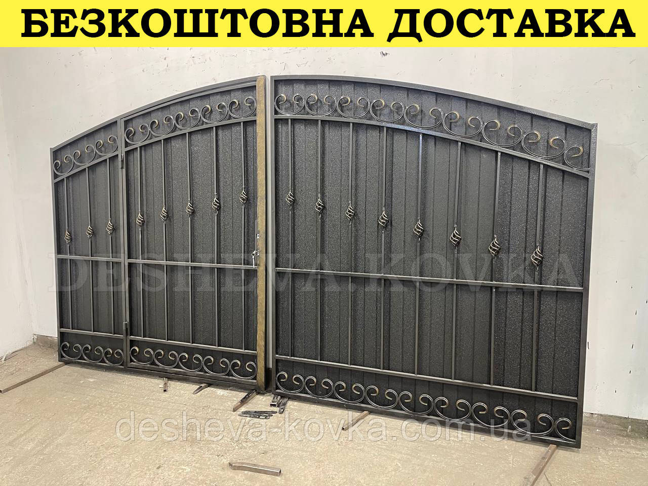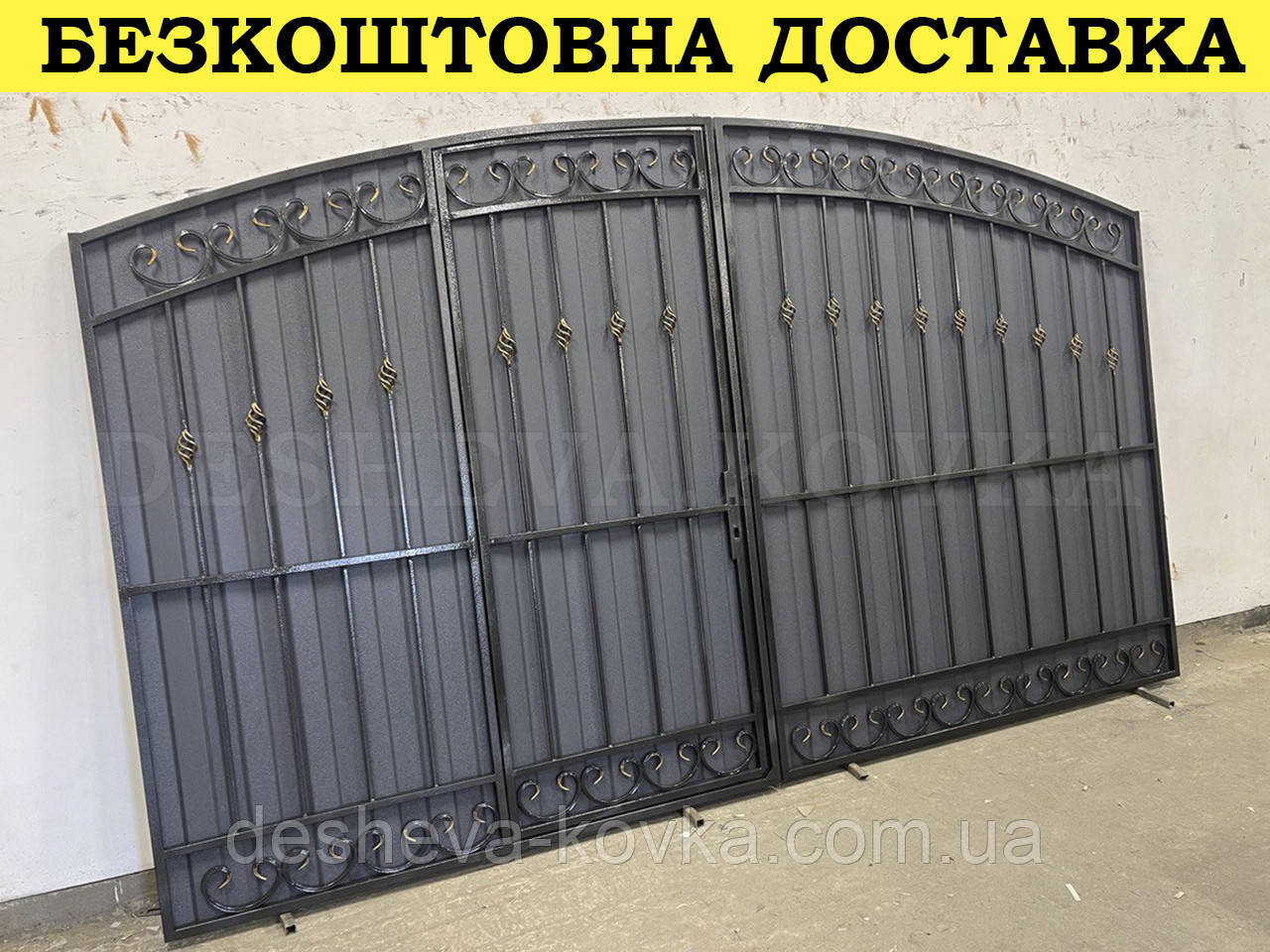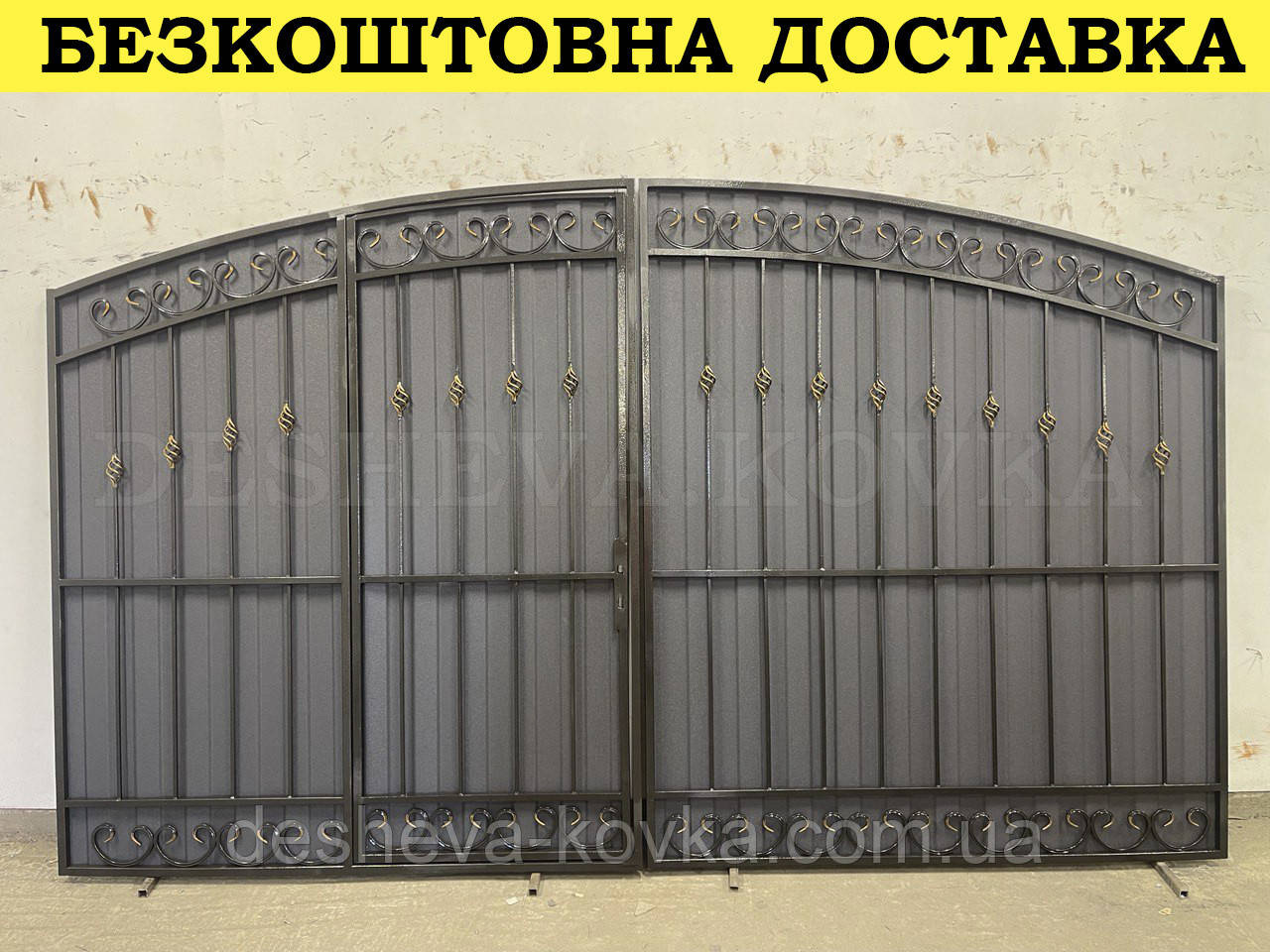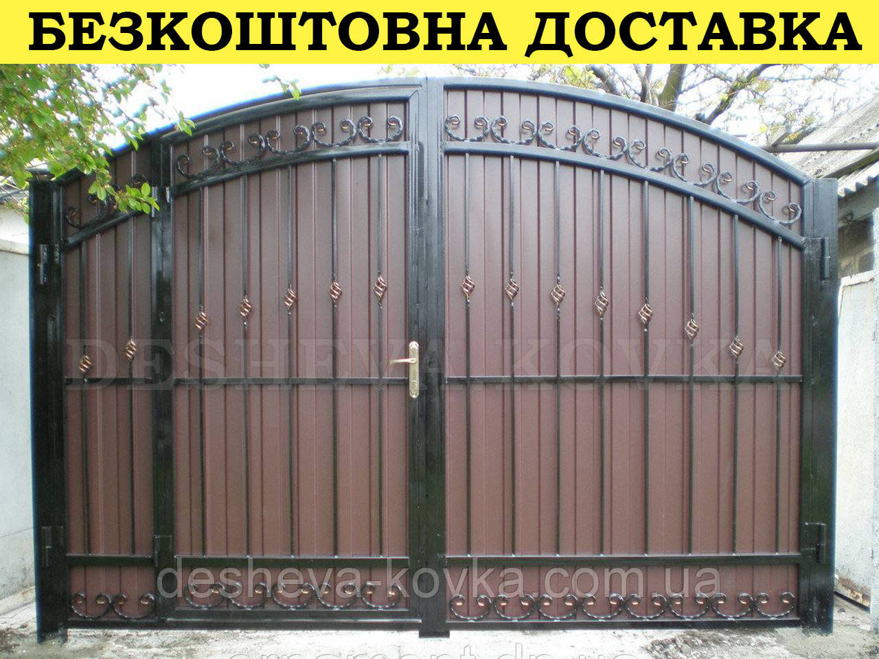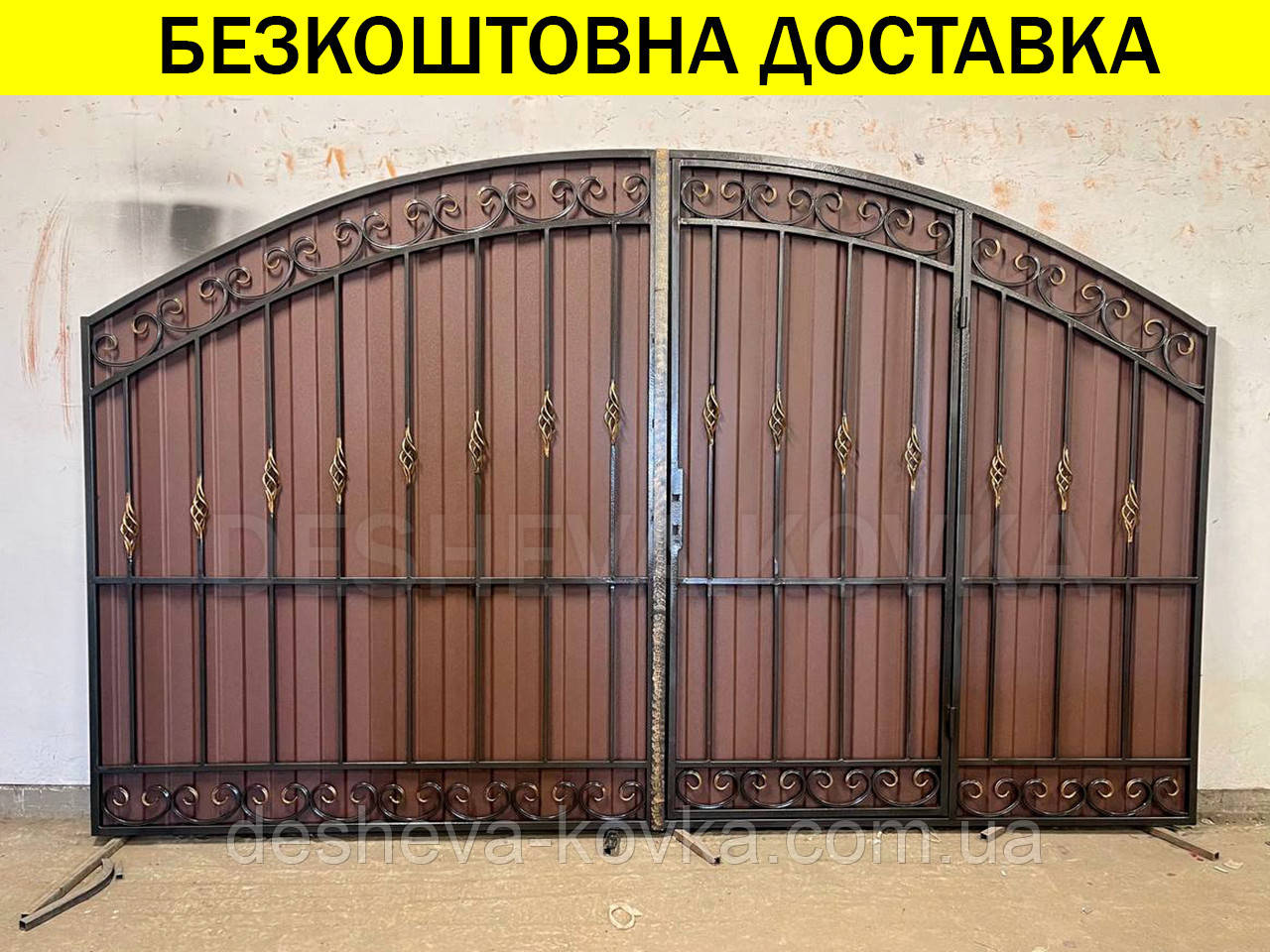 Ворота кованые из профнастилом и калиткой Код: А-01227