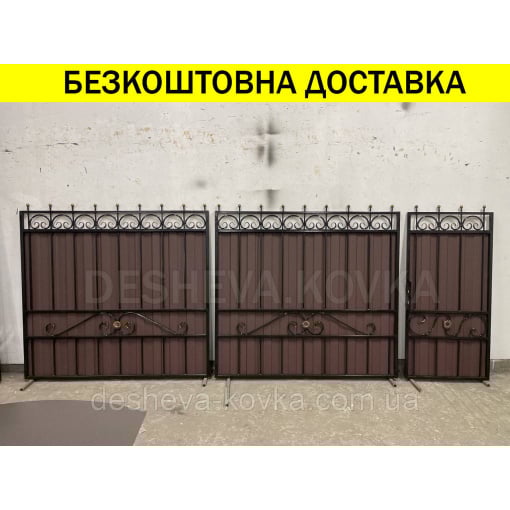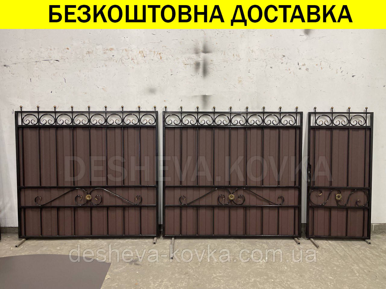 Подробные характеристики Ворота кованые из профнастилом и калиткой Код: А-01242.