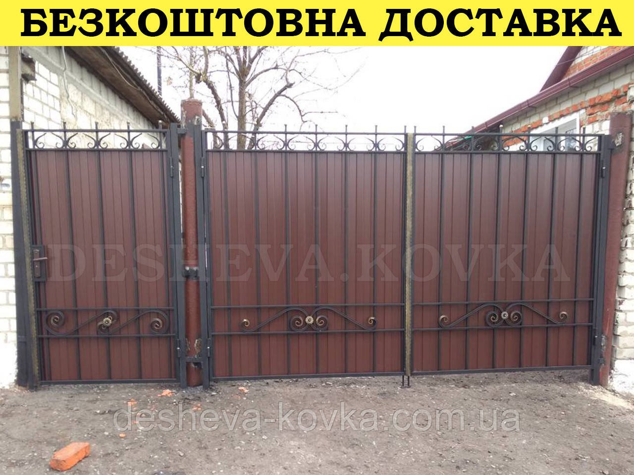 Ворота кованые из профнастилом и калиткой Код: А-01242