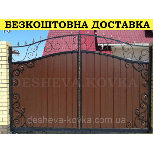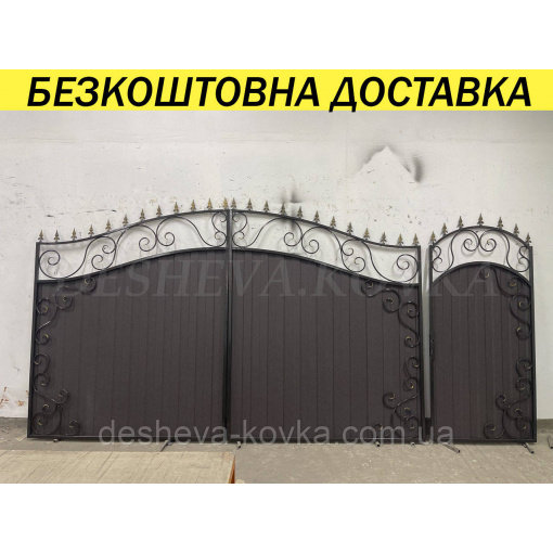 Подробные характеристики Ворота кованые из профнастилом и калиткой Код: А-01250.