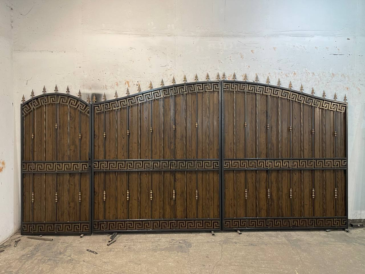Подробные характеристики Ворота с профнастилом и греческим орнаментом Код: А-0128.