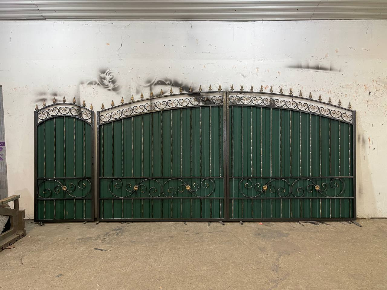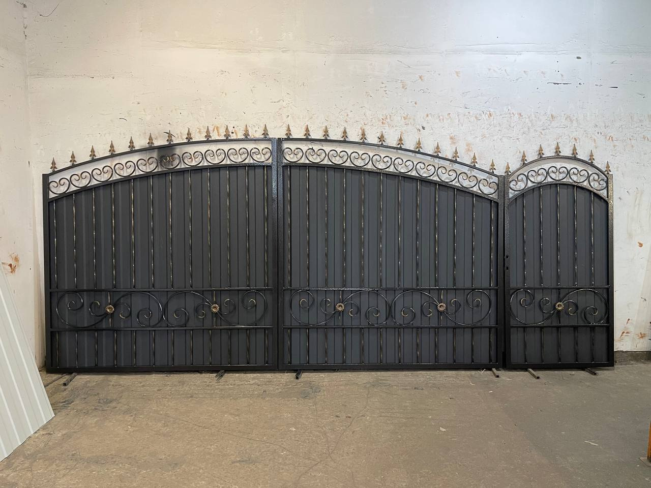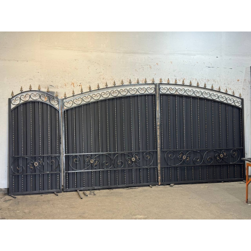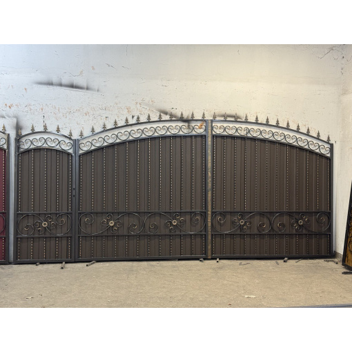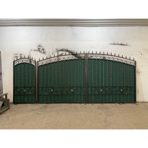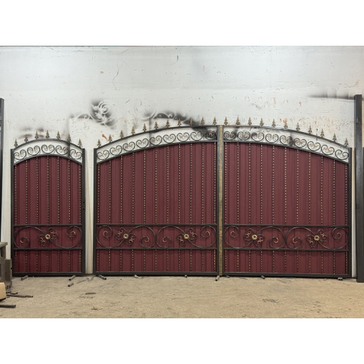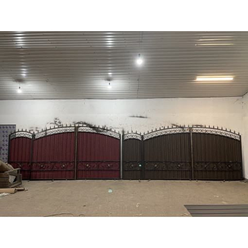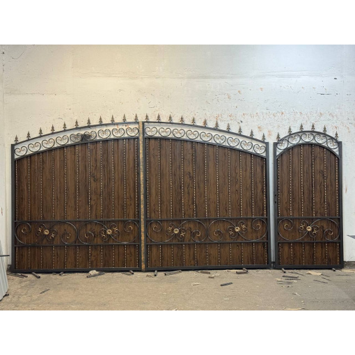 Ворота из профнастила с ковкой для частного дома по Вашим размерам Код: А-0191