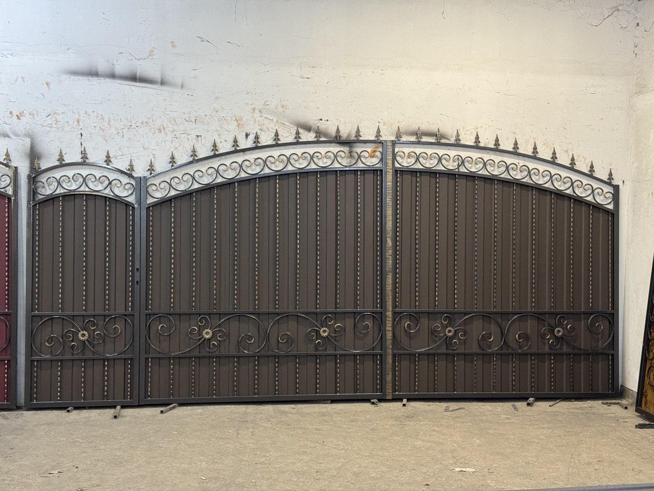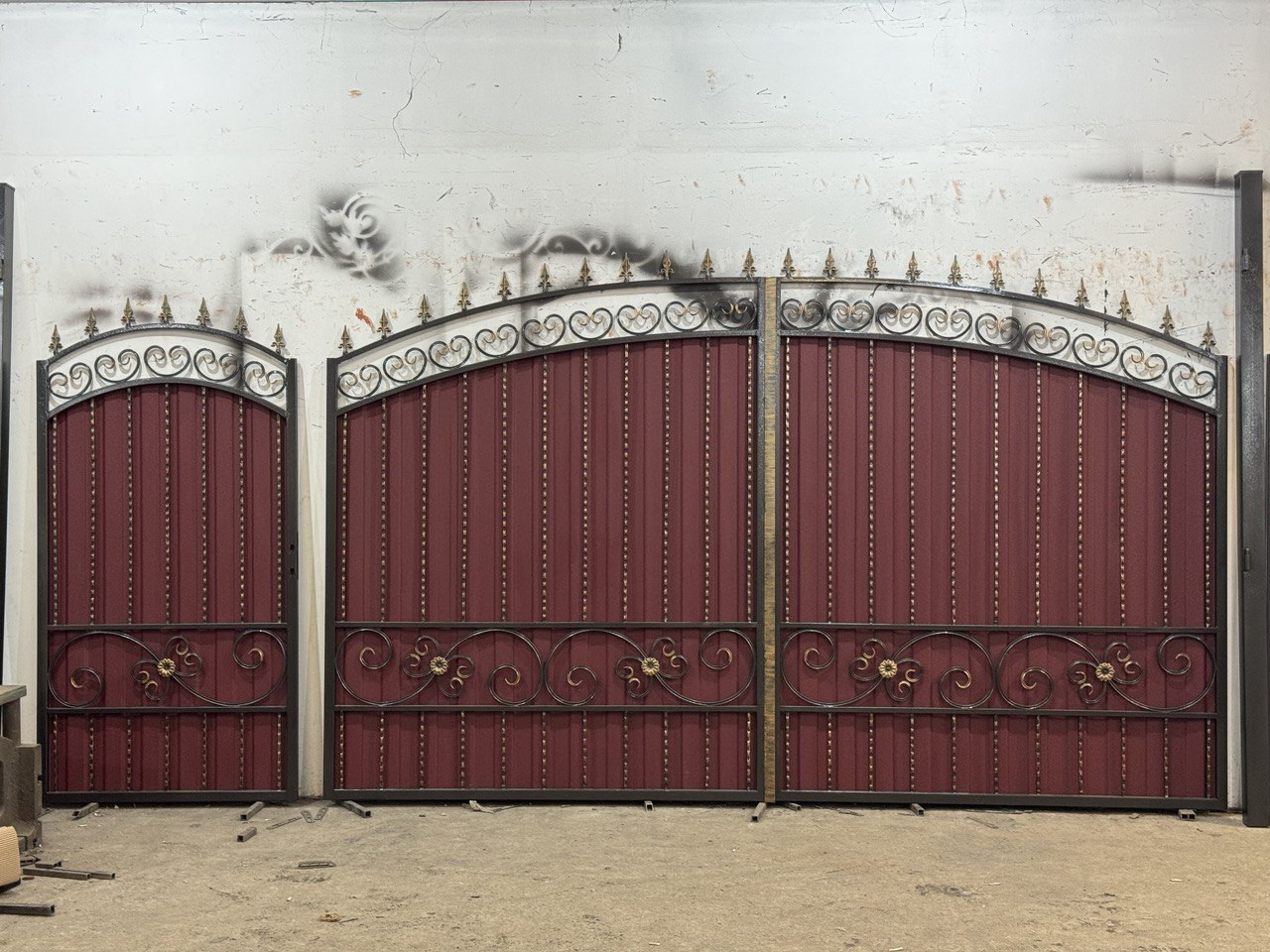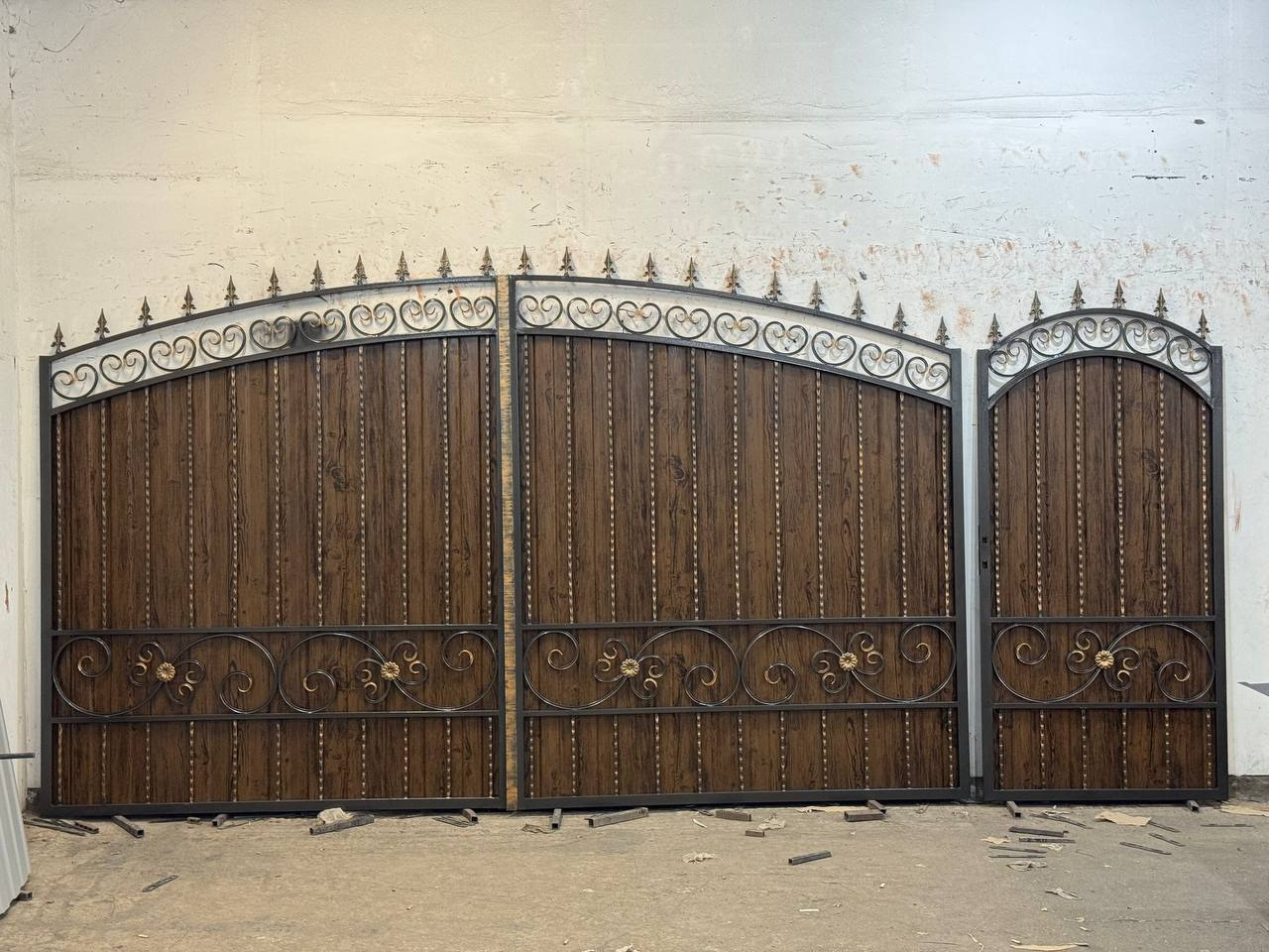 Ворота из профнастила с ковкой для частного дома по Вашим размерам Код: А-0191