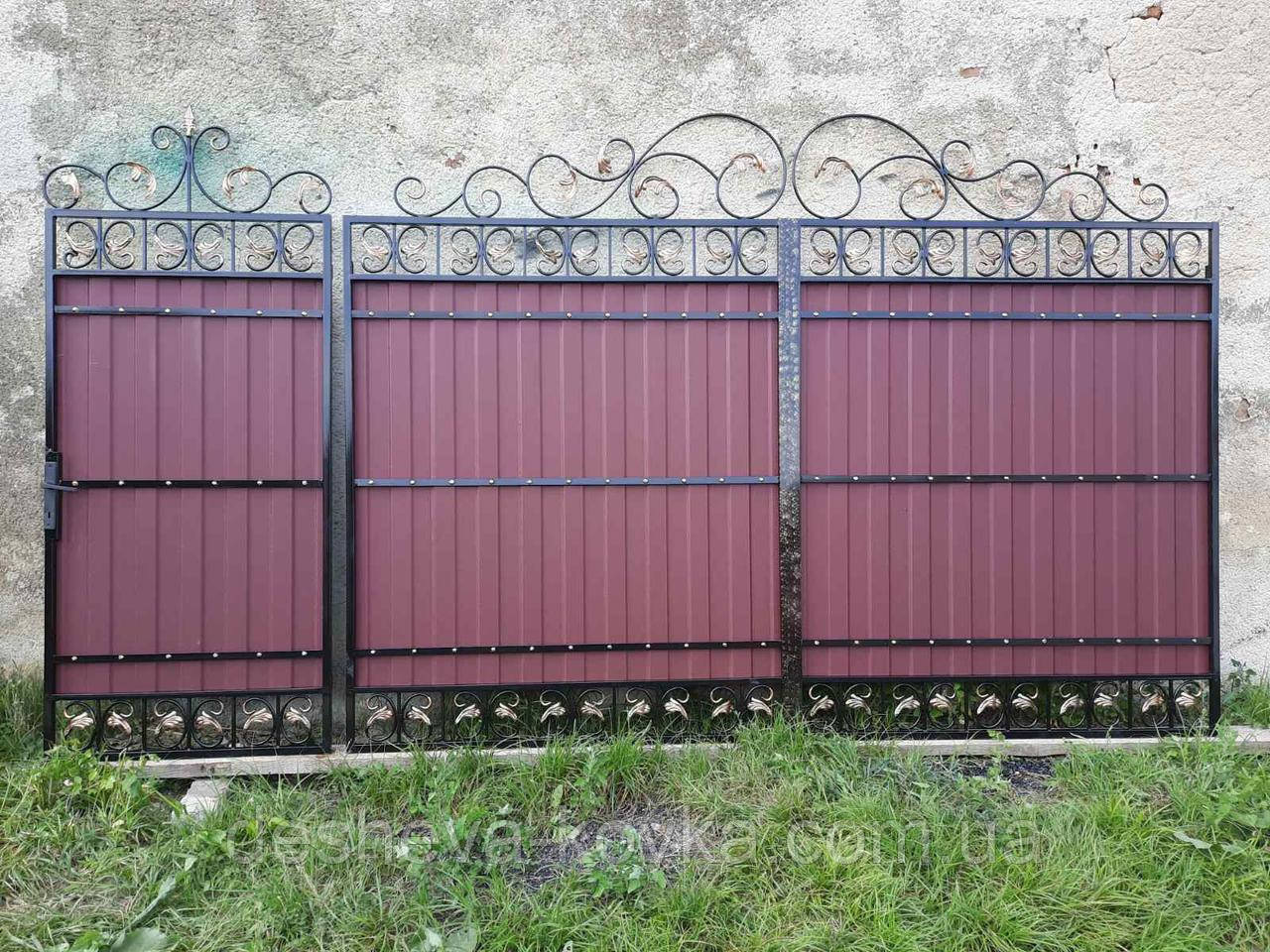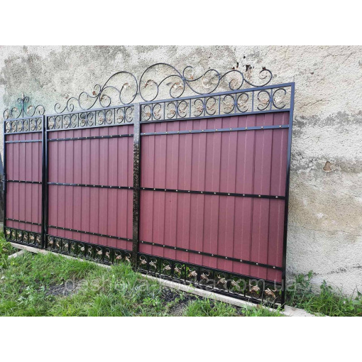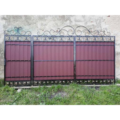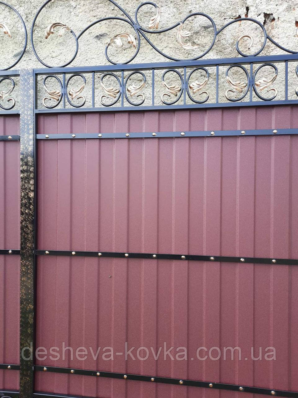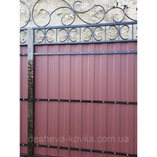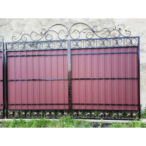 Детальні характеристики Ковані ворота з профнастилом та кованими елементами.