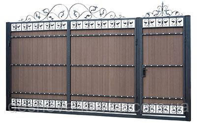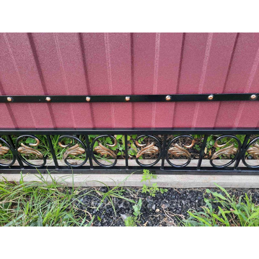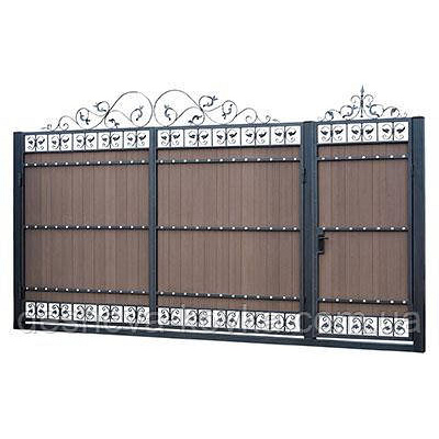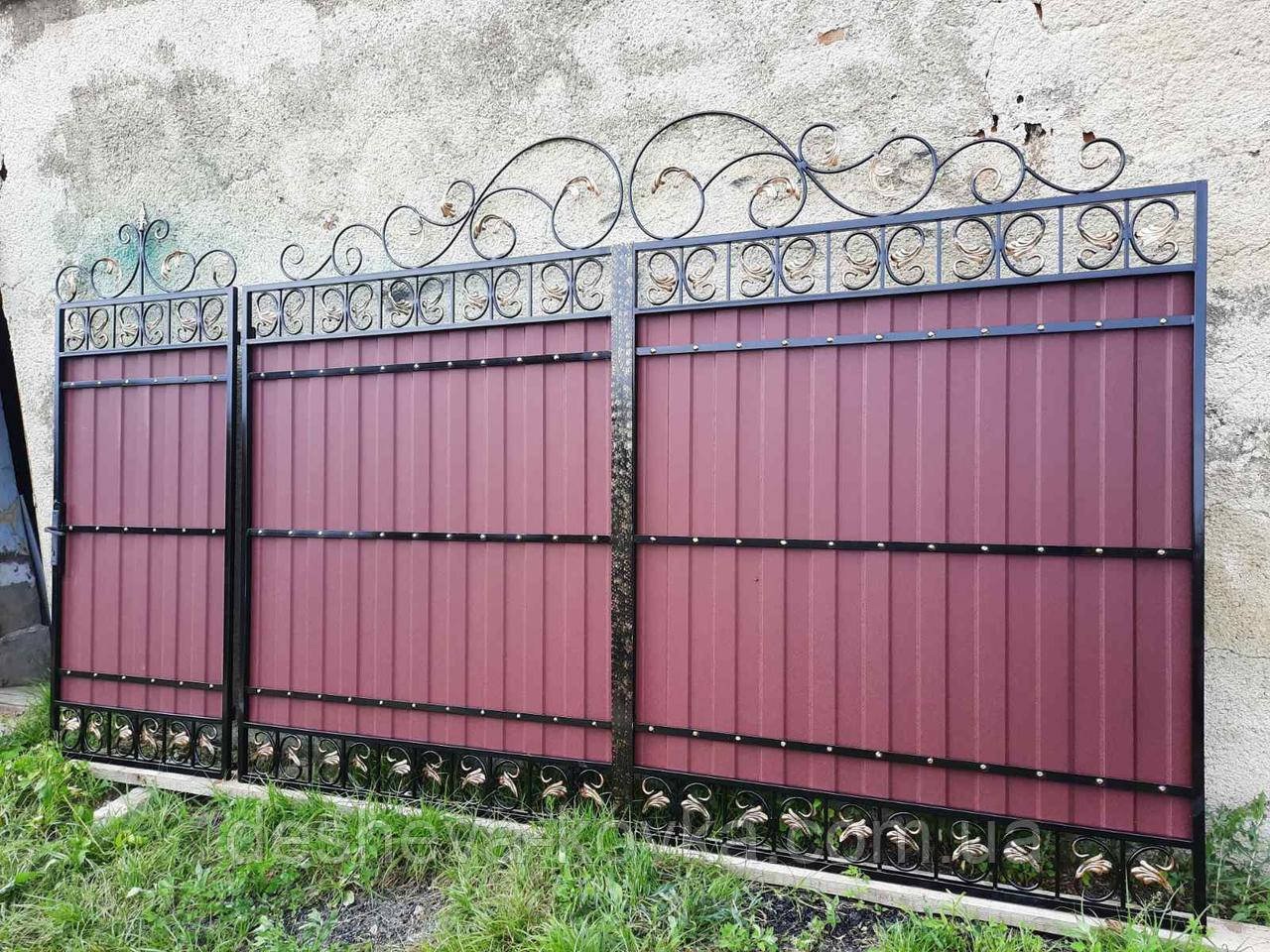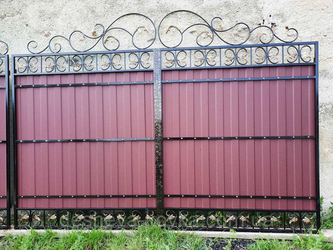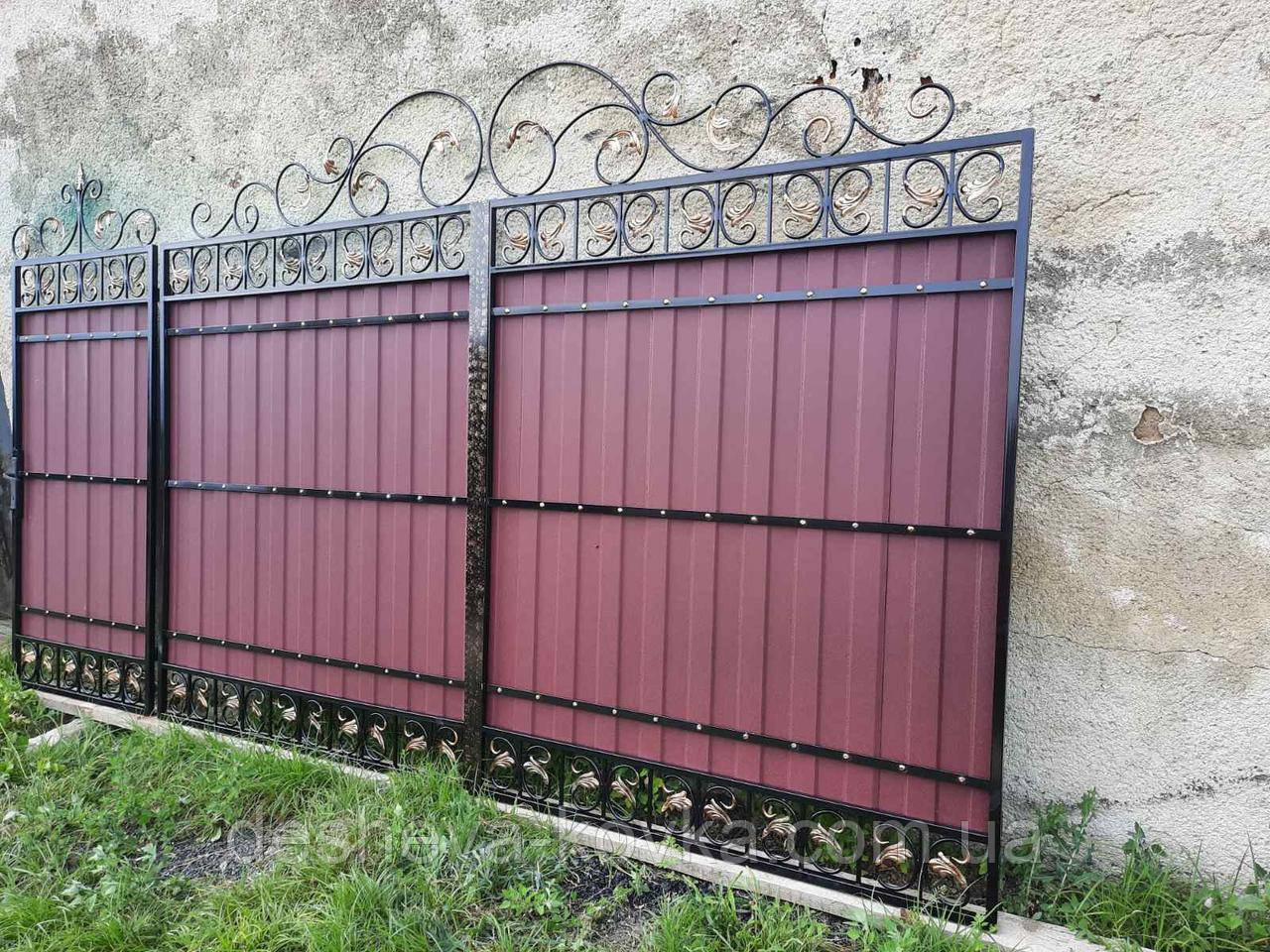 Детальні характеристики Ковані ворота з профнастилом та кованими елементами.