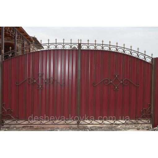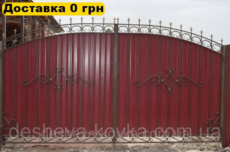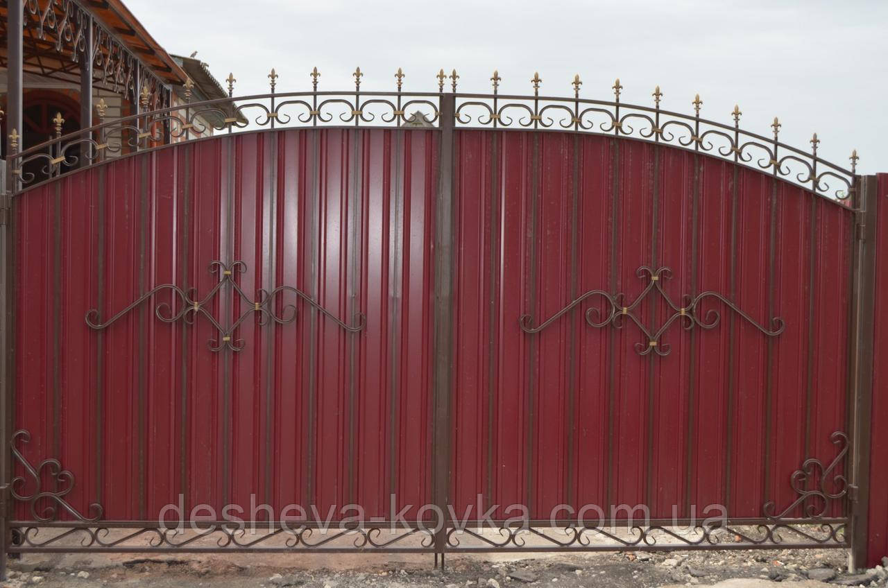 Кованые ворота из коваными элементами из профнастила Код: А-0190