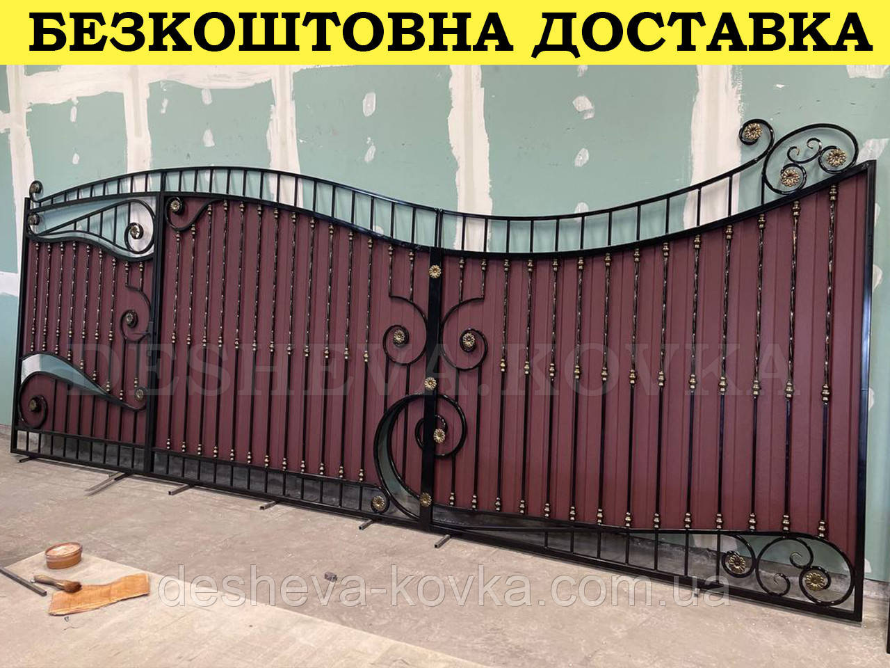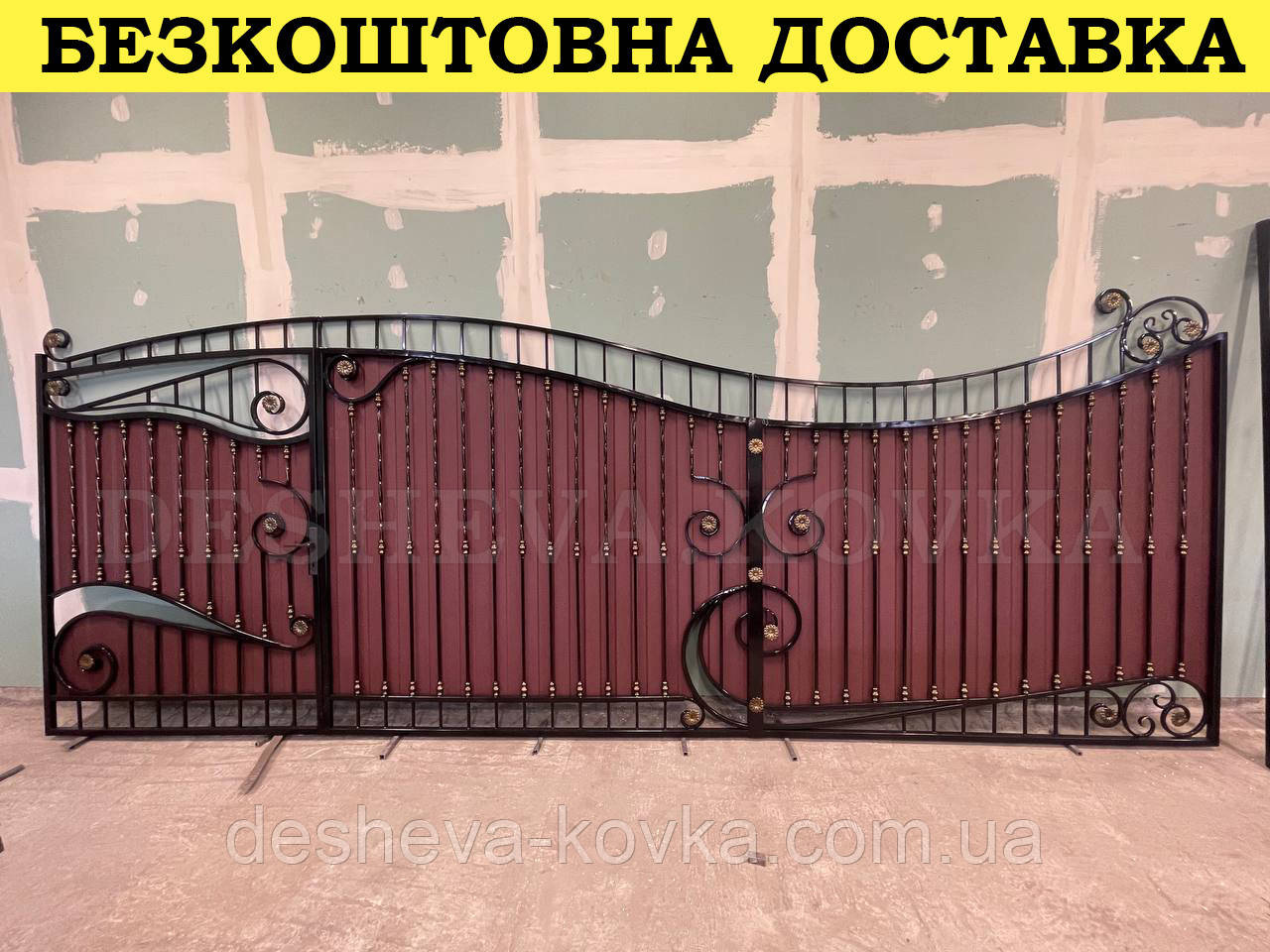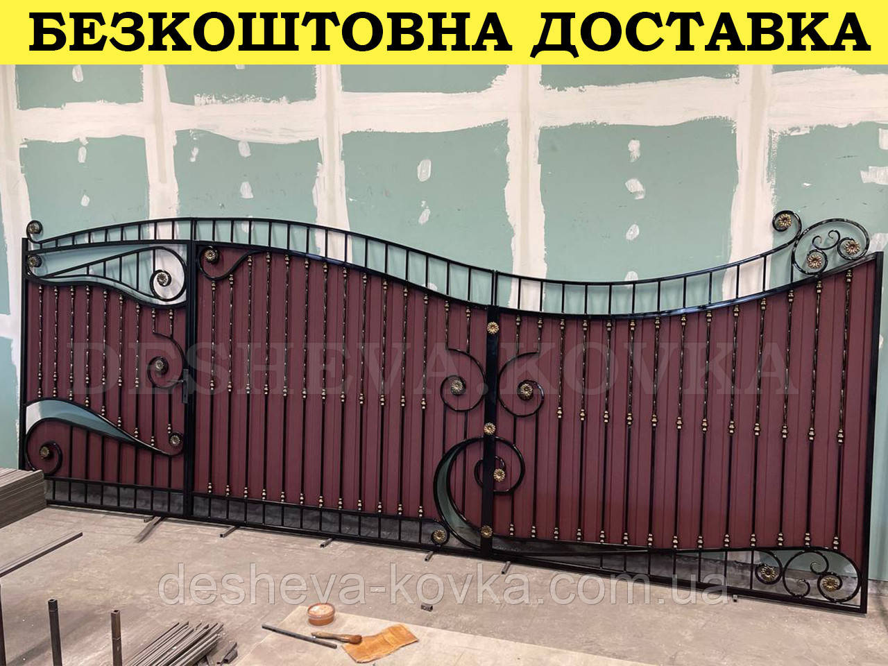 Детальні характеристики Ковані ворота з профнастилу та елементами художнього кування.