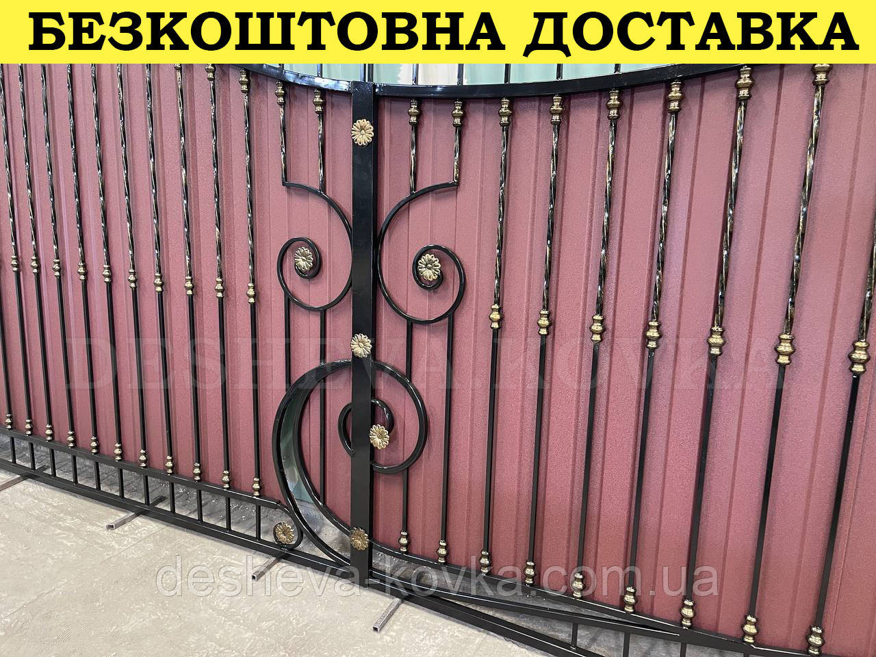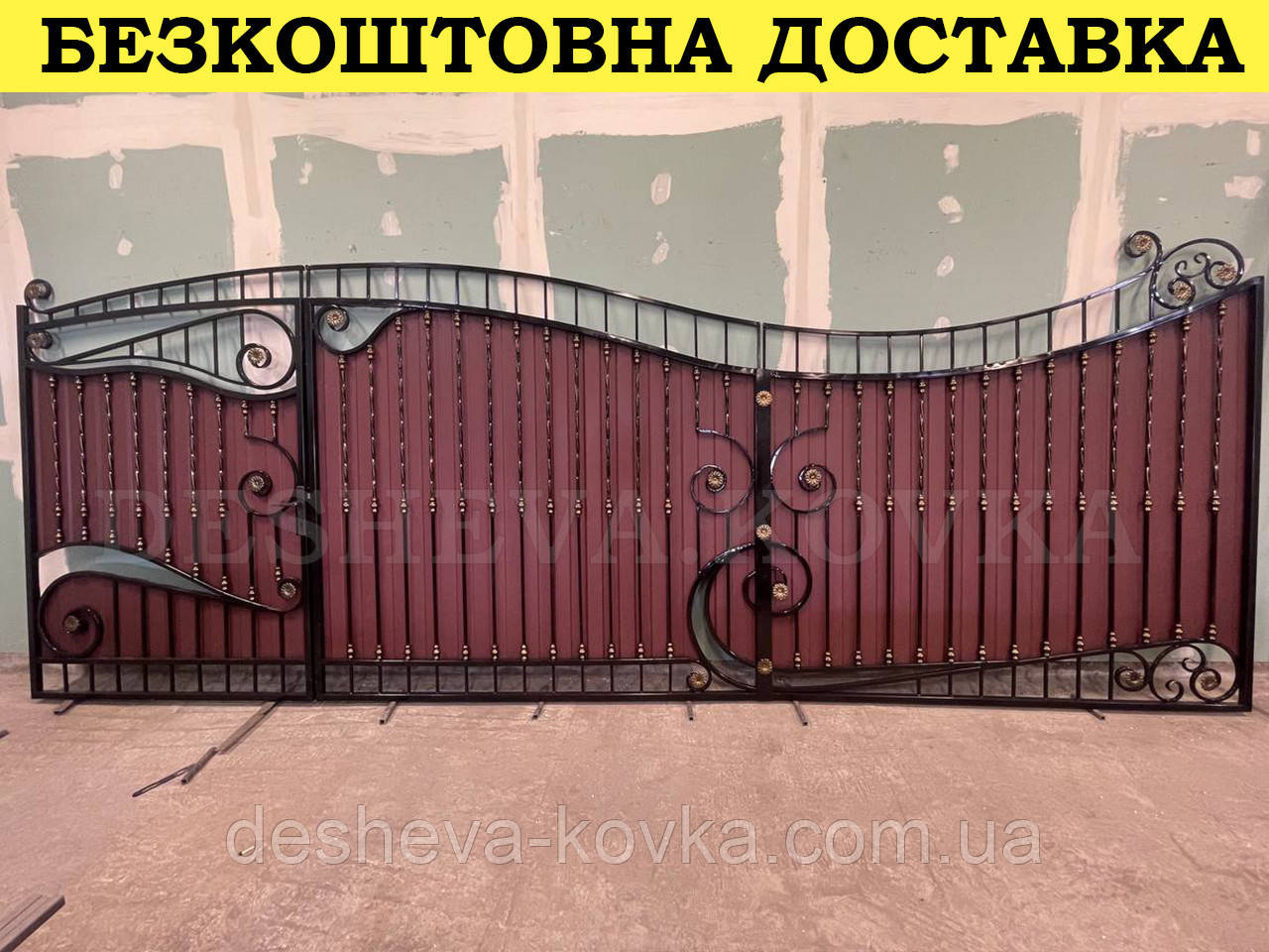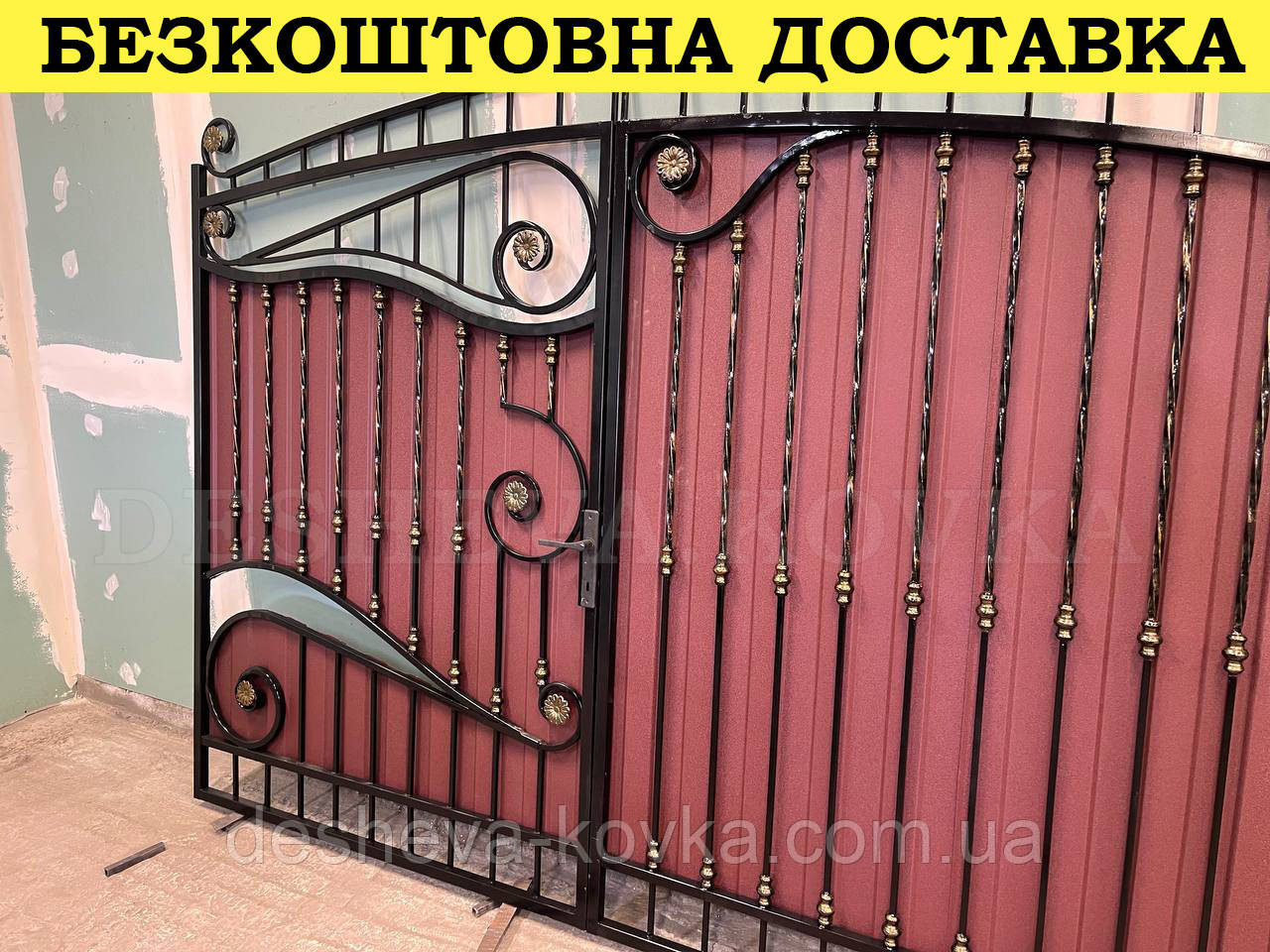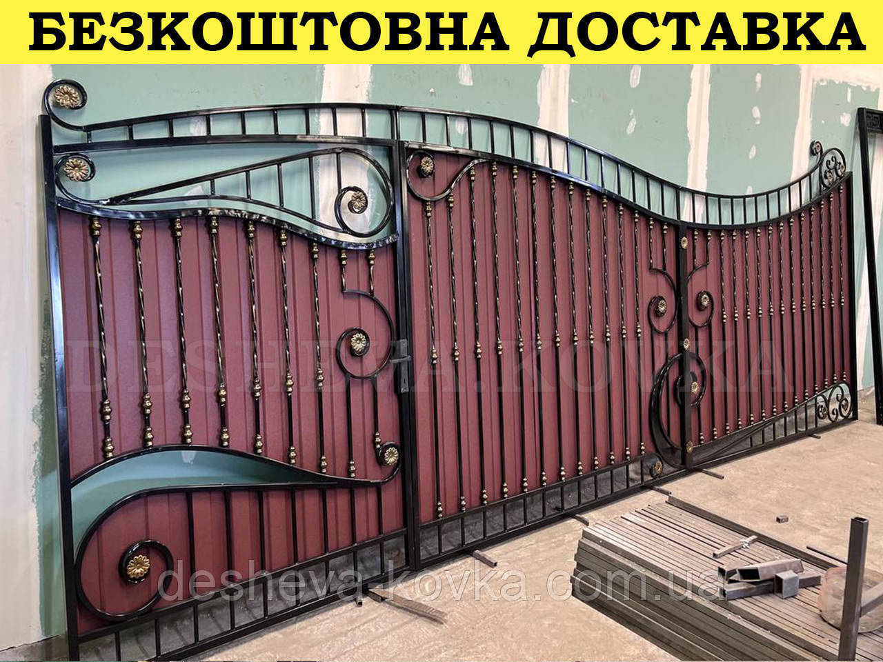 Детальні характеристики Ковані ворота з профнастилу та елементами художнього кування.