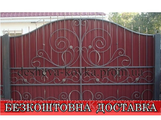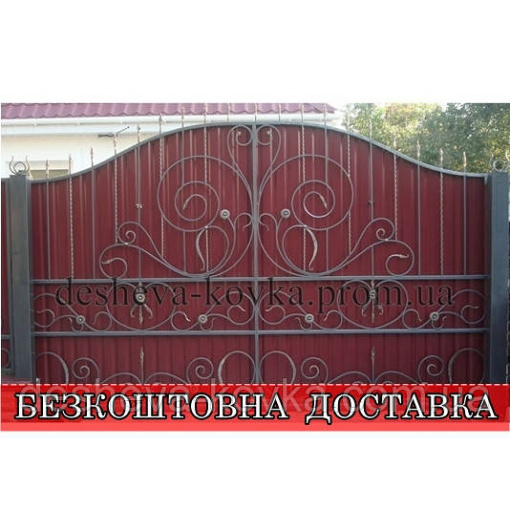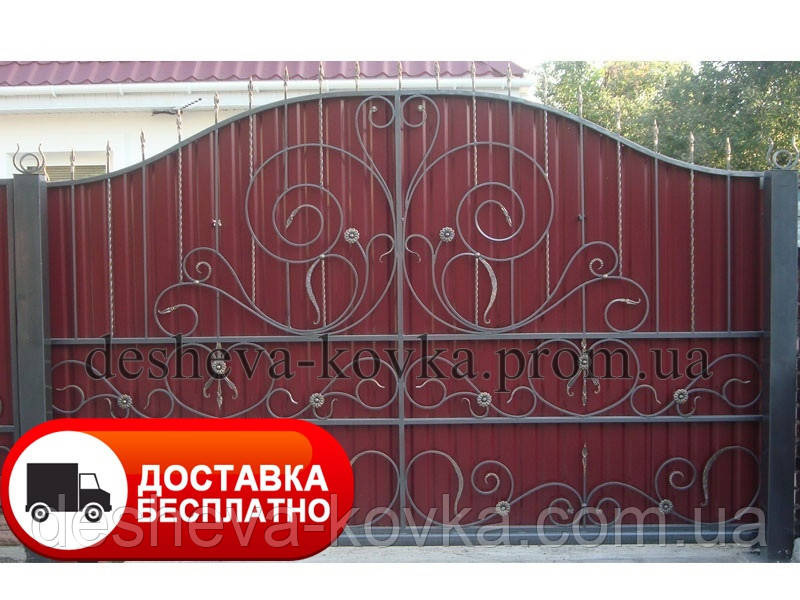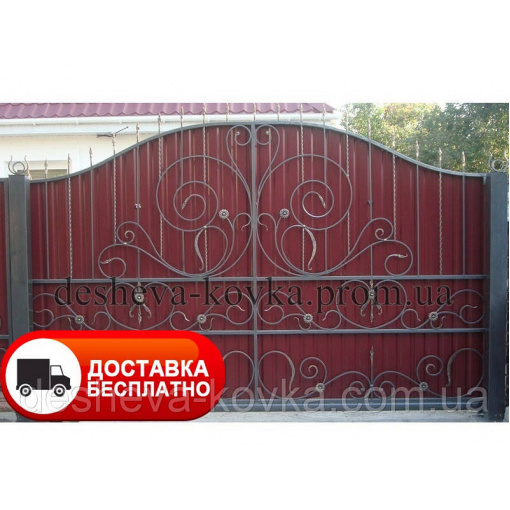 Кованые ворота из профнастила и элементами ковки Код: А-01154