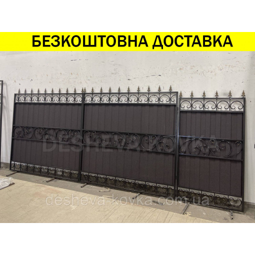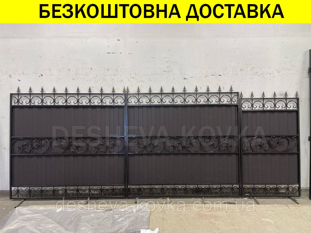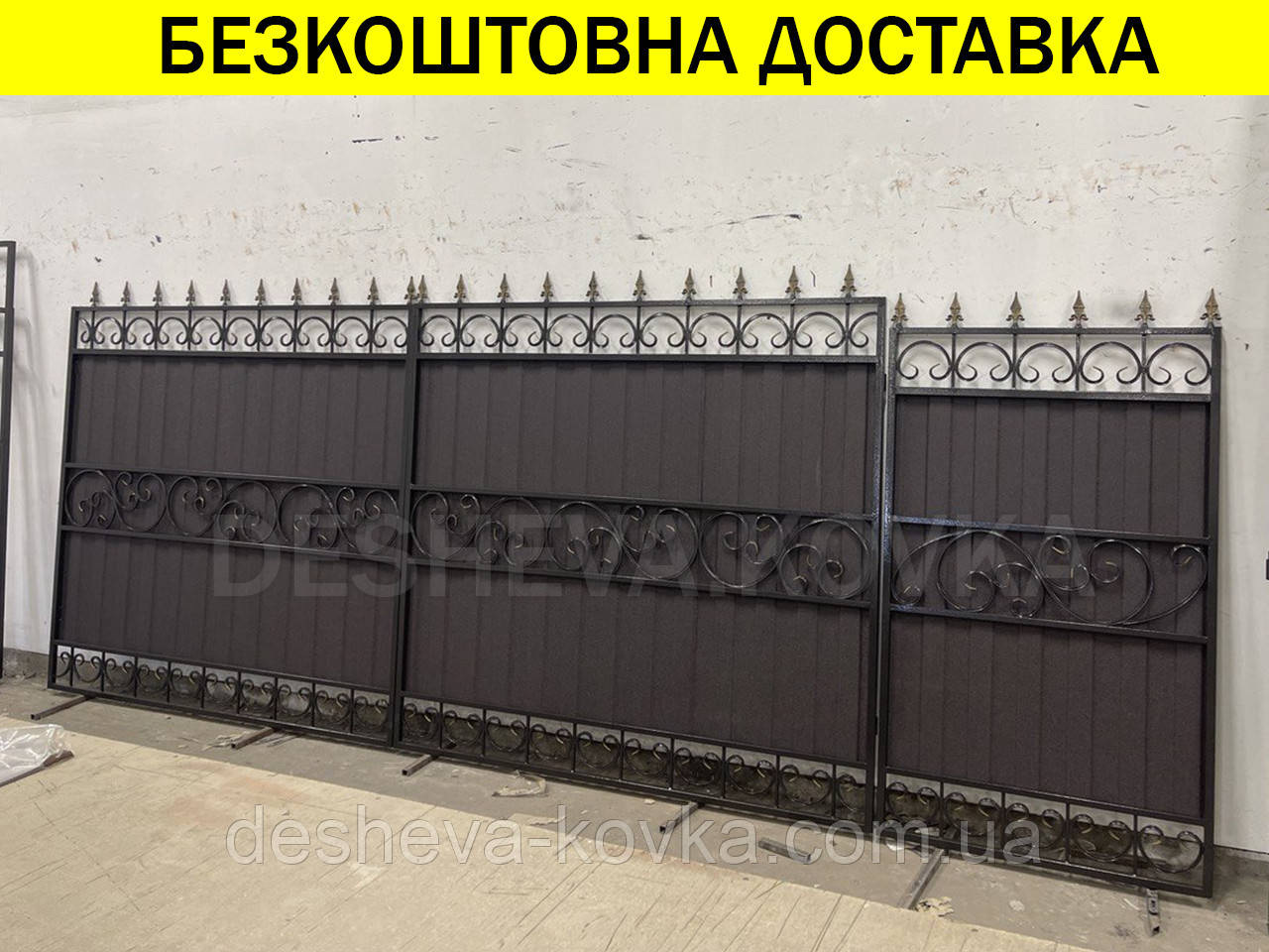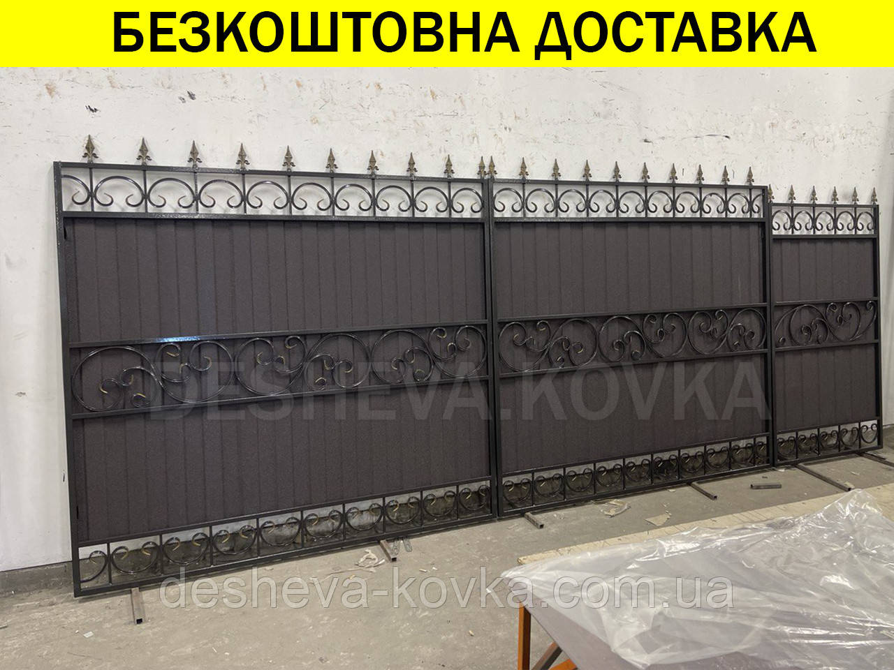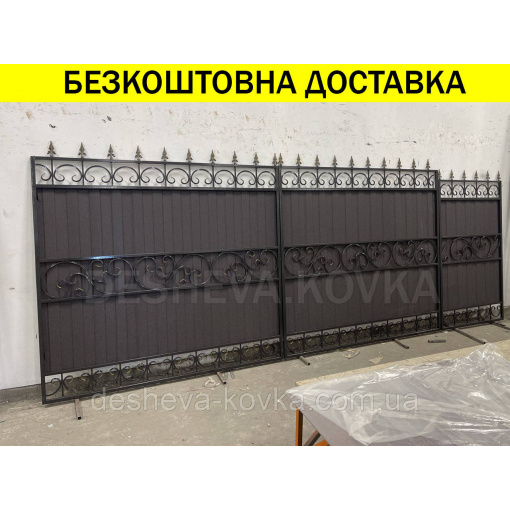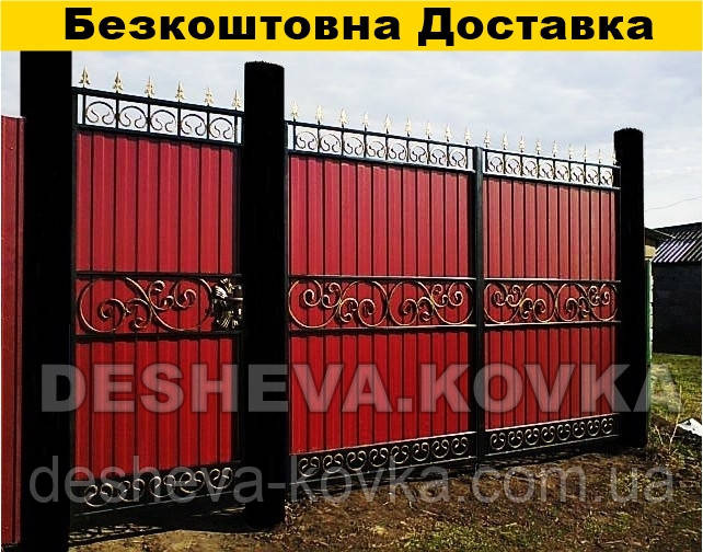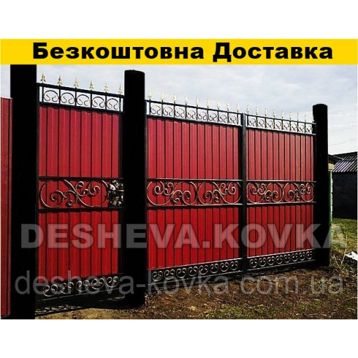 Кованые ворота из профнастила из калиткой Код: А-01183