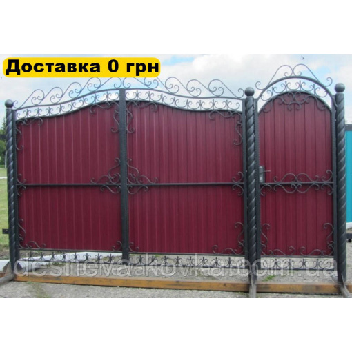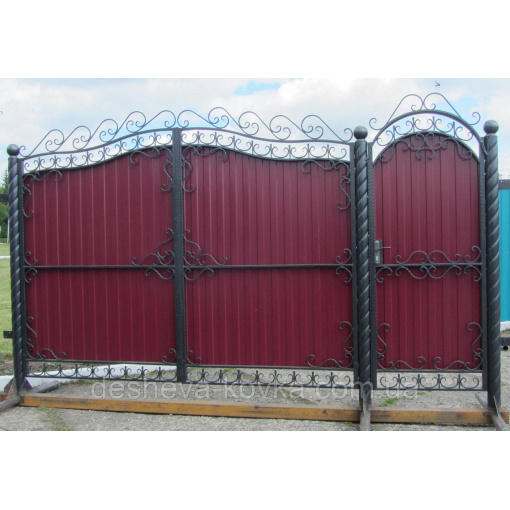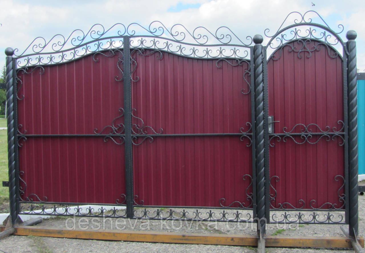 Детальні характеристики Ковані ворота з профнастилу з кованими елементами.