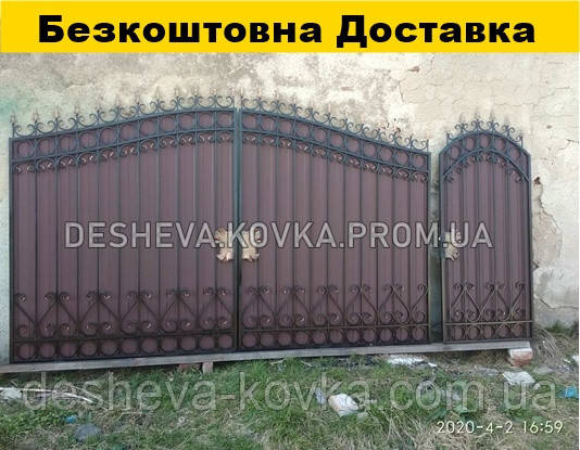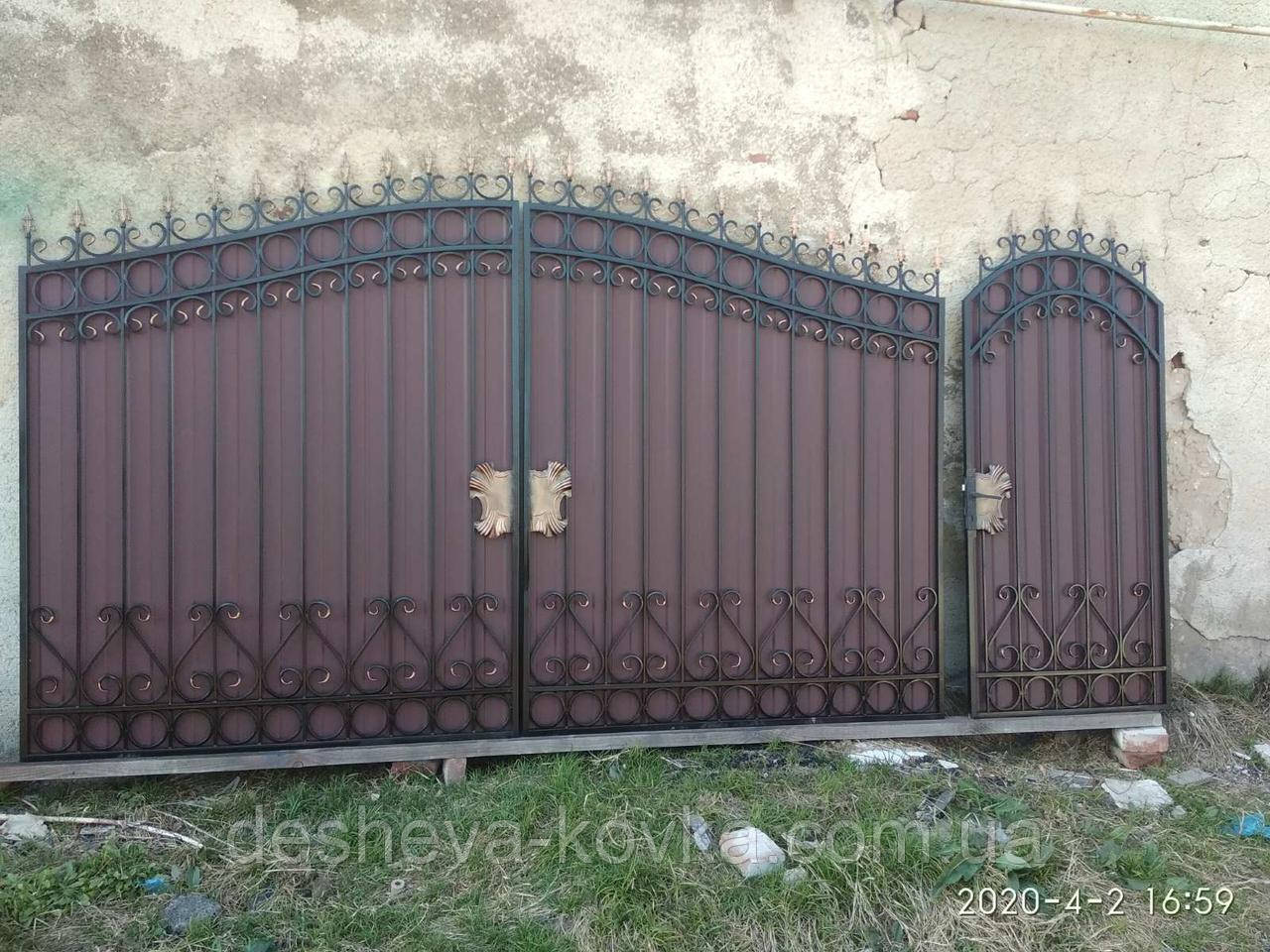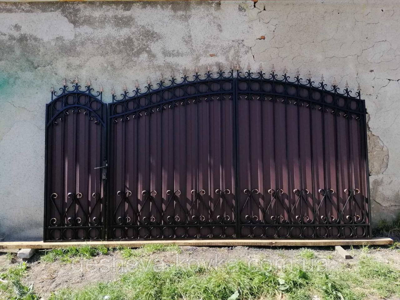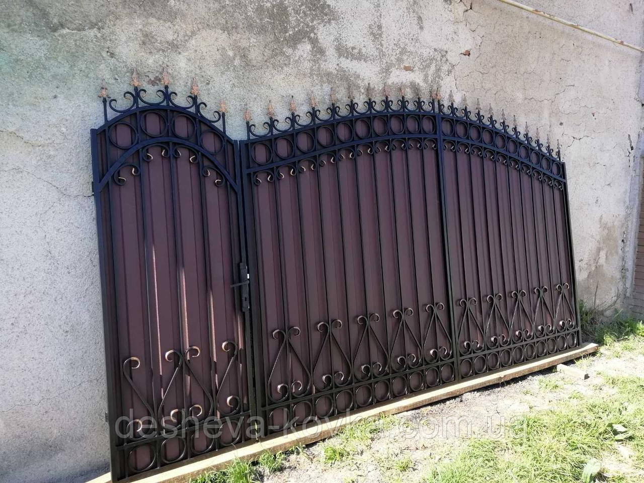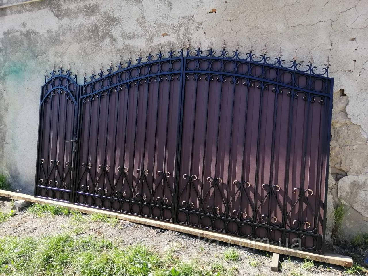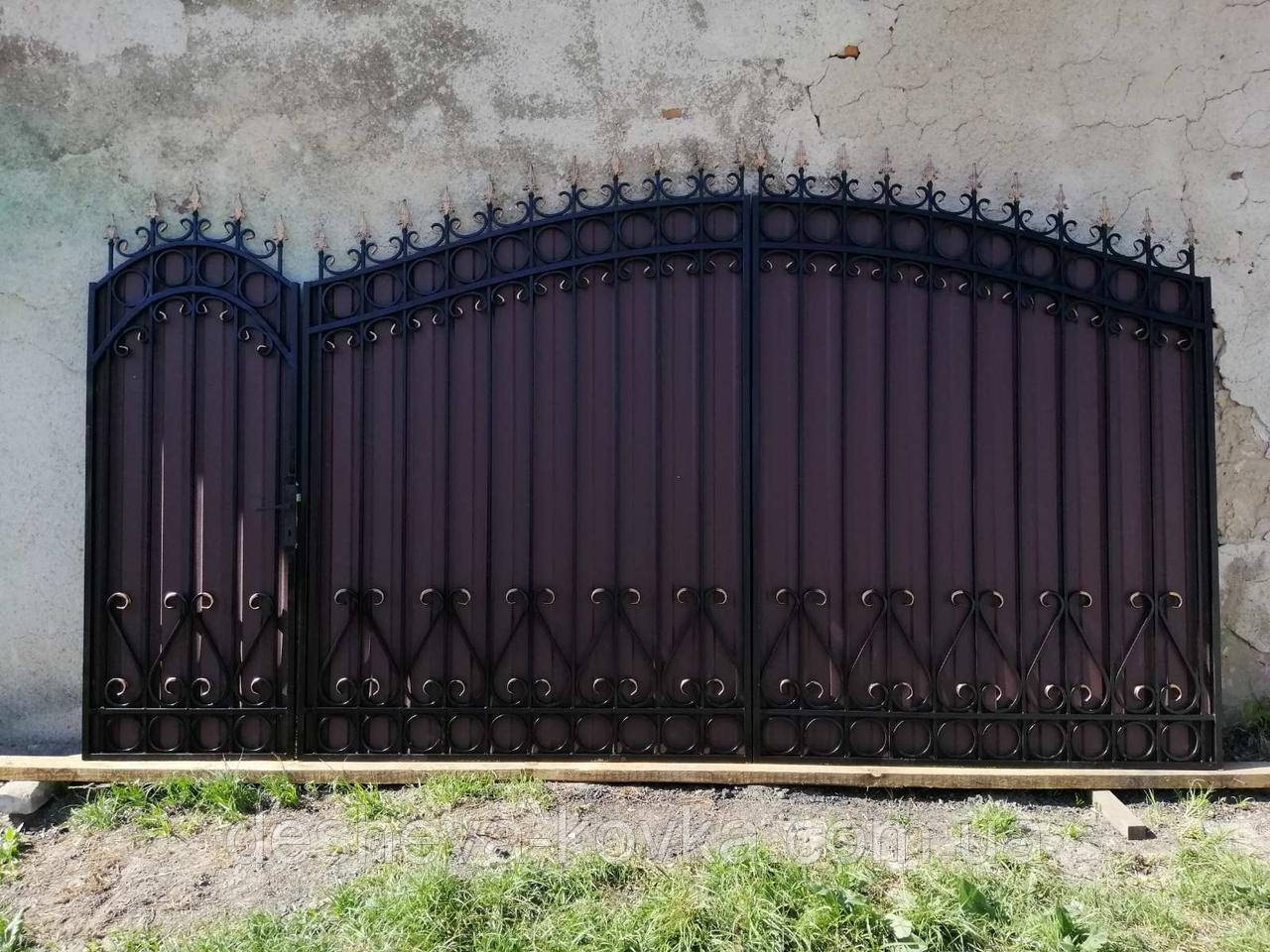 Кованые ворота из профнастилом и калиткой Код: А-01148