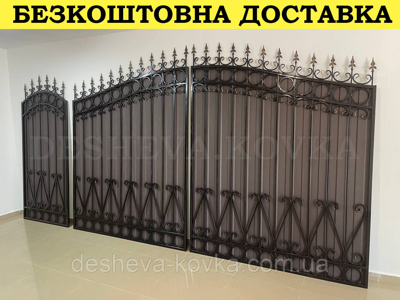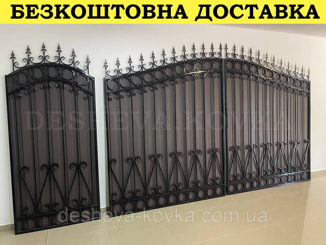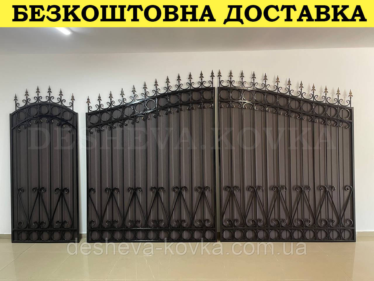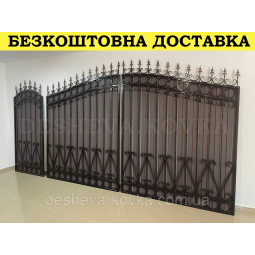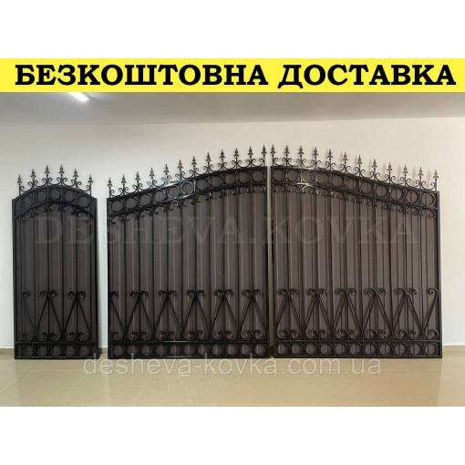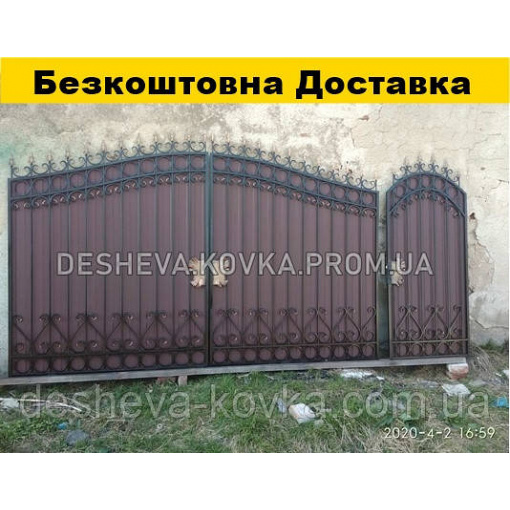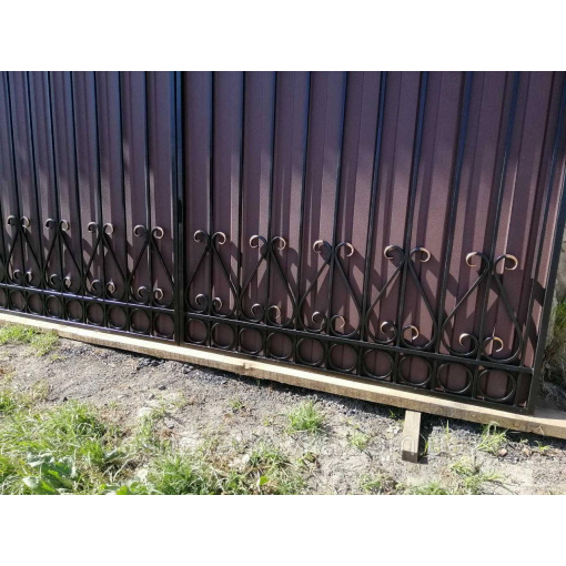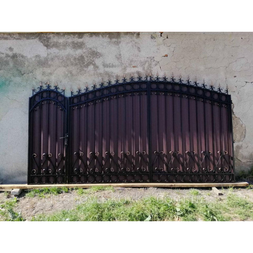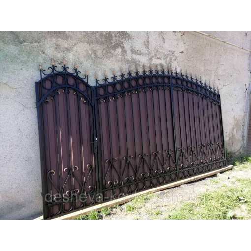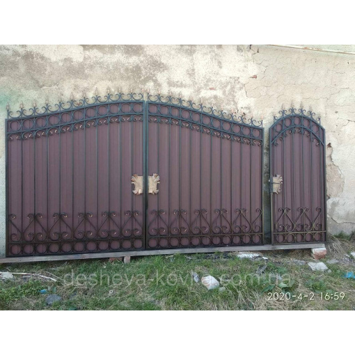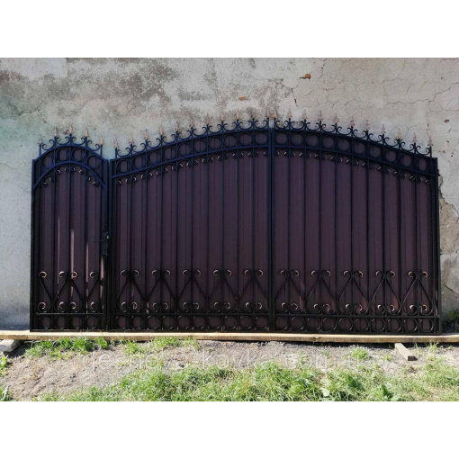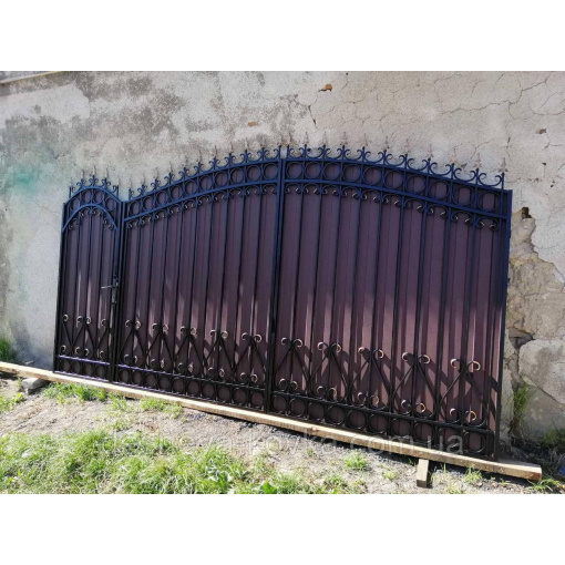 Кованые ворота из профнастилом и калиткой Код: А-01148