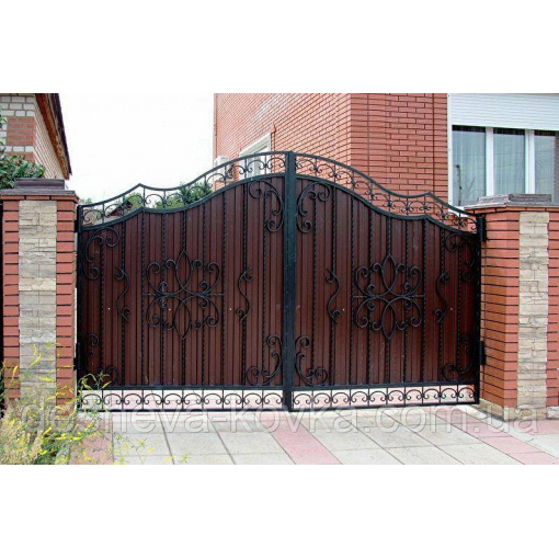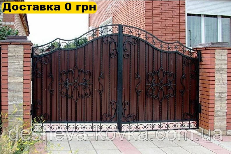 Детальні характеристики Ковані ворота з профнастилом та хвірткою.