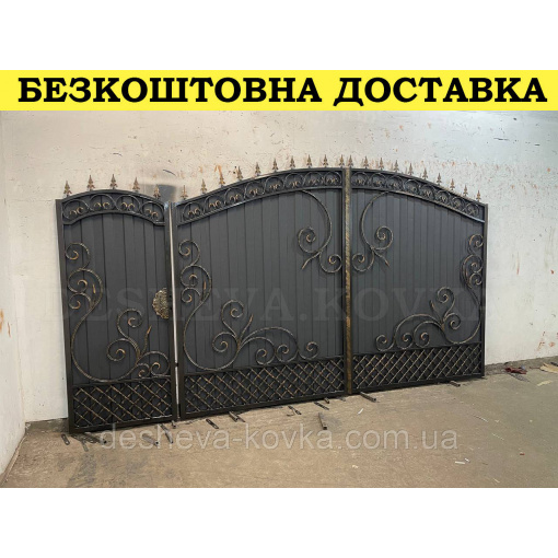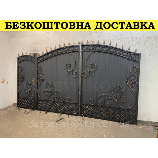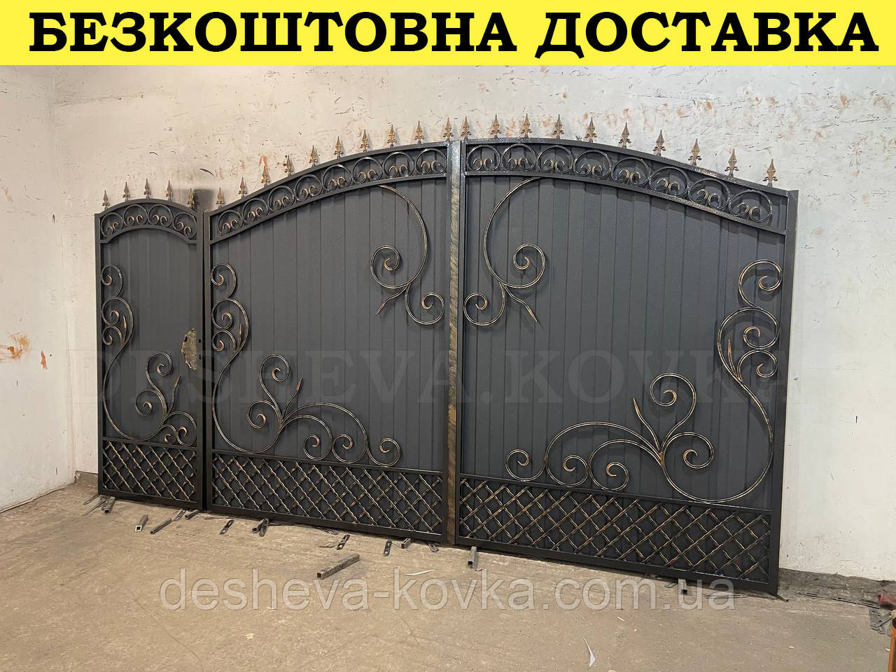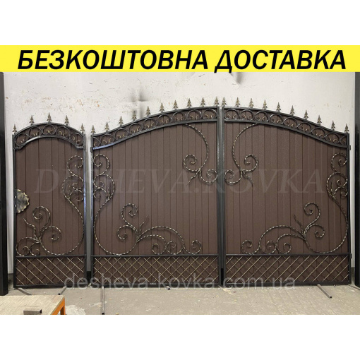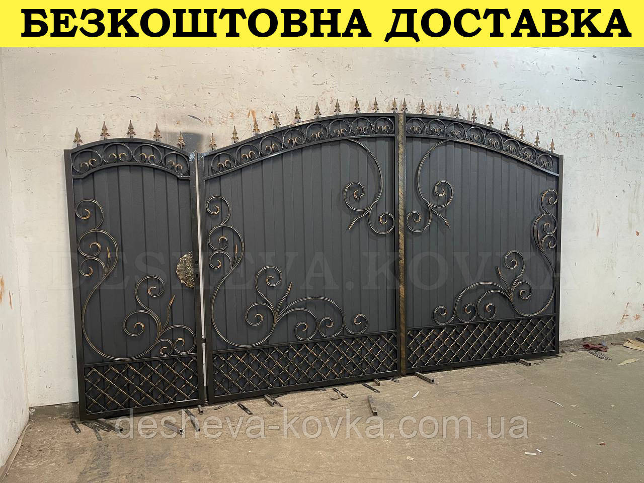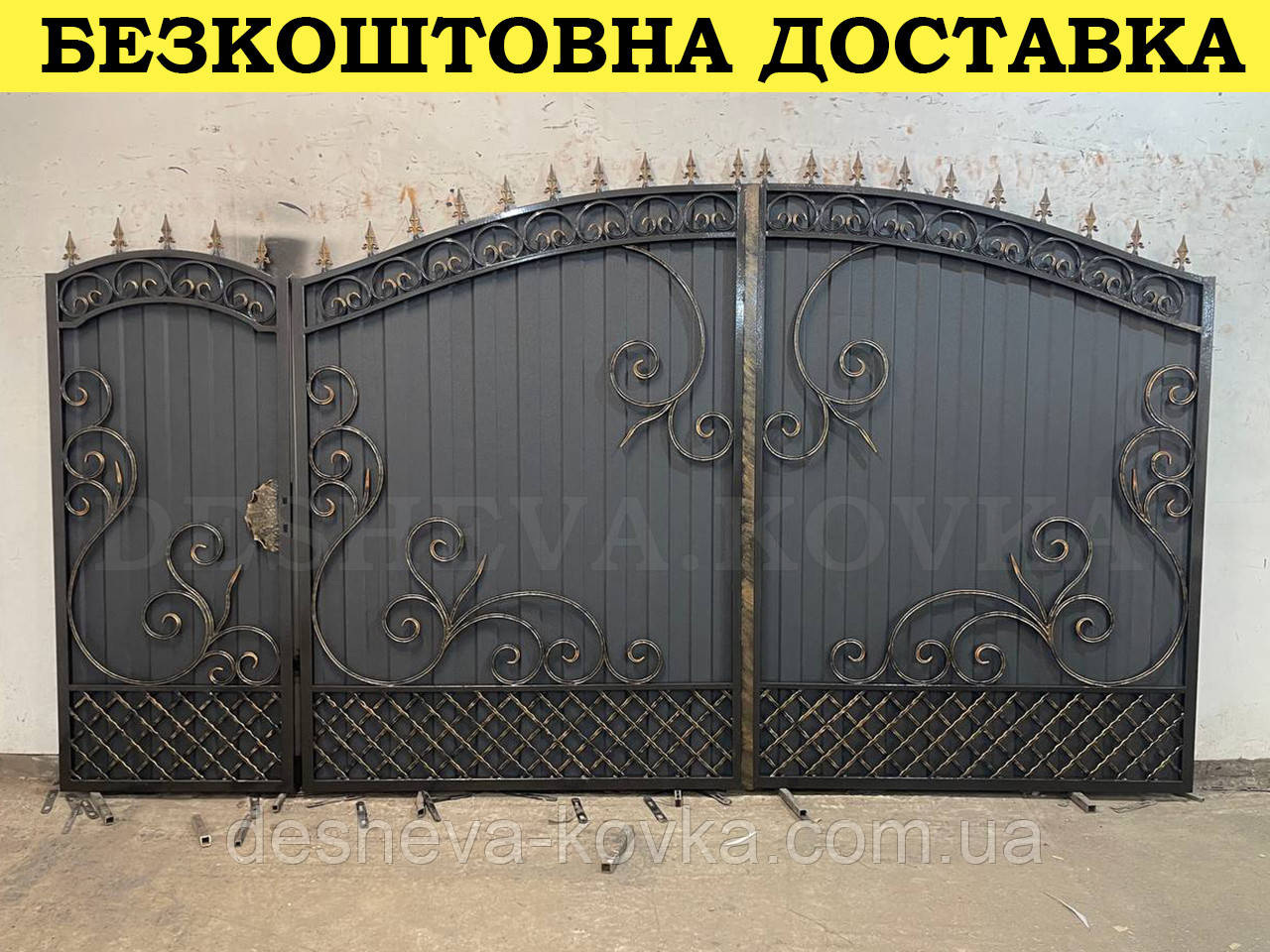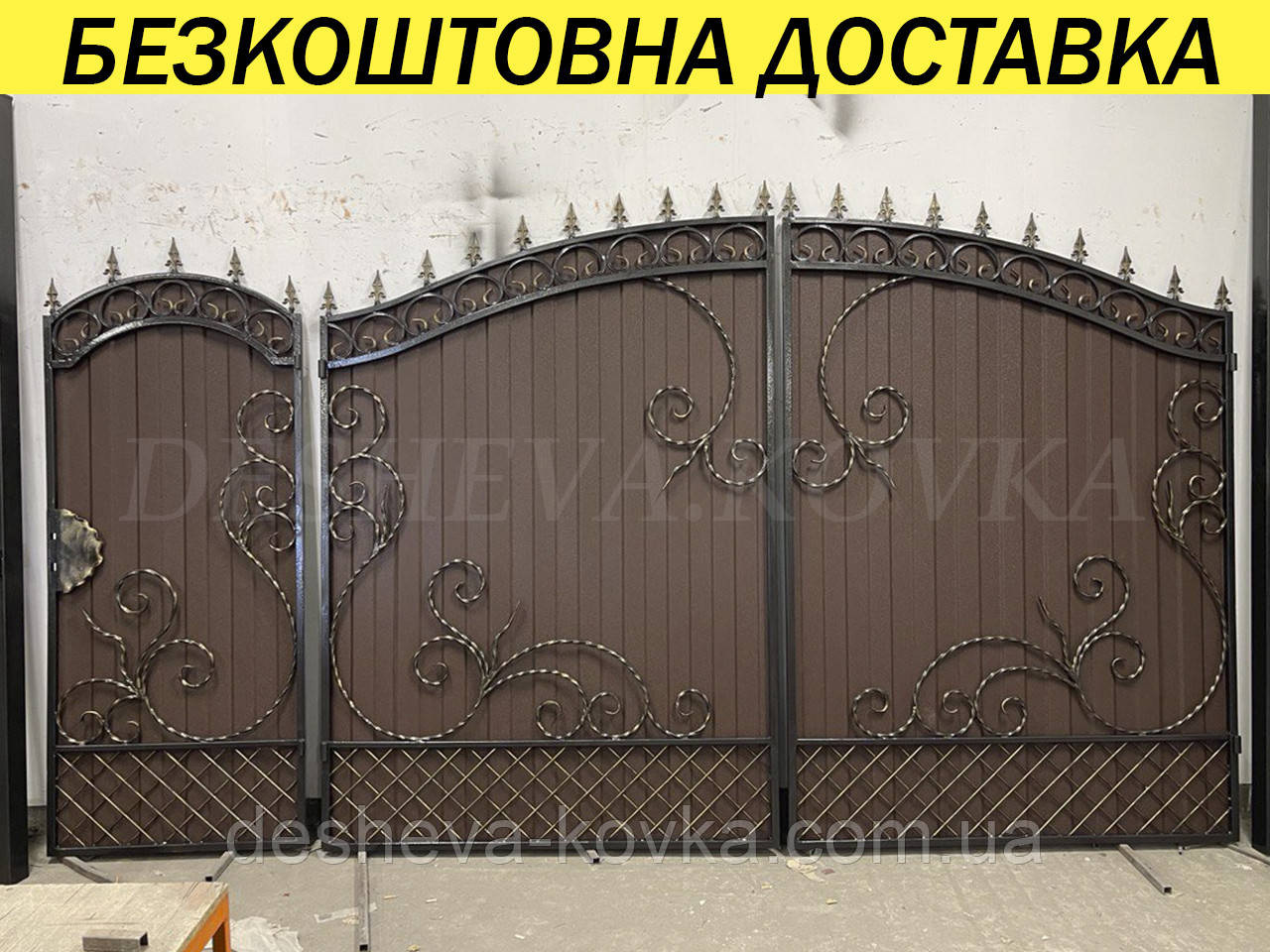 Кованые ворота из профнастилом и коваными элементами Код: А-01297