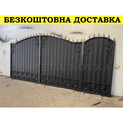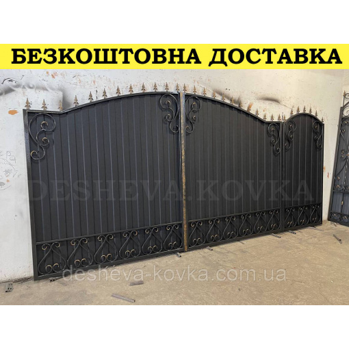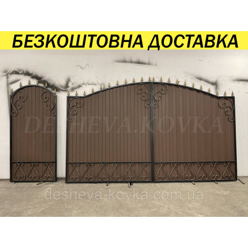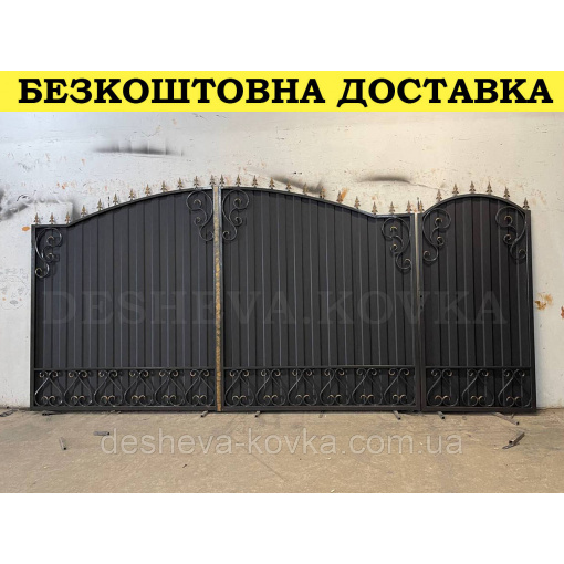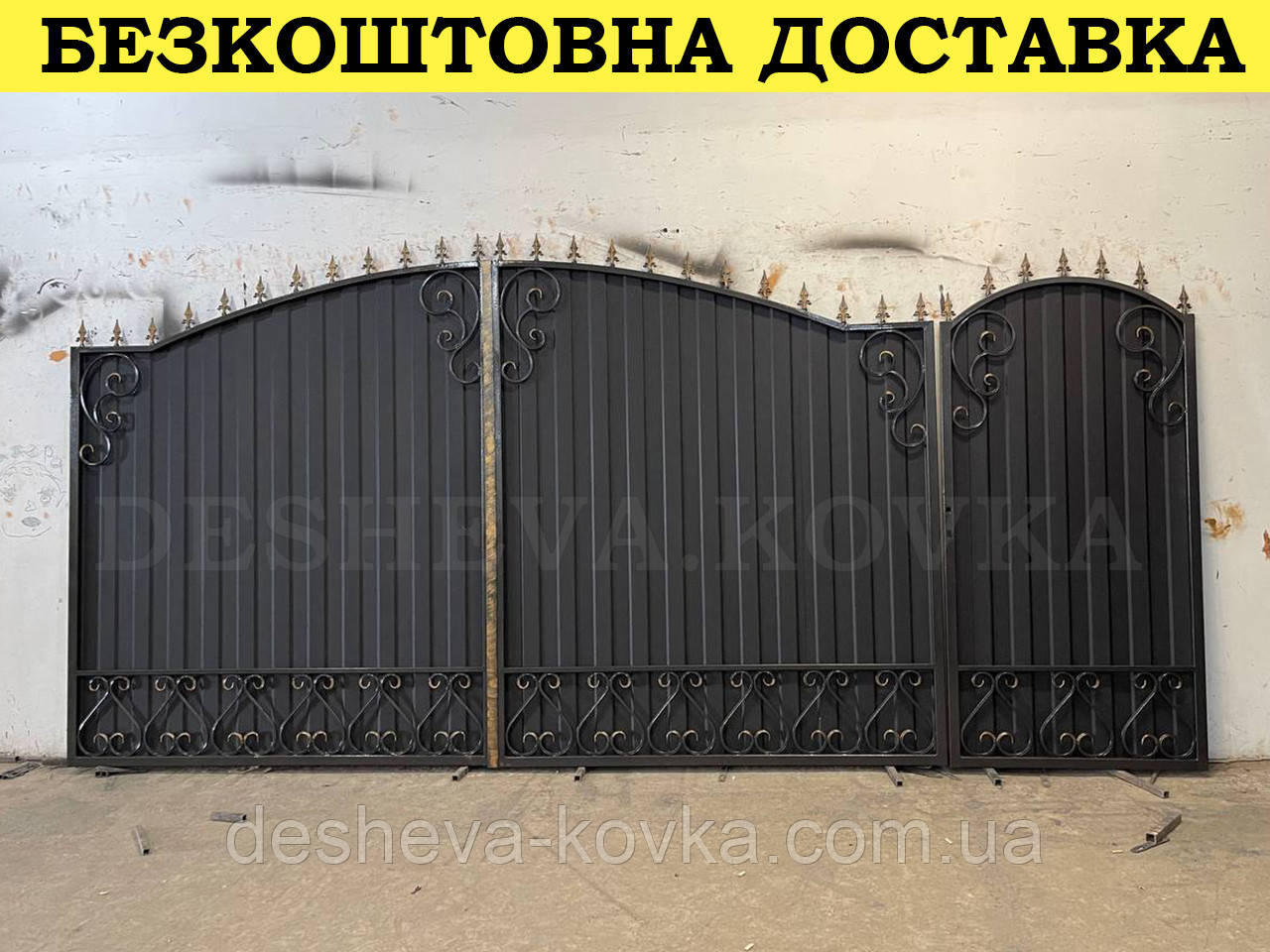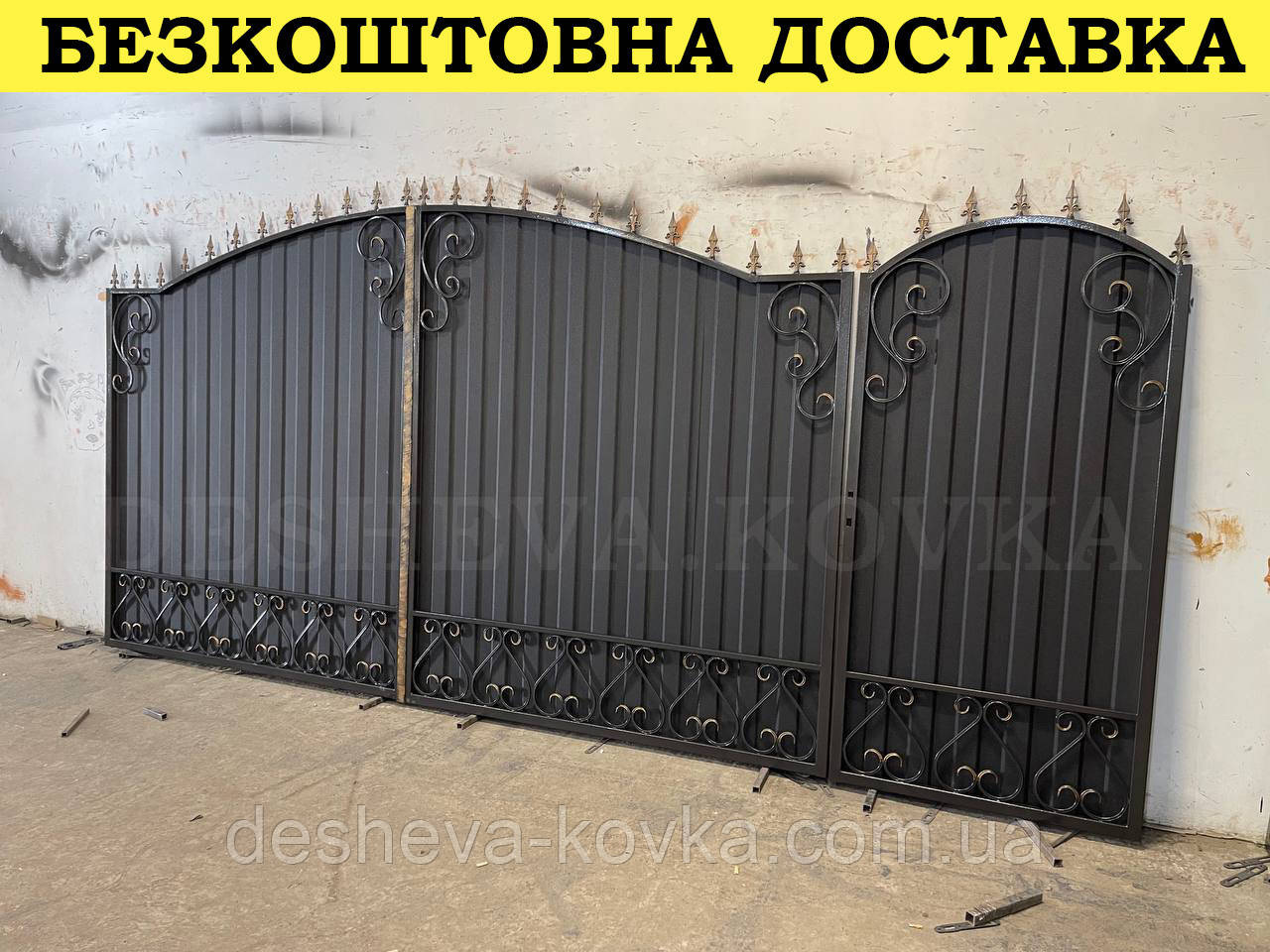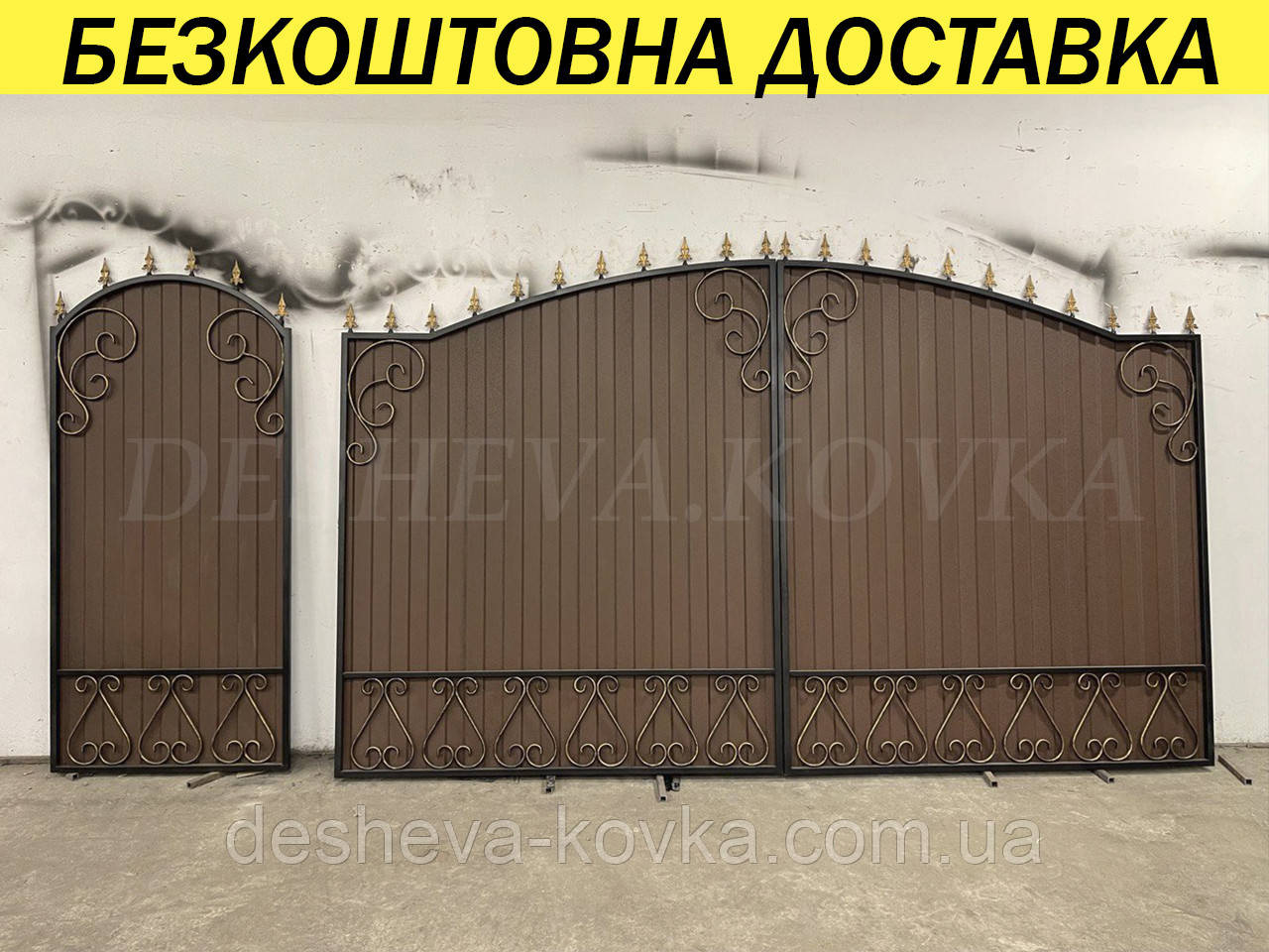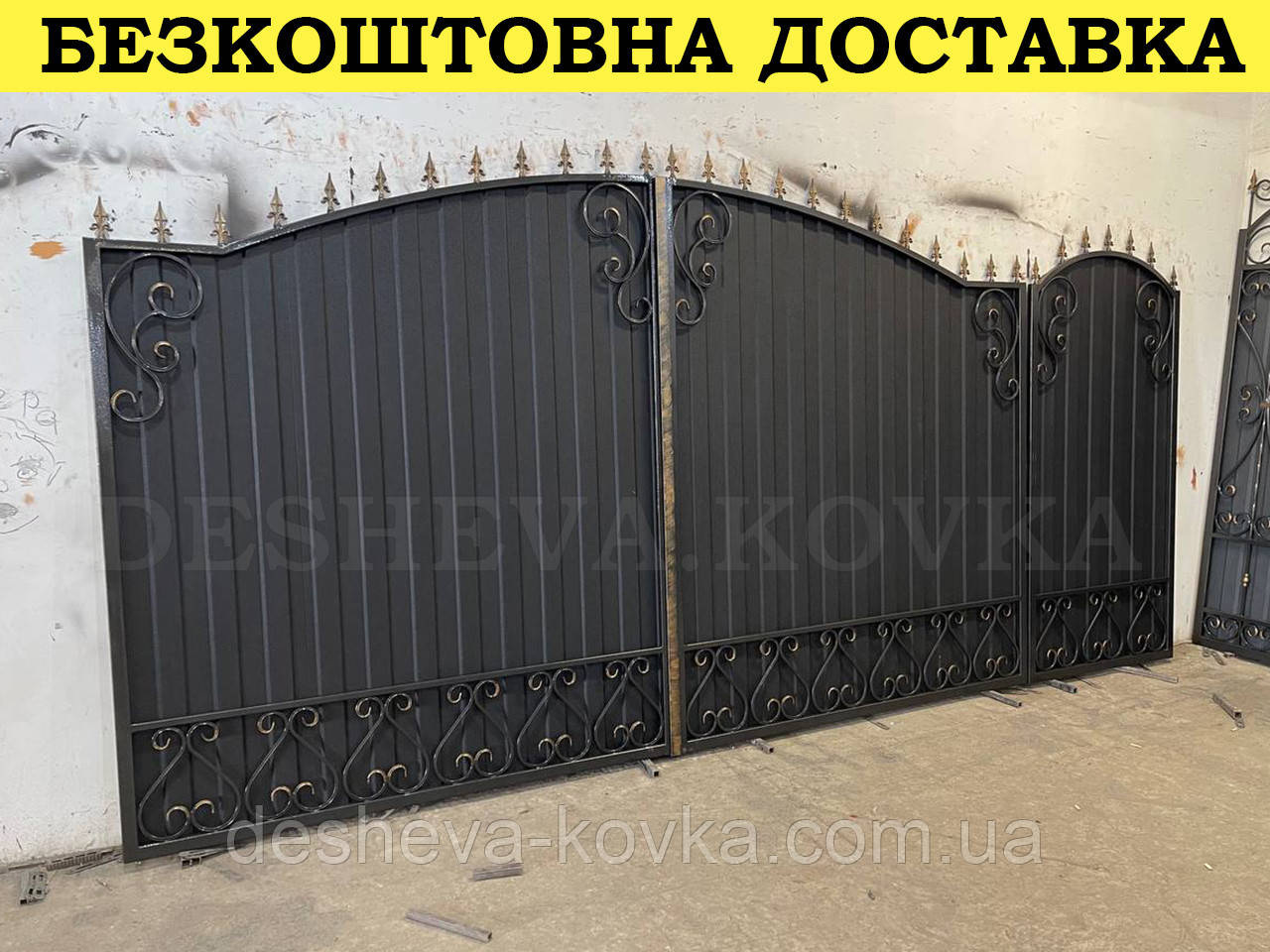 Кованые ворота из профнастилом и коваными элементами Код: А-01298
