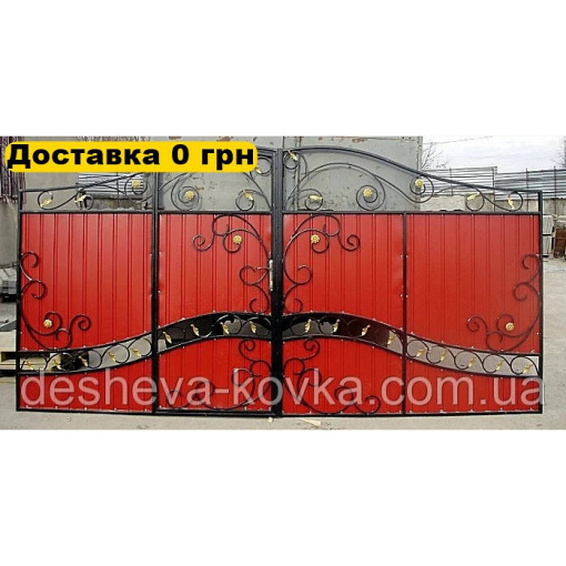 Детальні характеристики Кованые ворота из встроенной калиткой из профнастила.