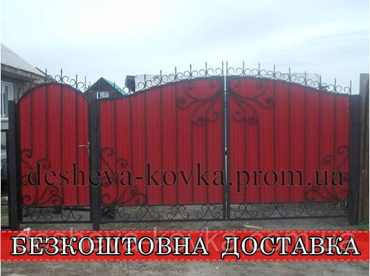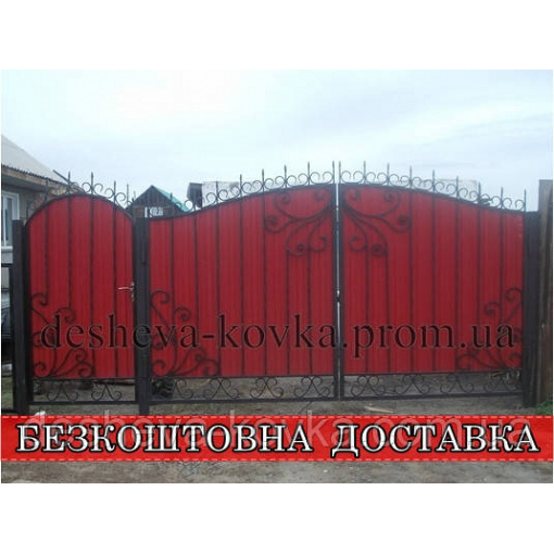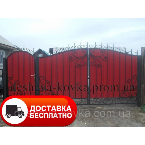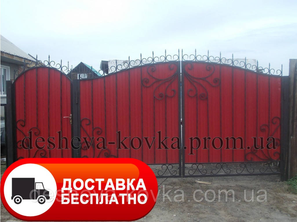 Распашные ворота из калиткой и профнастила Код: А-0162