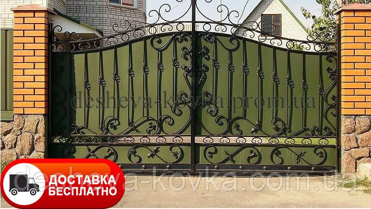 Детальні характеристики Ворота из профнастила из коваными элементами.